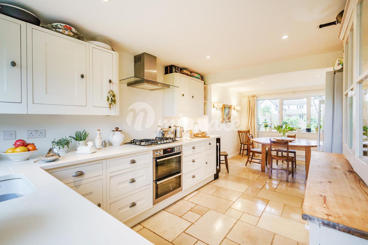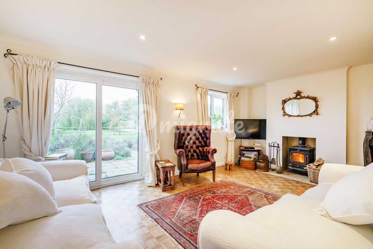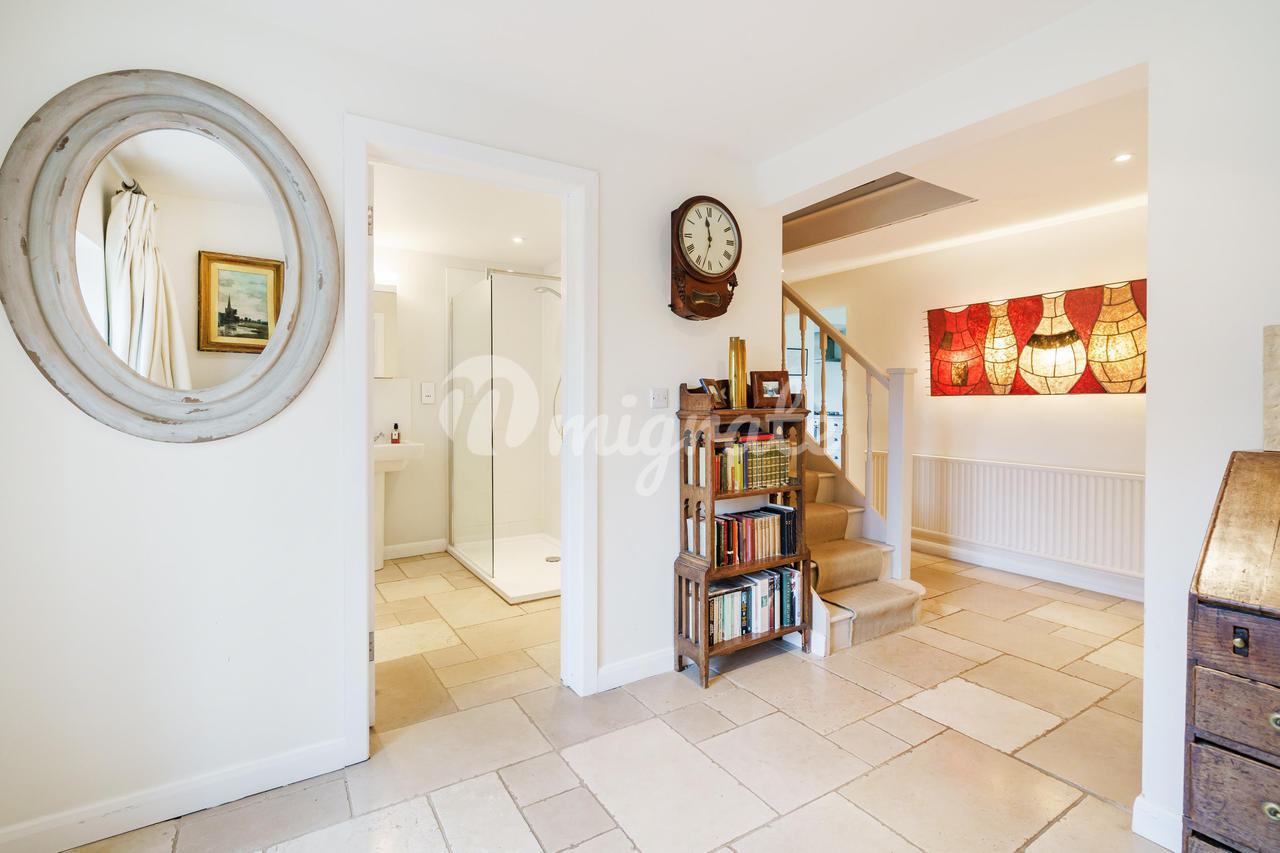 Входная дверь открывается в большой холл с полом, выложенным итальянской плиткой из известняка, и большим встроенным шкафом.. Существует душевая комната с туалетом, которая также служит подсобным помещением. Кухня / зал для завтраков открытой планировки хорошо оборудована большими шкафами в стиле шейкер с полом, выложенным известняковой плиткой. Из обеденной зоны открывается вид на палисадник, а из кухни есть застекленная дверь на террасу и в сад. Из гостиной с видом на сад есть дровяная печь, деревянный пол и раздвижные застекленные двери в сад. На втором этаже расположены четыре спальни, главная из которых оборудована встроенными шкафами, а также просторная ванная комната. Дом полностью застеклен двойным остеклением и имеет EPC класса C.