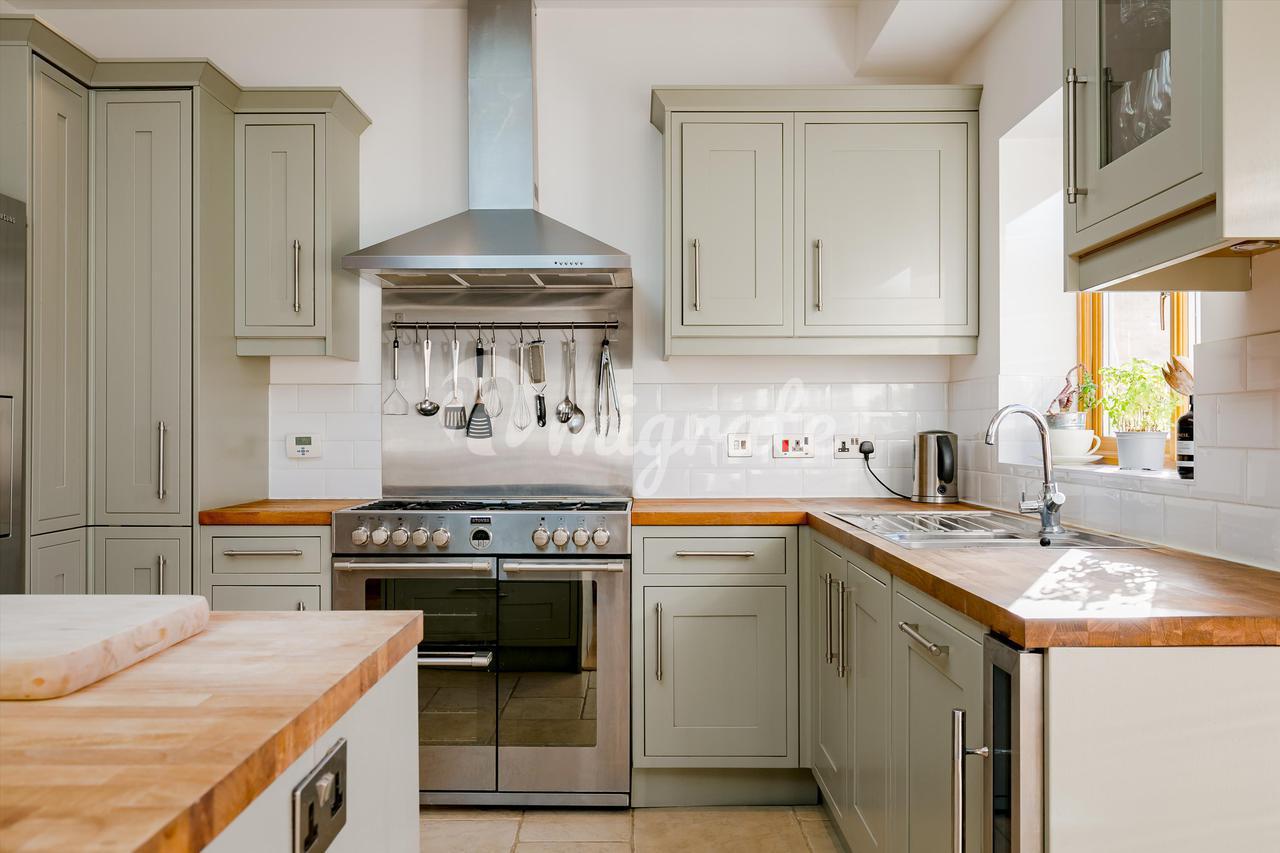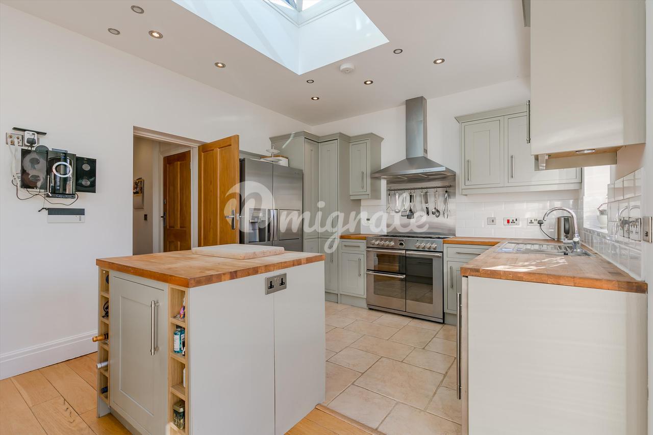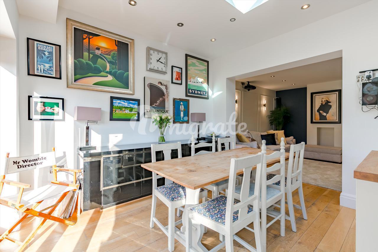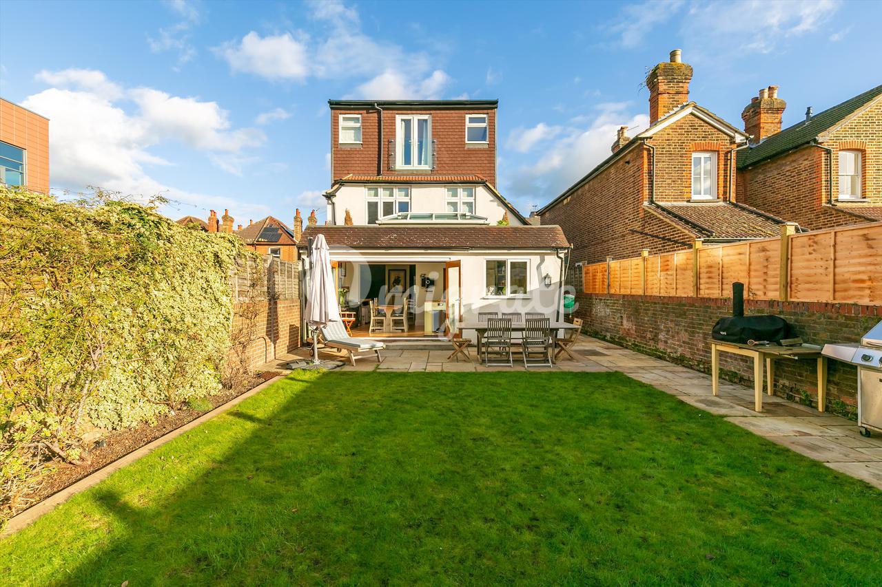 Снаружи задний сад невероятно хорошо спроектирован с обширным газоном, солнечной террасой во внутреннем дворике, которая вся огорожена стеной. Особенностью сада является летний домик / садовая студия, которая стала бы идеальным домашним офисом. В распоряжении гостей также парковка за пределами улицы и пункт зарядки электромобилей.