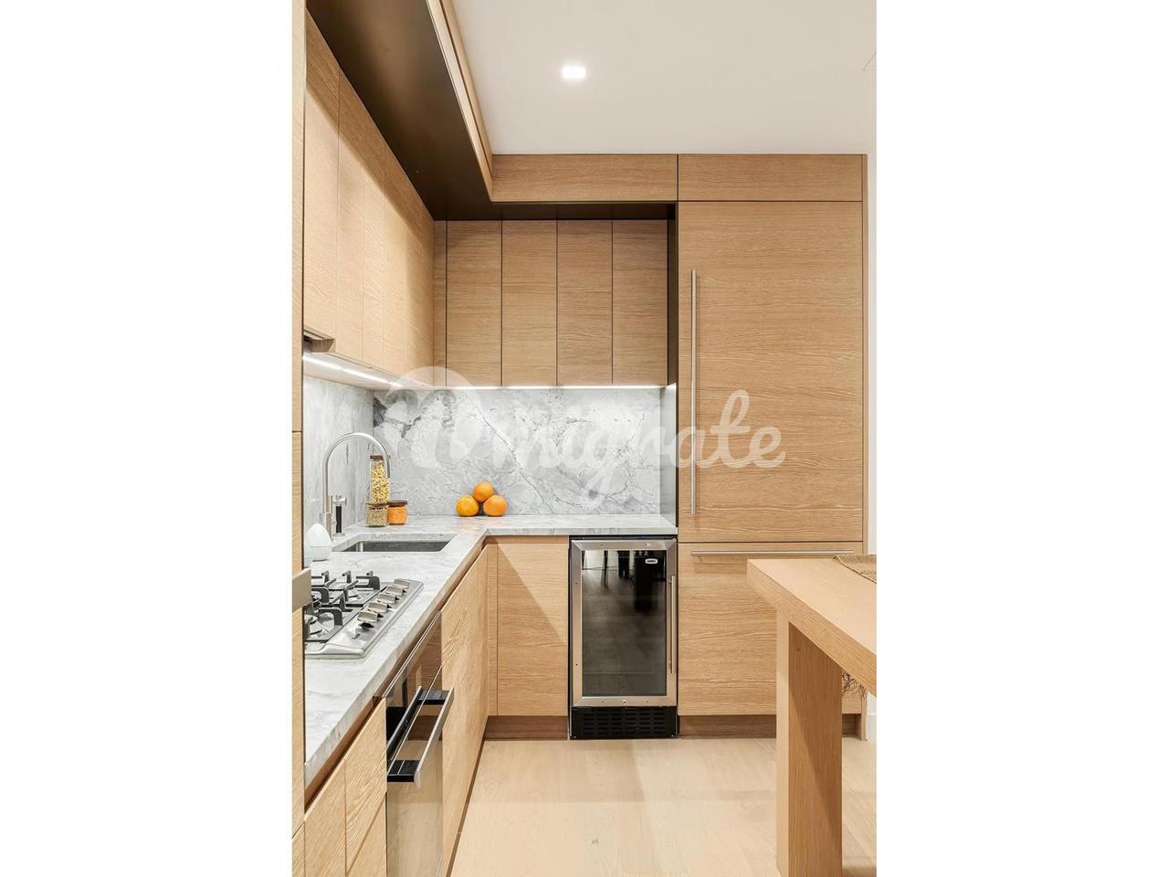 Эта изящная резиденция площадью 2100 квадратных футов с четырьмя спальнями и четырьмя с половиной ванными комнатами выходит окнами на юго-запад и северо-восток с большими поворотно-откидными окнами и полами из белого европейского дуба шириной семь дюймов. Открытая кухня оснащена полностью интегрированной бытовой техникой Miele, включая посудомоечную машину и винный холодильник. Пространство окружают шкафы из белого дуба от Scavolini, отделанные бронзовыми металлическими акцентами с масляной протиркой и встроенным освещением под шкафом, а также встроенным кухонным смесителем Dornbracht с матовой платиновой отделкой.