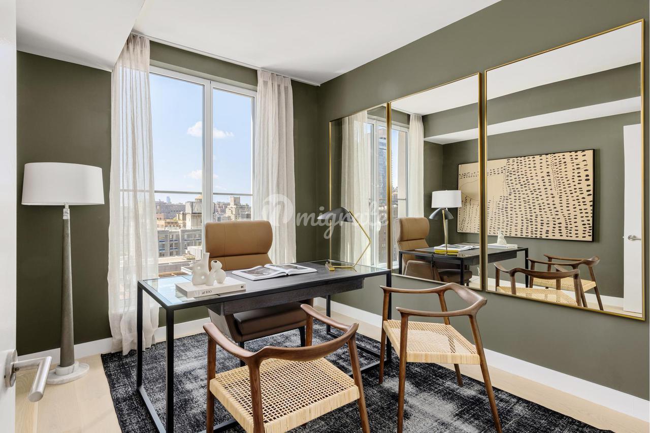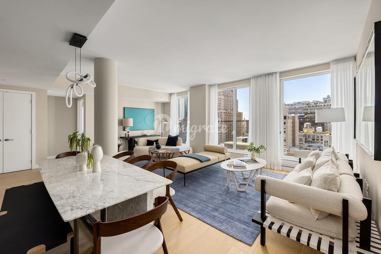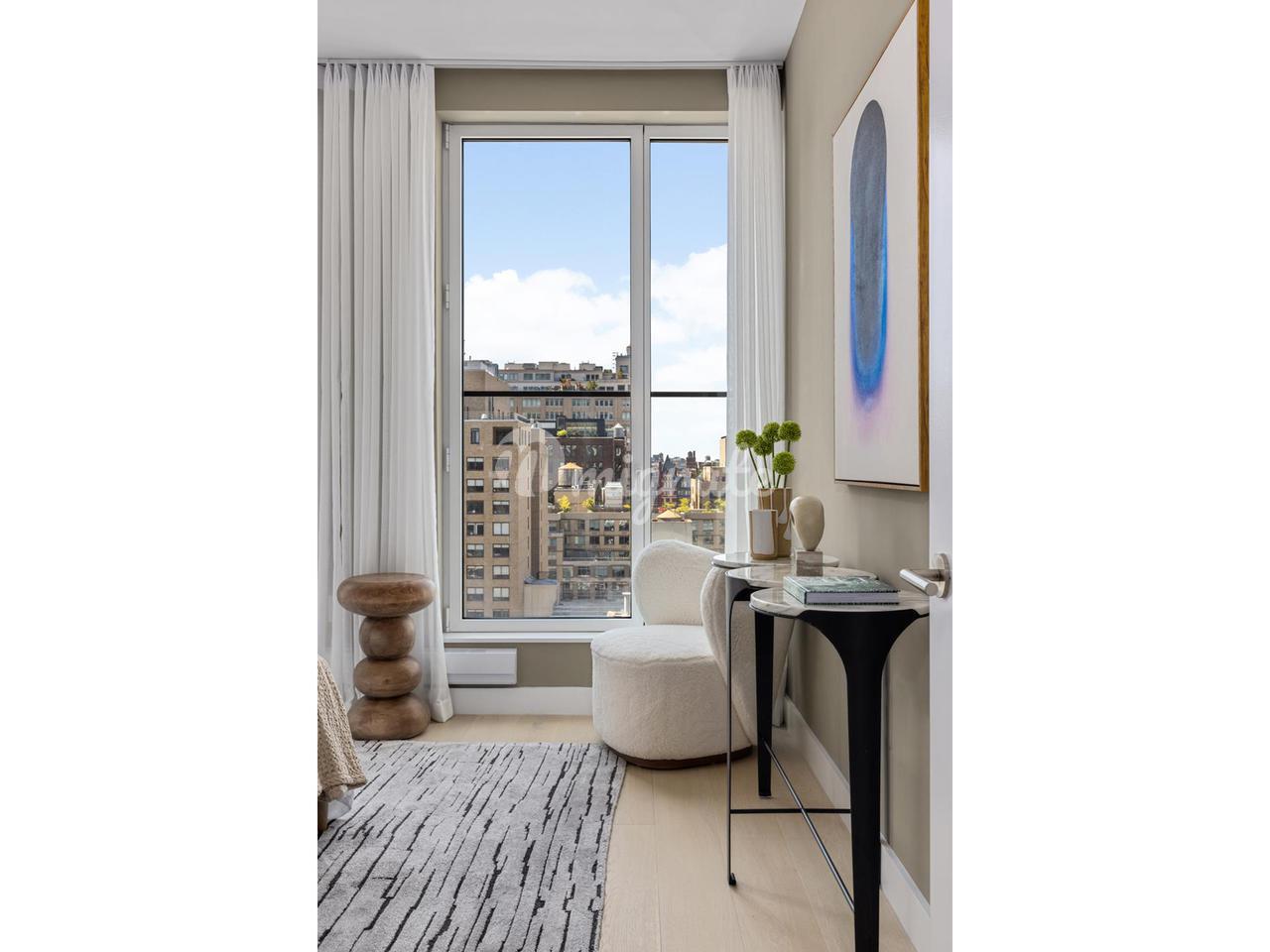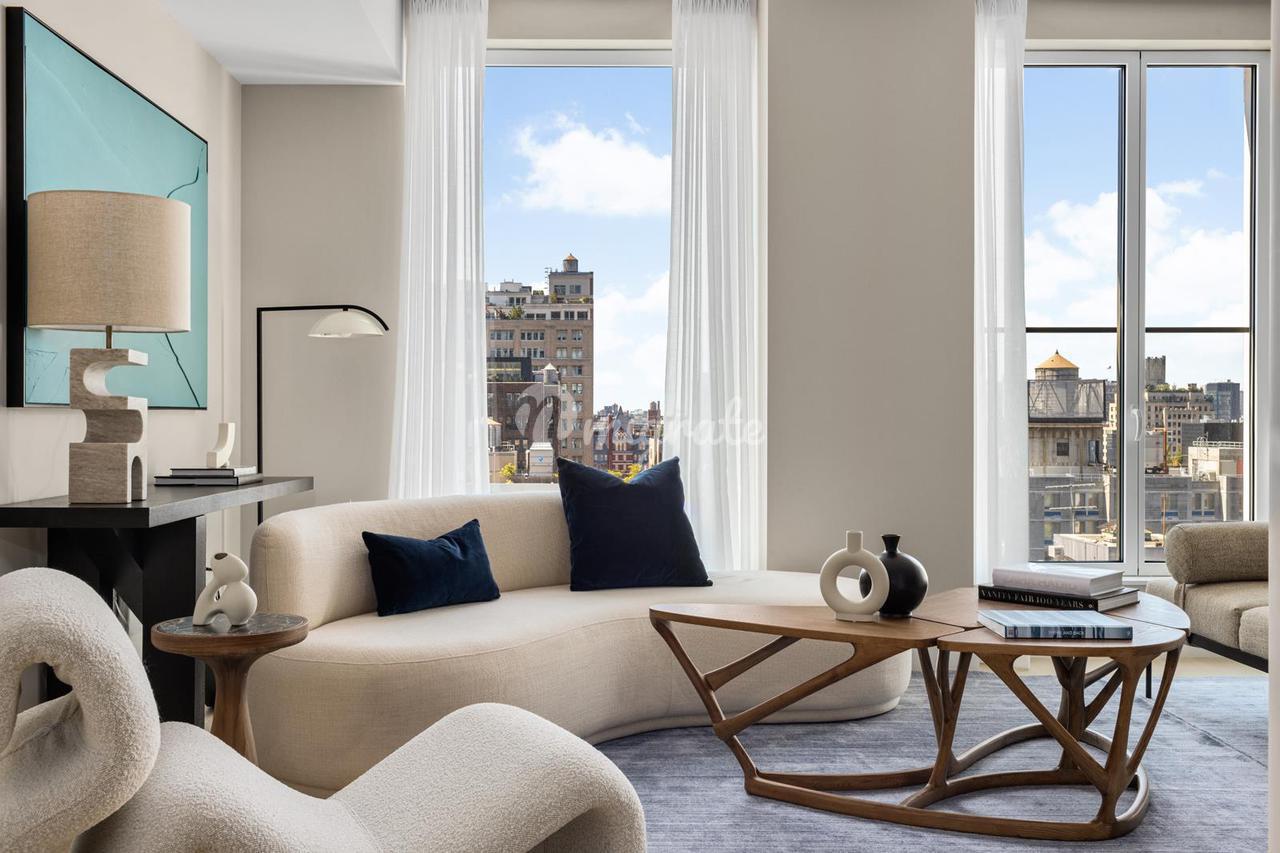 Резиденция 18B с потрясающими видами на северо-восток и юго-восток - это просторный дом площадью 2195 квадратных метров с четырьмя спальнями, четырьмя с половиной ванными комнатами, частной террасой площадью 322 квадратных метра, большими поворотно-откидными окнами и полом из белого европейского дуба шириной семь дюймов.
