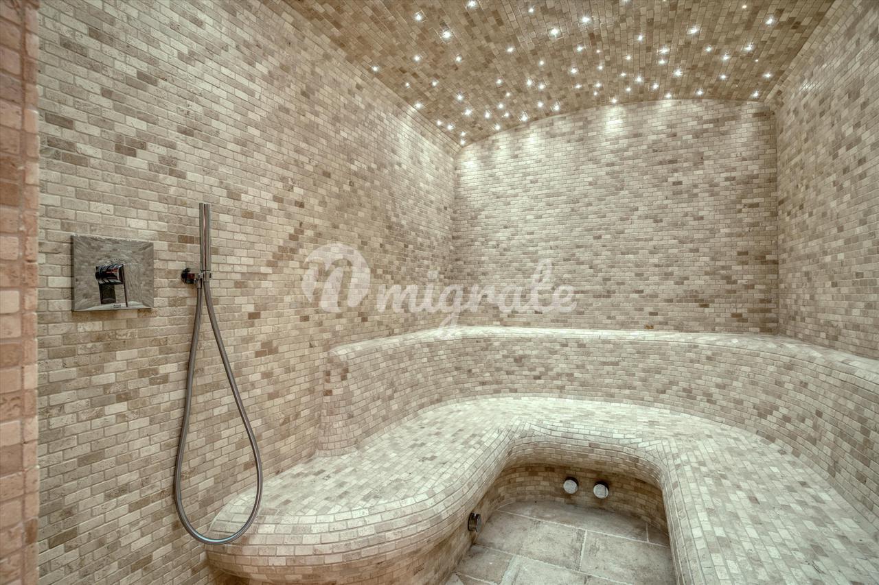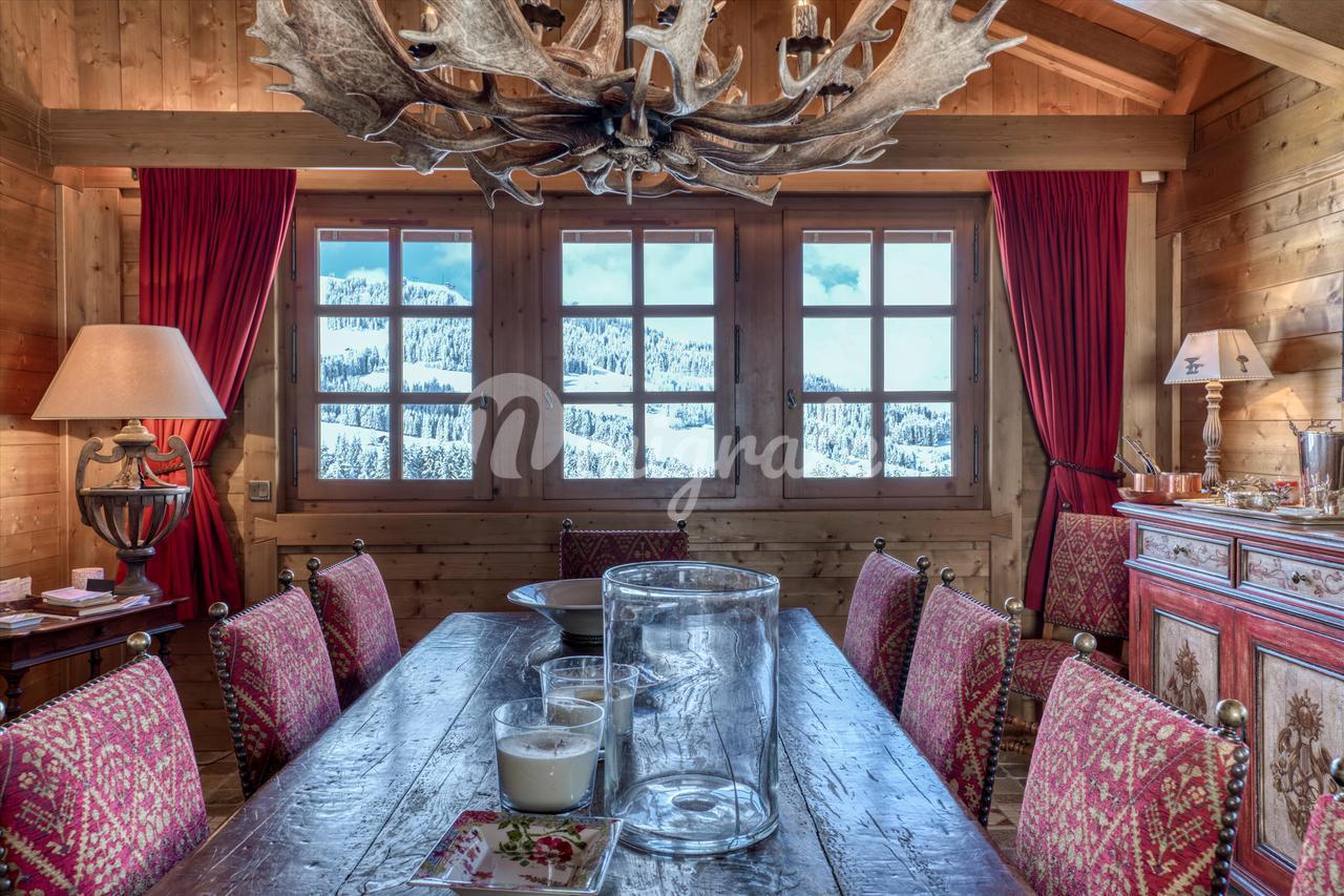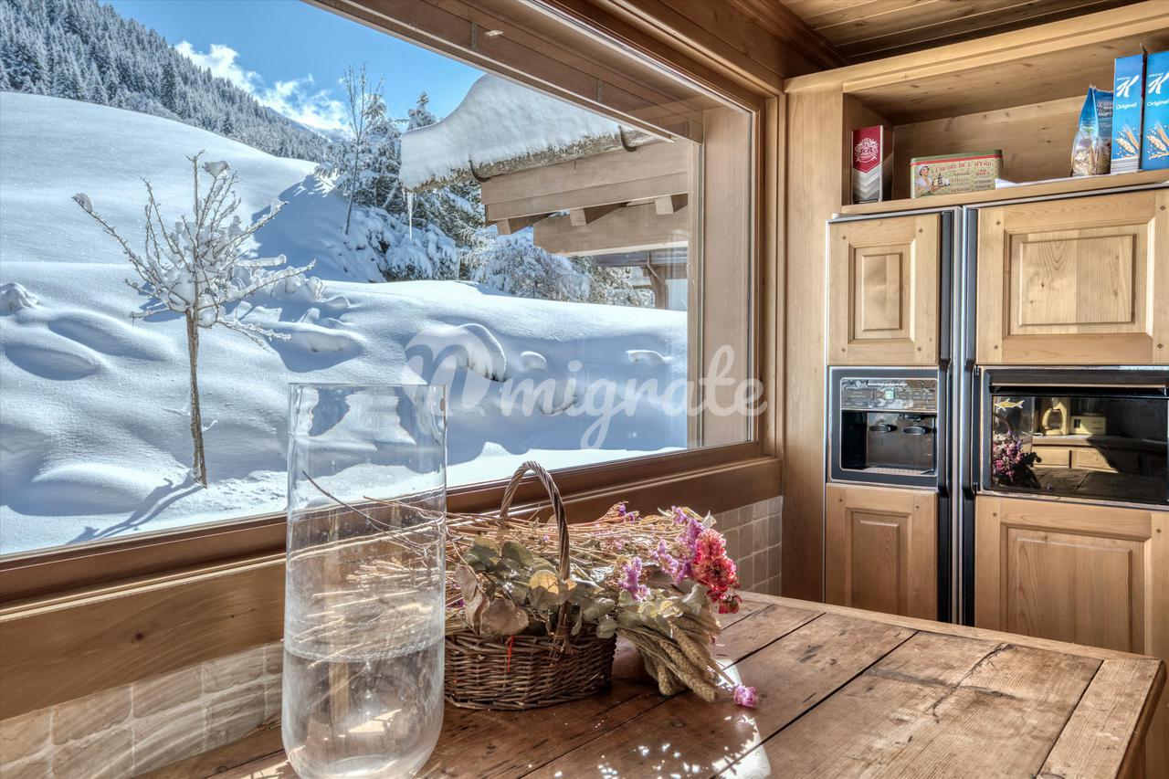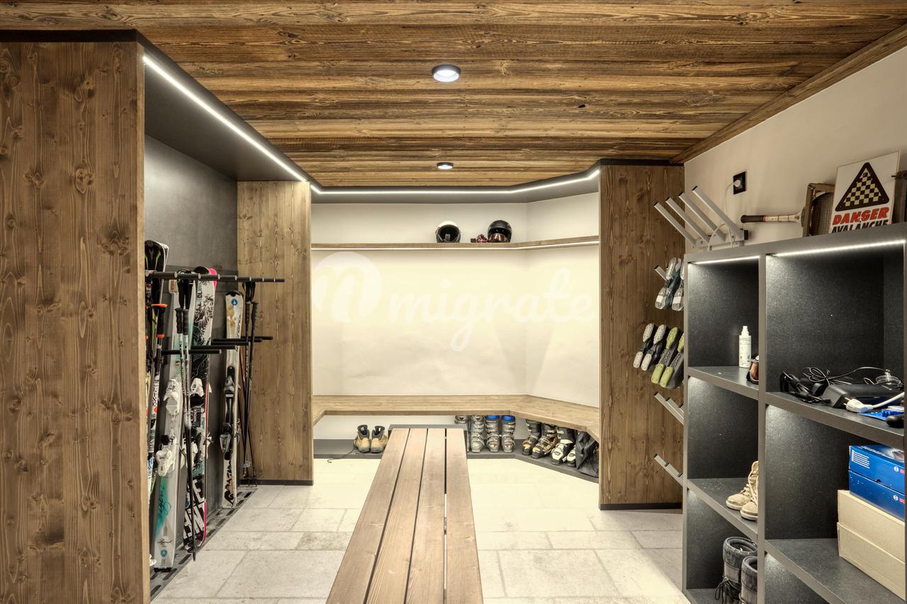 Имея беспрепятственный вид на окружающие горы, собственность включает подвал с гаражом на четыре машины, комнату для лыжного спорта с парной, лыжную комнату, винный погреб и большой офис. На уровне сада есть подземный подвал, прачечная, котельная, две спальни с ванной, туалетом и выходом на террасу / сад, выходящую на юго-запад. На этом же уровне находится одна спальня с ванной и туалетом. На первом этаже находится главный вход с гардеробной и гостевым туалетом, отдельная оборудованная кухня с подвалом, просторная гостиная с холлом, камином и столовой с выходом на балкон / террасу, выходящую на юго-запад. На чердаке находится главная спальня с ванной комнатой, отдельным туалетом и выходом на балкон, выходящий на юго-запад.