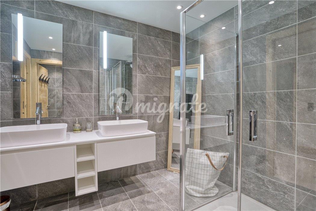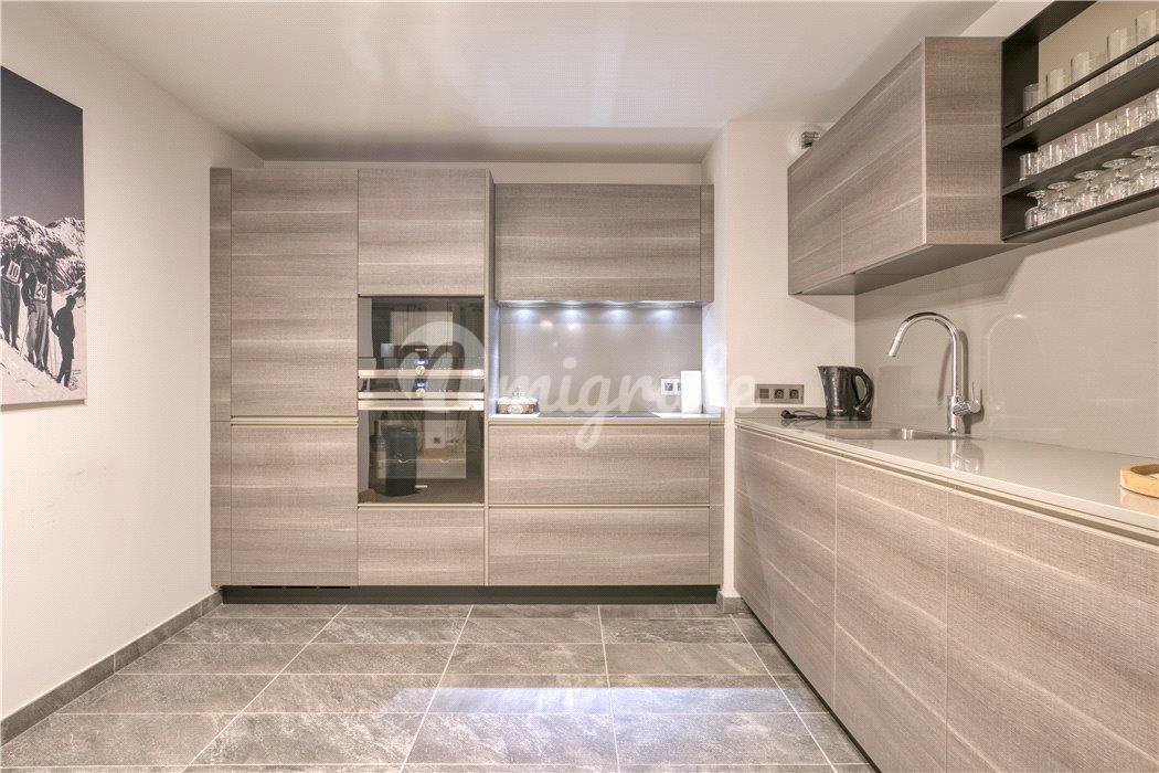 Эти апартаменты состоят из прихожей с туалетом для гостей, гостиной с обеденной зоной, оборудованной кухни открытой планировки, двух спален с гардеробными и собственными ванными комнатами. Квартира имеет общую жилую площадь около 111,81 кв.м и продается с подвалом, 1 подземным парковочным местом и оборудованным шкафчиком для хранения лыж с сушилкой для ботинок.