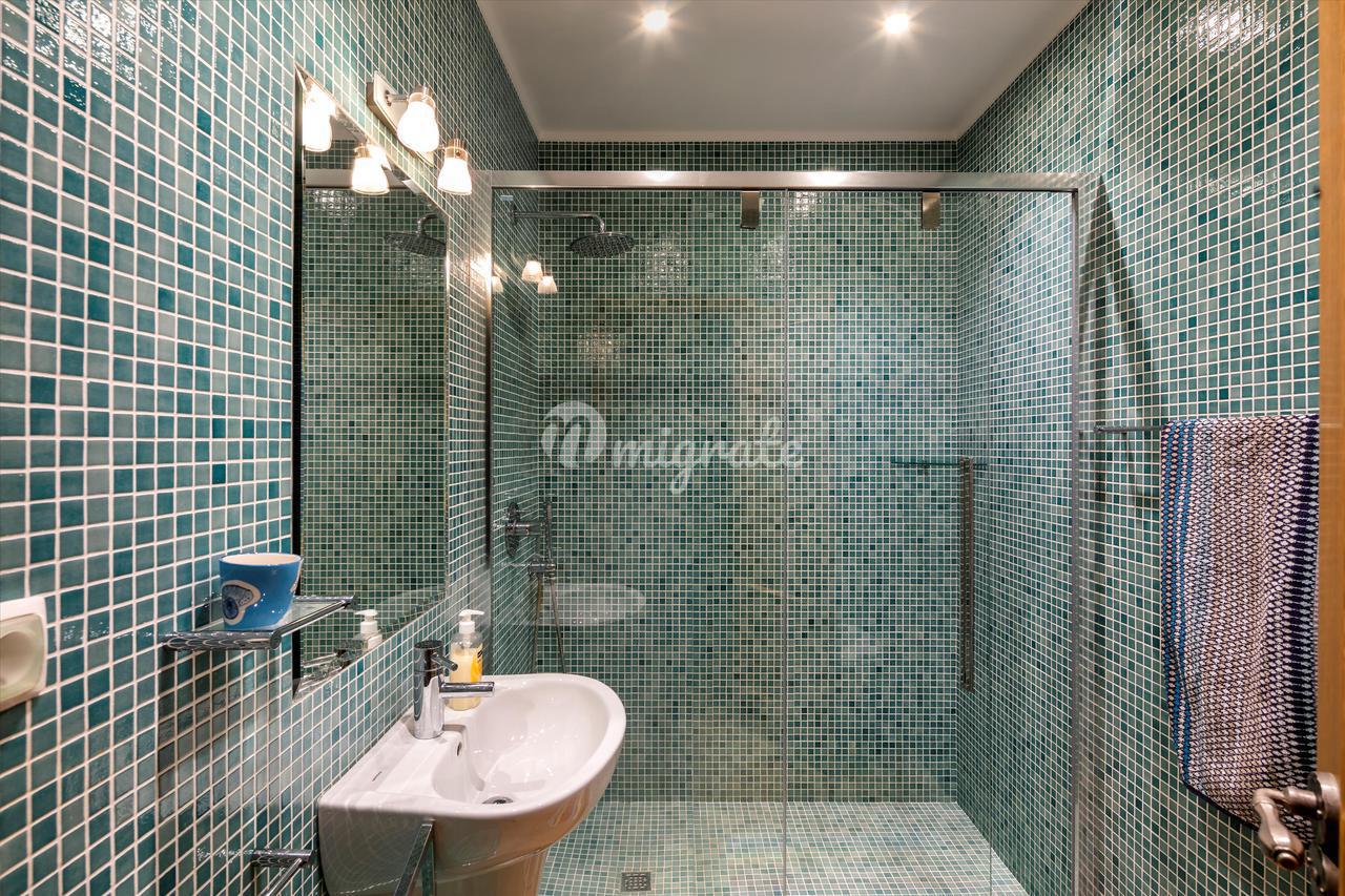Первый этаж состоит из прихожей, гостиной и столовой открытой планировки с камином, ведущей на террасу с местом для обедов на открытом воздухе и отдыха. Завершает этот уровень полностью оборудованная кухня с барной стойкой и гардеробной. На первом этаже находятся четыре спальни с двуспальными кроватями. В главной спальне есть собственная ванная комната с двойной раковиной, во второй спальне установлена большая душевая кабина, а еще две спальни имеют доступ к душевой комнате.