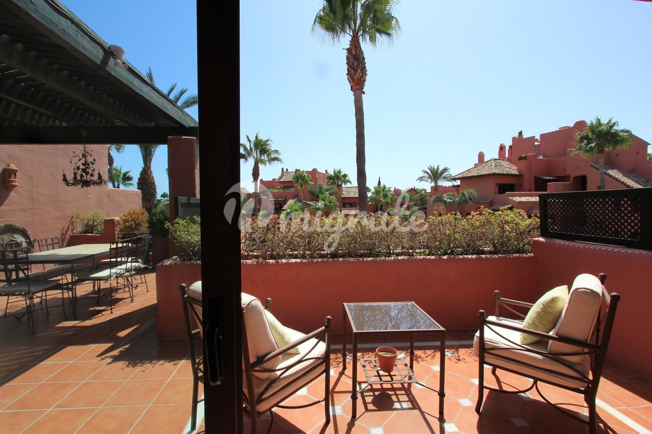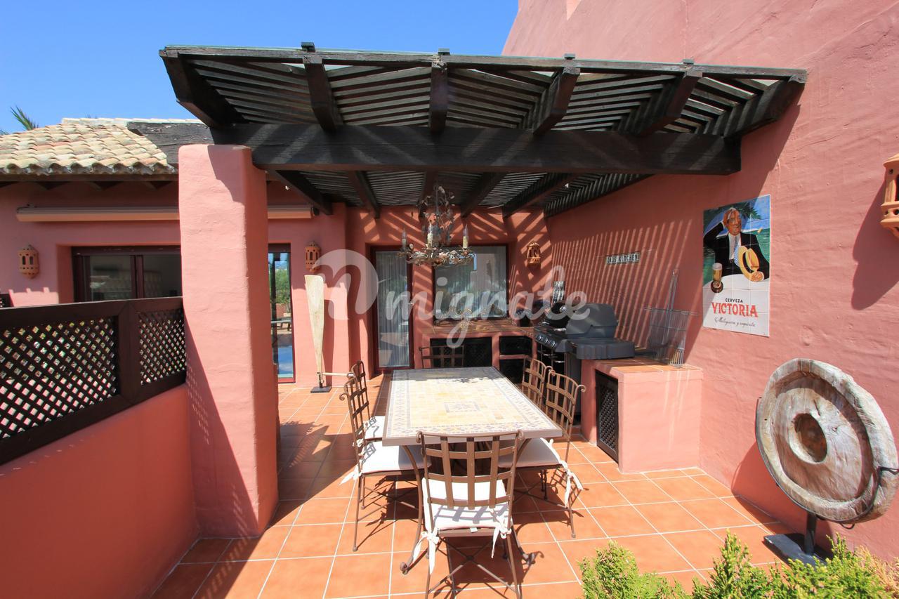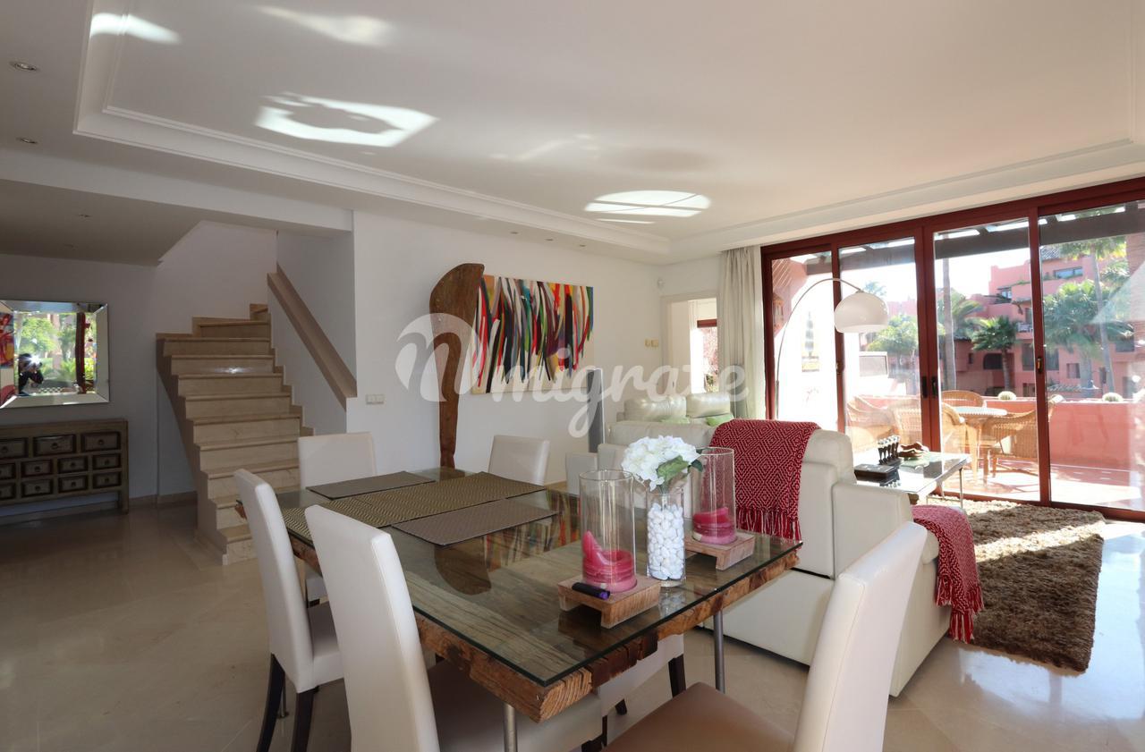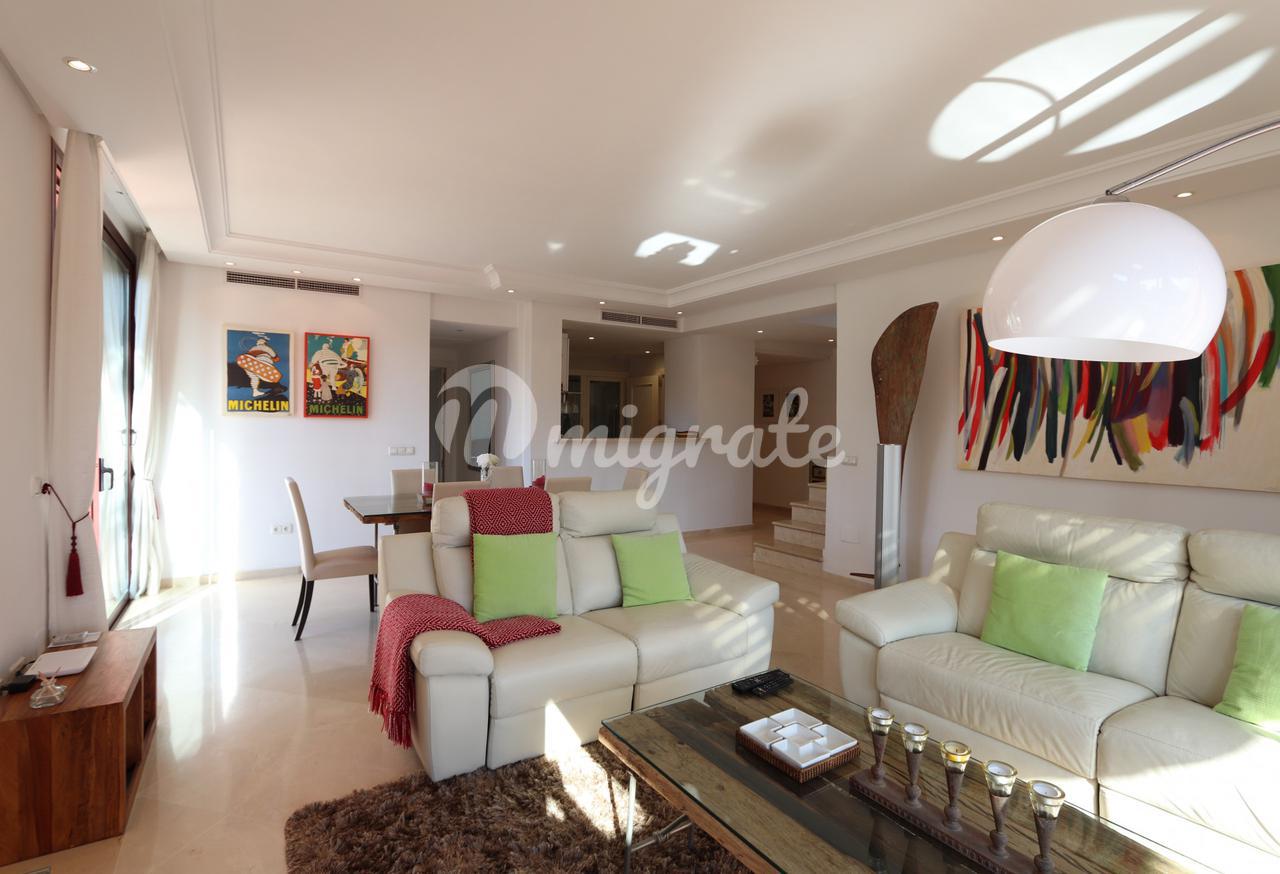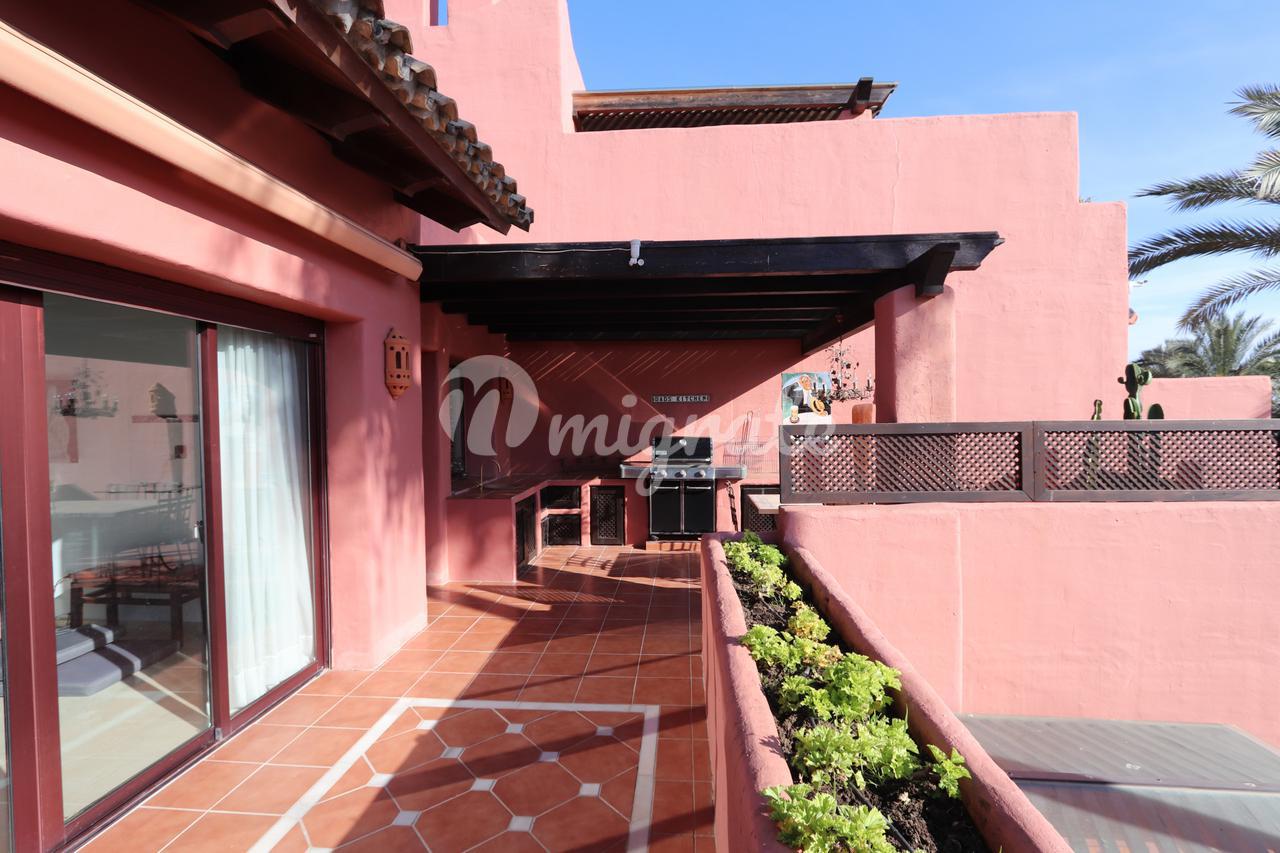 Он состоит из трех спален и трех ванных комнат. В общей сложности 120 м2 террас и 158 м2 внутренней площади, в этой квартире есть все, что вам нужно, чтобы наслаждаться круглый год или в качестве дома для отдыха. Прямой доступ к пляжу в идеальном месте. На первом этаже мы находим просторную гостиную-столовую и полностью оборудованную кухню, частично открытую для столовой, две спальни, одна из них с ванной комнатой, полностью оборудованную ванную комнату, прачечную и две террасы, одна из них крытая. На верхнем этаже находится главная спальня с наклонными деревянными потолками и ванной комнатой, а также терраса с джакузи, вмещающая до 4 человек, и открытая кухня, где можно организовать обеды и ужины на свежем воздухе.