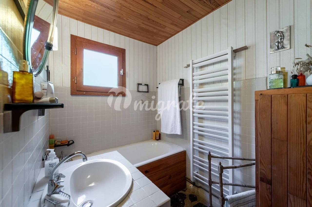 Это шале состоит из кухни, выходящей в гостиную, 4 спален и 2 ванных комнат на 3 этажах. В нем также есть светлый мезонин, 2 гаража, 1 мастерская и подсобное помещение.