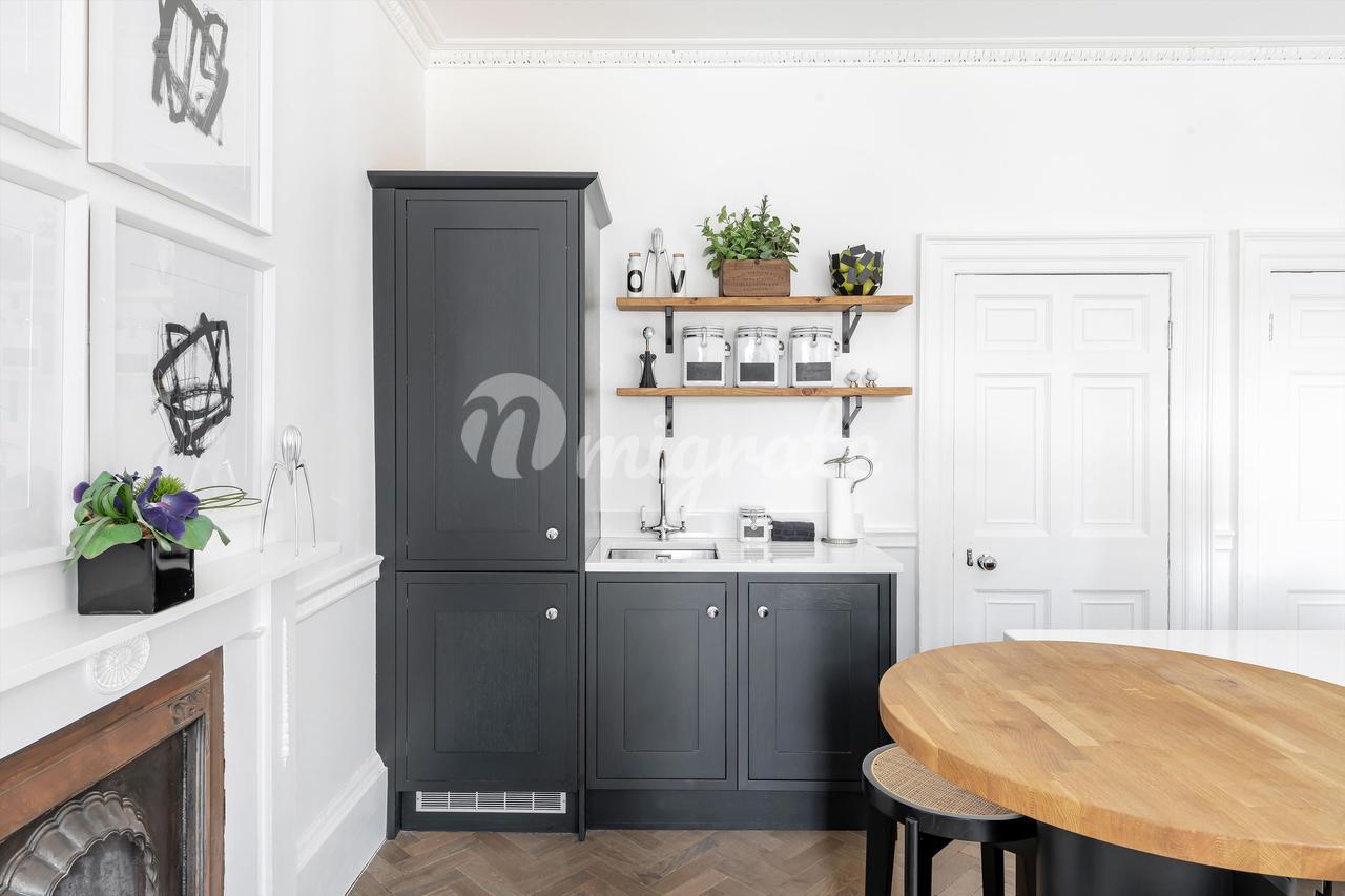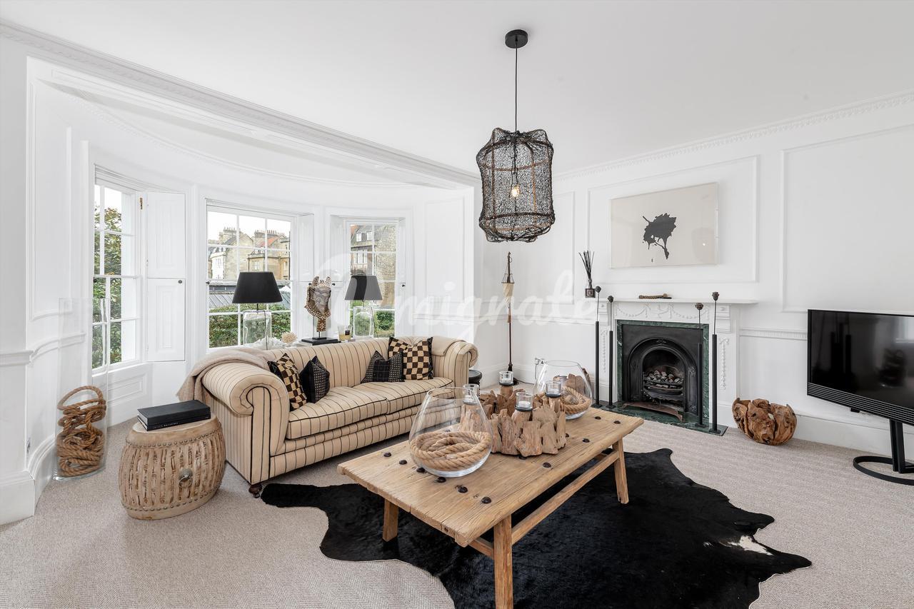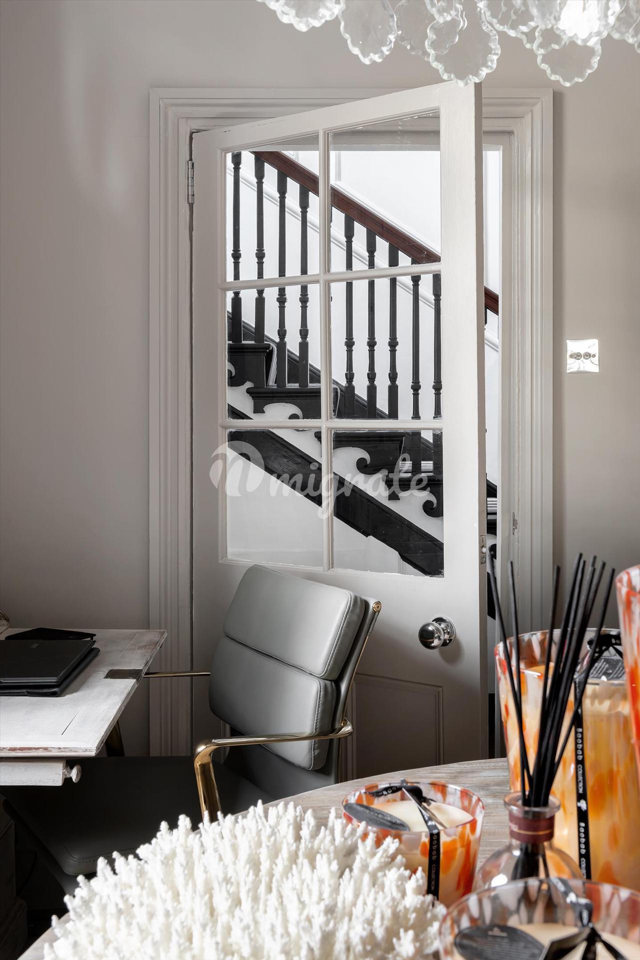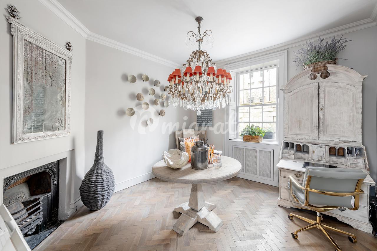 Построенное примерно в 1760–1770 годах Джоном Вудом (Старшим), здание № 9 Майлза находится в центре этой террасы, внесенной в список памятников архитектуры II степени в георгианском стиле, и отличается тем, что является единственным домом с дополнительным мансардным этажом. Каждый из его пяти этажей был недавно отремонтирован всемирно известным дизайнером интерьеров Джулией Демпстер, в результате чего дом стал стильным и удобным. За входной дверью и внутренним крыльцом находится элегантный коридор с поразительной черной консольной лестницей, белыми панелями на стенах и деревянным полом в елочку, который переходит в другие комнаты на этом этаже. В кухне-столовой есть сделанные на заказ элементы дизайна Intone Design и центральный остров с круглой деревянной барной стойкой для завтрака.