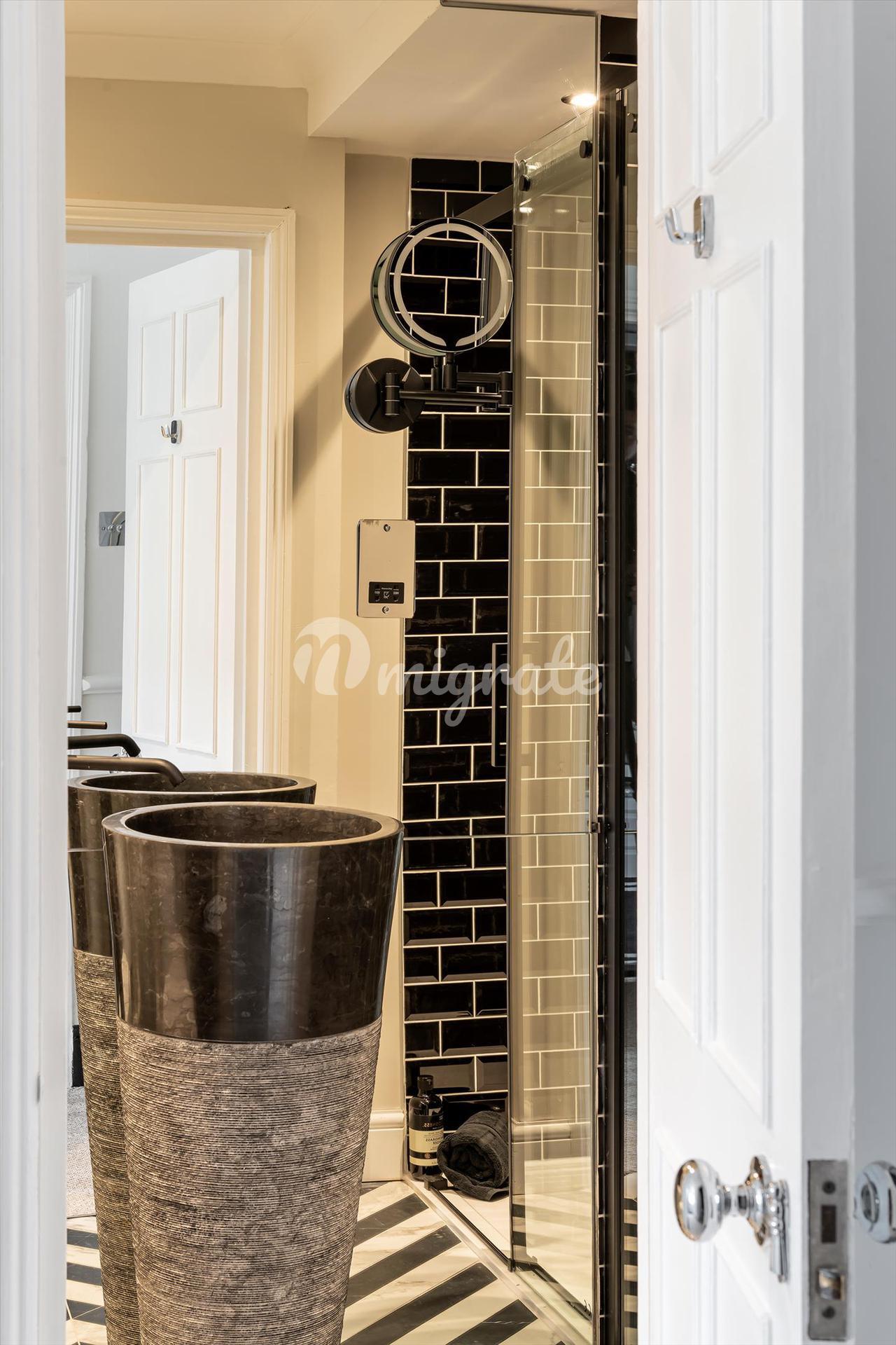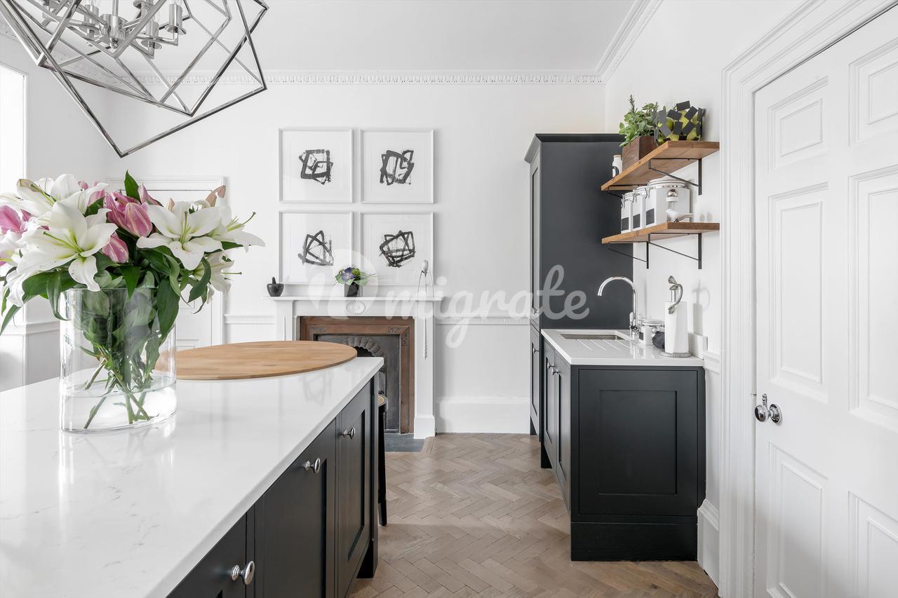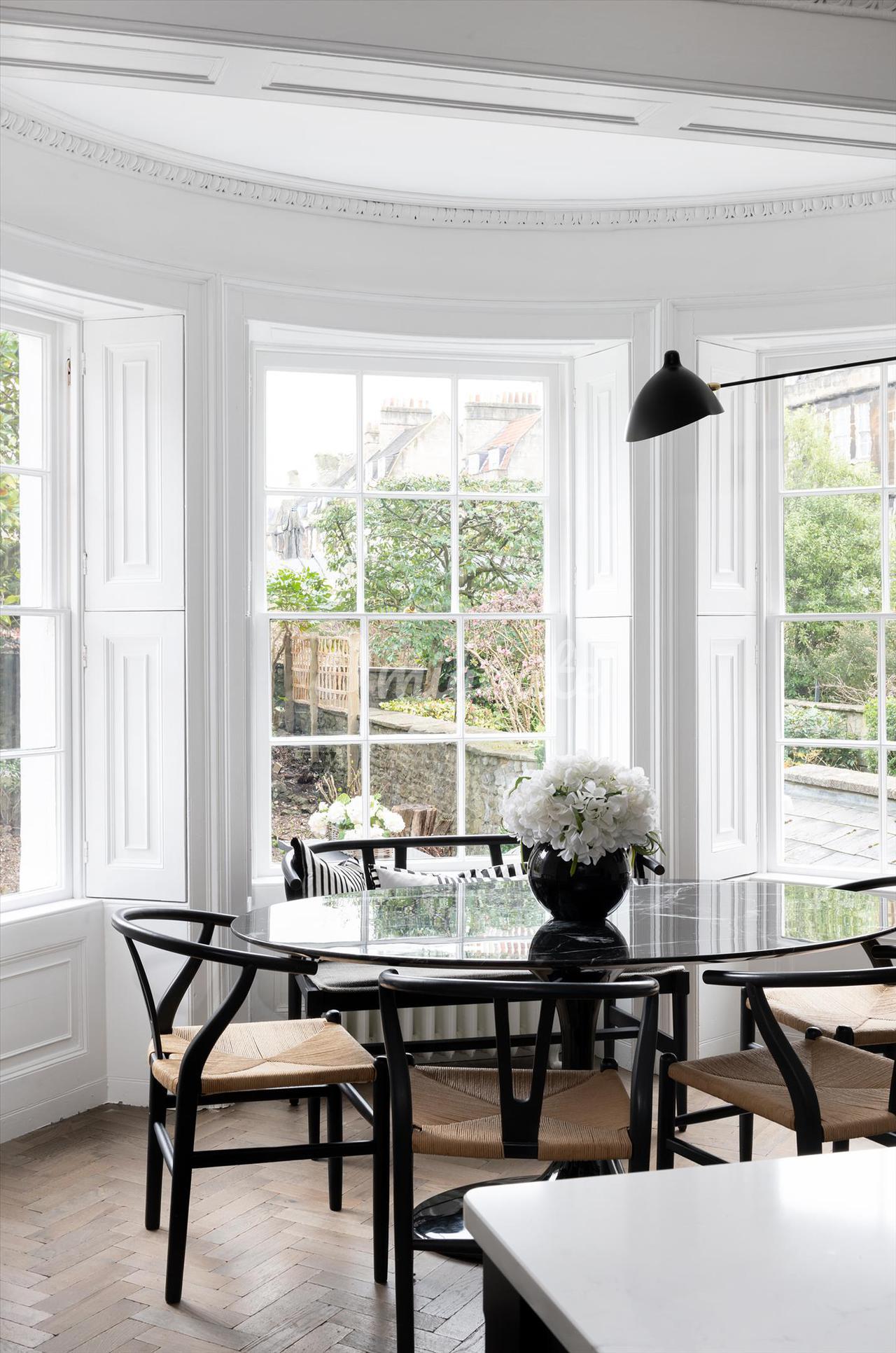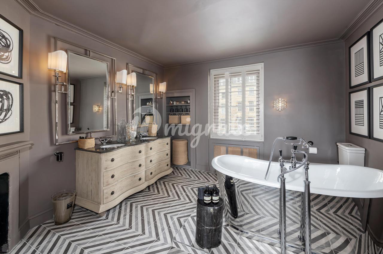 Построенное примерно в 1760–1770 годах Джоном Вудом (Старшим), здание № 9 Майлза находится в центре этой террасы, внесенной в список памятников архитектуры II степени в георгианском стиле, и отличается тем, что является единственным домом с дополнительным мансардным этажом. Каждый из его пяти этажей был недавно отремонтирован всемирно известным дизайнером интерьеров Джулией Демпстер, в результате чего дом стал стильным и удобным. За входной дверью и внутренним крыльцом находится элегантный коридор с поразительной черной консольной лестницей, белыми панелями на стенах и деревянным полом в елочку, который переходит в другие комнаты на этом этаже. В кухне-столовой есть сделанные на заказ элементы дизайна Intone Design и центральный остров с круглой деревянной барной стойкой для завтрака.