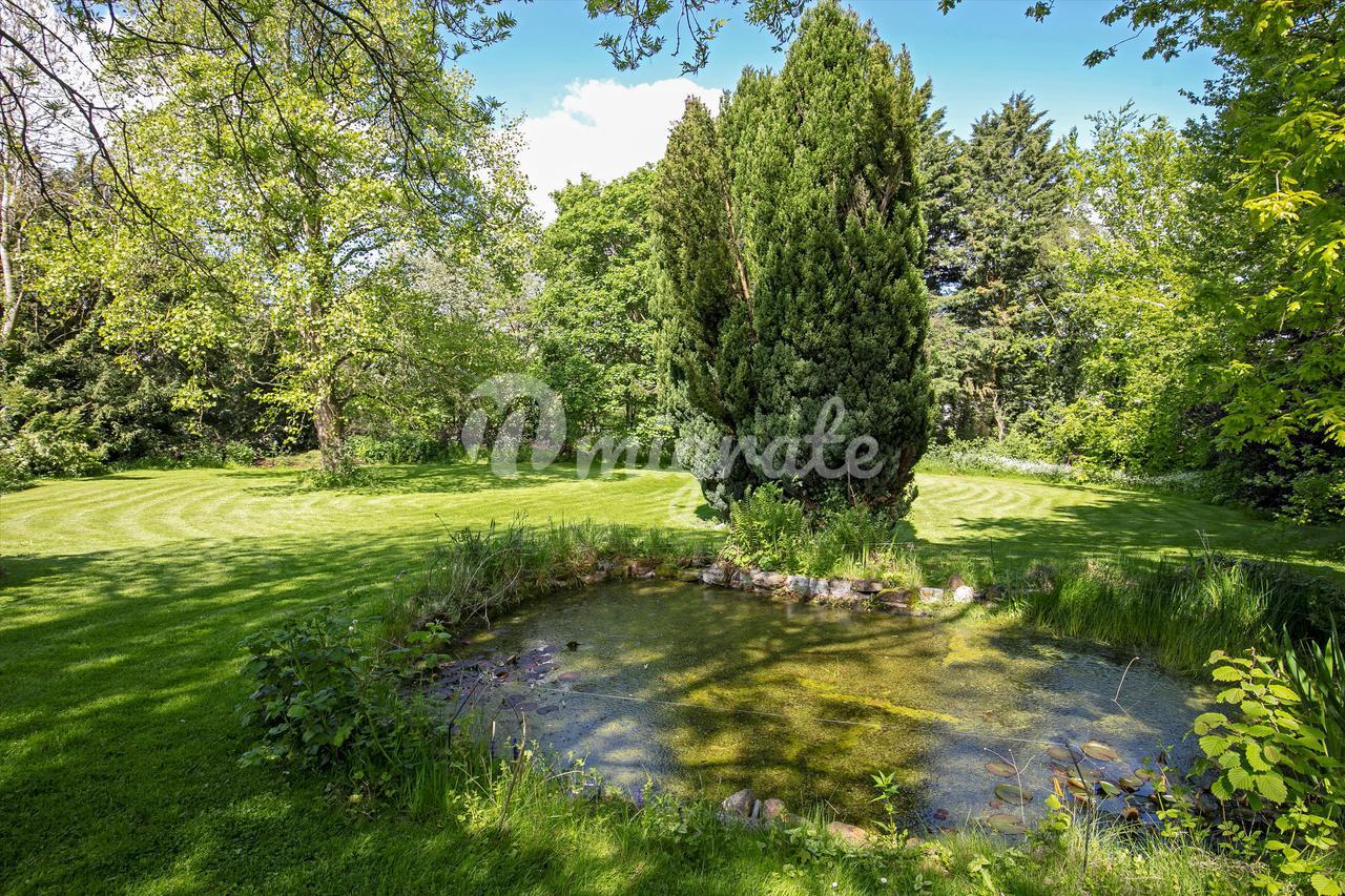 Сад в основном газон и содержит кусты и луковичные клумбы. Сад украшен прекрасными взрослыми деревьями, включая бук и медный бук, ясень, платан, тюльпанное дерево, цветущую вишню, вечнозеленые деревья, магнолию, тис и дуб, а также живую изгородь из жимолости вдоль дорожки. Часть сада оставлена как пряность с лесными луковицами, скошенными дорожками и тремя яблонями. В саду есть два декоративных пруда с ручьем между ними, с циркуляционным насосом, который в настоящее время не работает. Со стороны сада находится бассейн, который в настоящее время не используется, и деревянный застекленный летний домик с мощеным полом. Под боковой лужайкой находится огород с теплицей за живой изгородью из бука, со сливой и орешником.