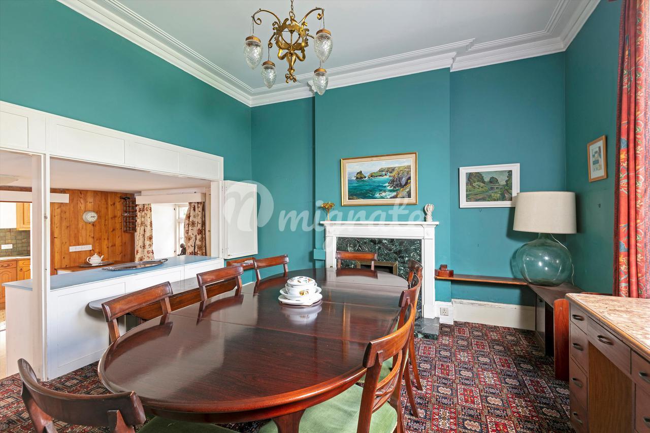 Фасад фасада выполнен из кирпича, а фасад сзади выполнен из камня с привлекательными деталями из кирпича. Через небольшой дворик от дома находится каменный сарай для карет, в котором можно создать подсобное помещение или домашний офис для удаленной работы, при условии наличия разрешения на строительство. Жилье двухэтажное спереди и три этажа сзади. Входная дверь открывается в холл изящной изящной изогнутой лестницей и перилами. С одной стороны находится столовая с чугунной решеткой у камина и ступеньками вниз в зал для завтраков и кухню.