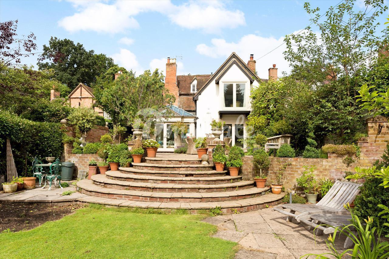 Ландшафтный сад, выходящий на юго-восток, отличного размера и в основном разбит на газоны. Из садовой комнаты или гостиной можно выйти на очень большую террасу, которая идеально подходит для приема гостей. Каменные ступени ведут вниз в сад, а мощеная дорожка ведет к подъездной дорожке и гаражу. Из патио в нижней части сада открывается вид на замок Уорик. Существует право доступа по подъездной дорожке к лодочному клубу, а закрытая частная подъездная дорожка ведет к парковке и гаражу. Существует отдельный гараж на две машины и парковка на 10 машин, что, безусловно, является редкостью для этого места. Было выдано разрешение на строительство нового гаража с помещением над ним (Ref W07/0223), а также имеются разрешения на парковку на Милл-стрит.