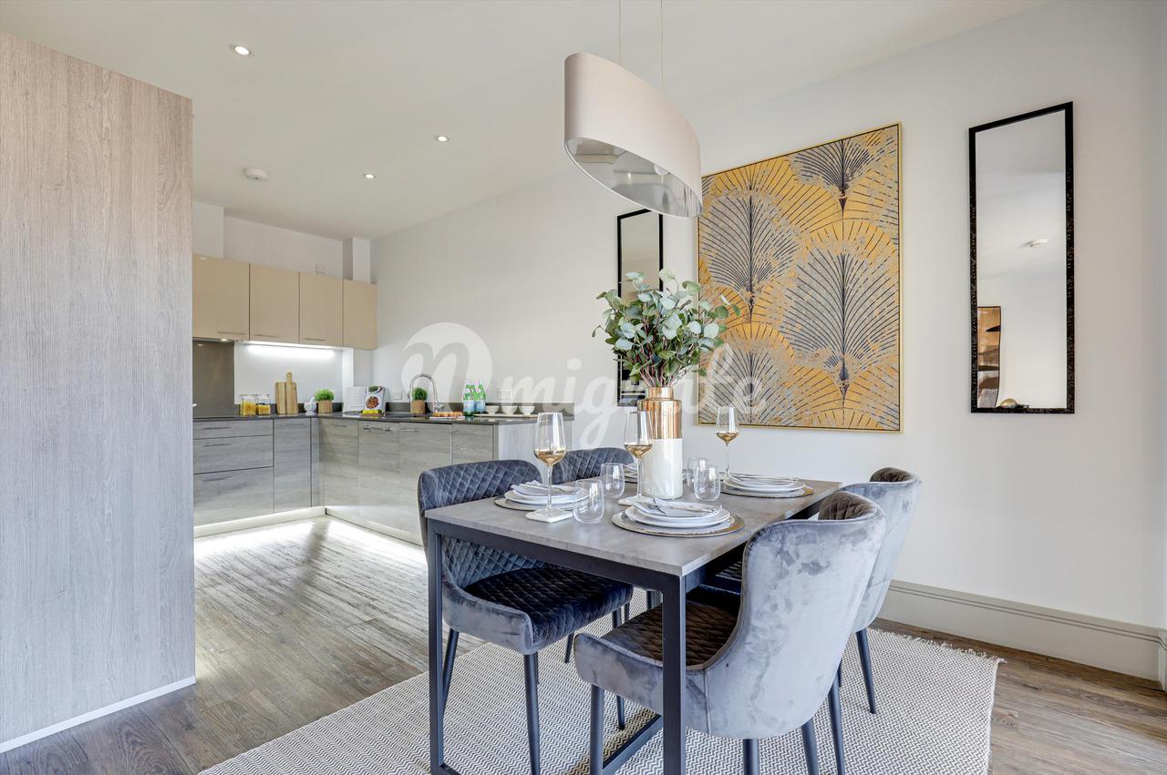 Апартаменты Bellairs — это симпатичная переделка всего одиннадцати уникальных квартир компанией Reside Developments из Доркинга. Первоначальное здание с внушительным викторианским фасадом датируется 1885 годом и первоначально называлось Приходским залом Святого Николая и Клубом рабочих. В конце 19 века он был преобразован в театр самодеятельности. Совсем недавно здесь находилась Гилфордская школа актерского мастерства и танца, первоначально известная как Школа танца и драмы Гранта-Беллэрса в честь ее основателей. Основанная в Лондоне в 1935 году, школа была переведена в Гилфорд в 1945 году в результате Второй мировой войны, и здание стало известно как The Bellairs Playhouse. В 2010 году GSA стала дочерней компанией Университета Суррея и переехала в новые помещения, включая прекрасный новый театр под названием Ivy Arts Center, расположенный в университетском городке. Благодаря знаменитым выпускникам, таким как Билл Найи, Селия Имри, Бренда Блетин и Майкл Болл, которые в прошлом выступали на его досках, бывший дом Гилфордской школы актерского мастерства, безусловно, богат своей историей исполнительского искусства. Сегодня практически в каждой постановке Вест-Энда участвуют исполнители, прошедшие обучение в GSA. № 6 - это роскошная квартира с двумя спальнями, расположенная на двух этажах. Просторная кухня открытой планировки, столовая и гостиная предназначены для максимально гибкого проживания и имеют высокие потолки и большие окна, пропускающие свет.