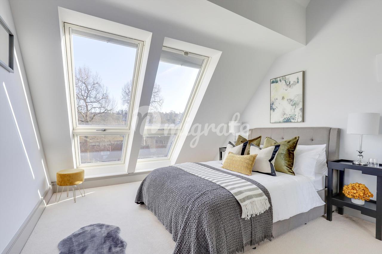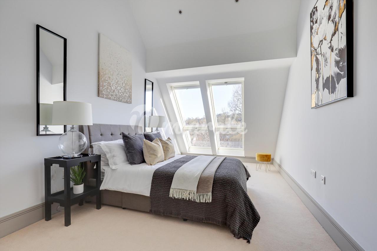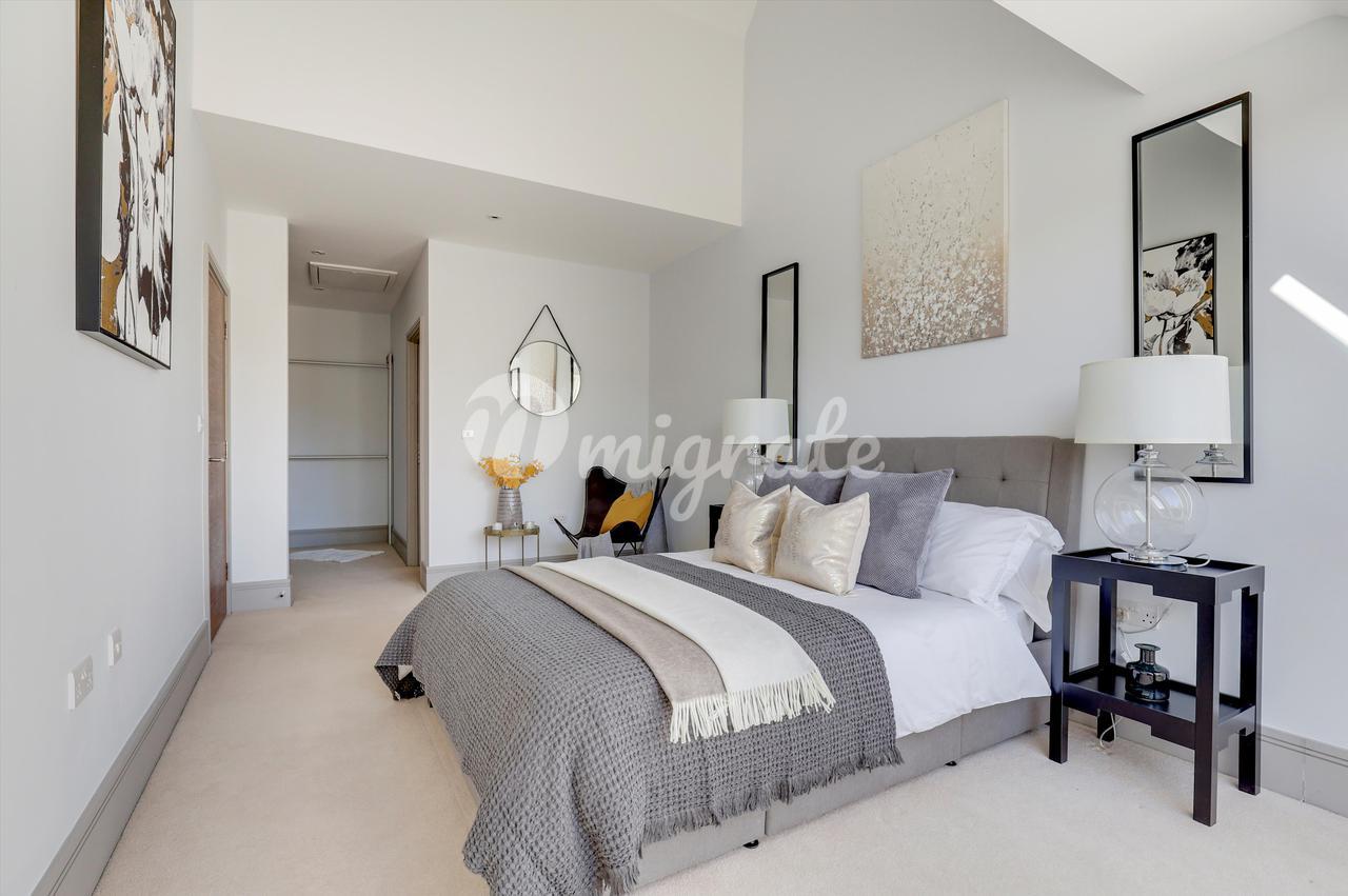 Есть две спальни с двуспальными кроватями, каждая из которых обслуживается собственной ванной / душевой комнатой. В главной спальне также есть собственная гардеробная. В обеих спальнях есть огромные балконы-кабриолеты, из которых открывается потрясающий панорамный вид на центр Гилфорда, включая исторический замок Гилфорда.