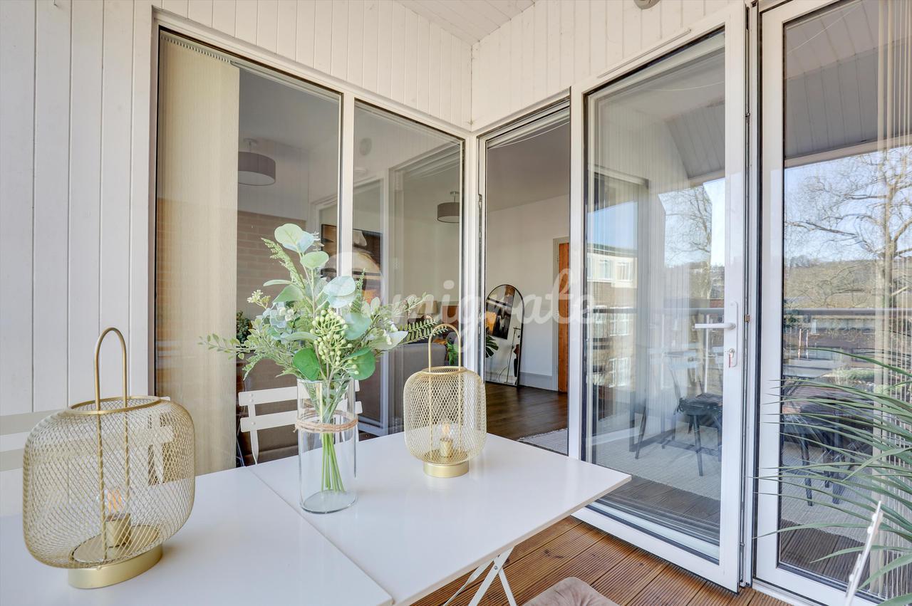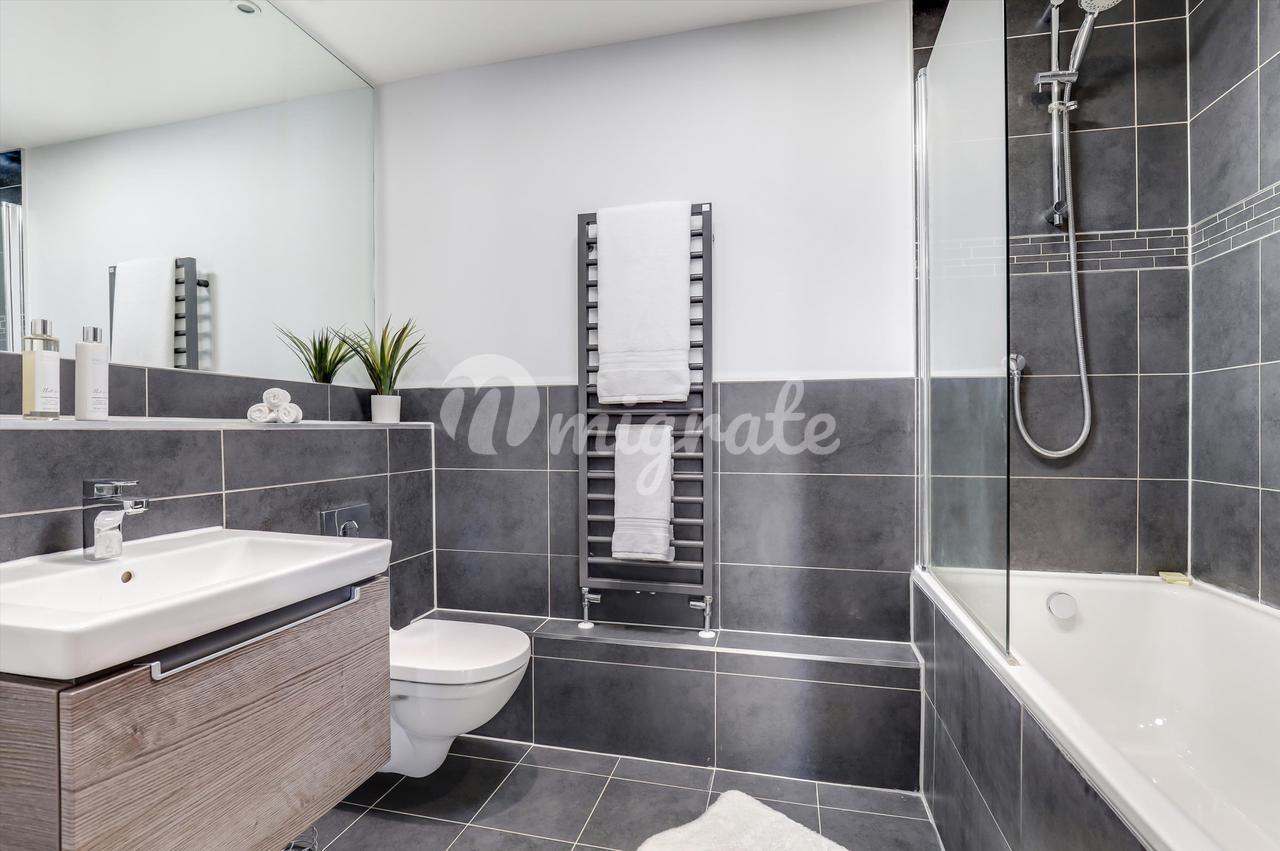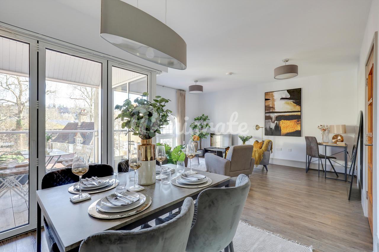 Есть две спальни с двуспальными кроватями, каждая из которых обслуживается собственной ванной / душевой комнатой. В главной спальне также есть собственная гардеробная. В обеих спальнях есть огромные балконы-кабриолеты, из которых открывается потрясающий панорамный вид на центр Гилфорда, включая исторический замок Гилфорда.
