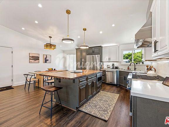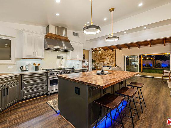 Современный модернизированный дом находится в престижном районе Вудленд-Уэст. Припарковавшись в своем готовом гараже с эпоксидными полами и зарядной станцией для электромобилей, вы направляетесь к роскошным железным двойным входным дверям. Войдя в дом, сразу же вы видите отреставрированный каменный камин и сводчатые потолки из натурального дерева. В большом зале достаточно места для развлечений, а в комплекте с баром для напитков установлена барная стойка. Кухня оборудована изготовленными на заказ шкафами с отделкой из натурального ореха, дизайнерскими столешницами из канадского кварца класса люкс, большим островом из орехового дерева и полным комплектом бытовой техники класса люкс. Пройдя по коридору, вы попадете в две просторные гостевые комнаты, разделяющие красивую ванную комнату с индивидуальным дизайном плитки и великолепным двойным туалетным столиком. В главной спальне имеются двойные шкафы на заказ, уникальная амбарная дверь из орехового дерева и французские двери во внутренний дворик. 4-я спальня была бы идеальной комнатой для гостей или кабинетом, с французскими дверями, ведущими также наружу. Выйдя на улицу, вы попадаете на огромный задний двор с беседкой, большим травянистым двором, крытым патио и бассейном. Изготовленный на заказ внутренний дворик занимает всю заднюю часть дома, что позволяет создать несколько зон отдыха и много тени. Просторная беседка идеально подходит для обедов на свежем воздухе теплыми летними вечерами. Дом расположен в нескольких минутах ходьбы от отмеченной наградами начальной школы Калабаш и в нескольких минутах от магазинов, ресторанов, Калабасаса, автострады 101, и пляжа в Малибу.
