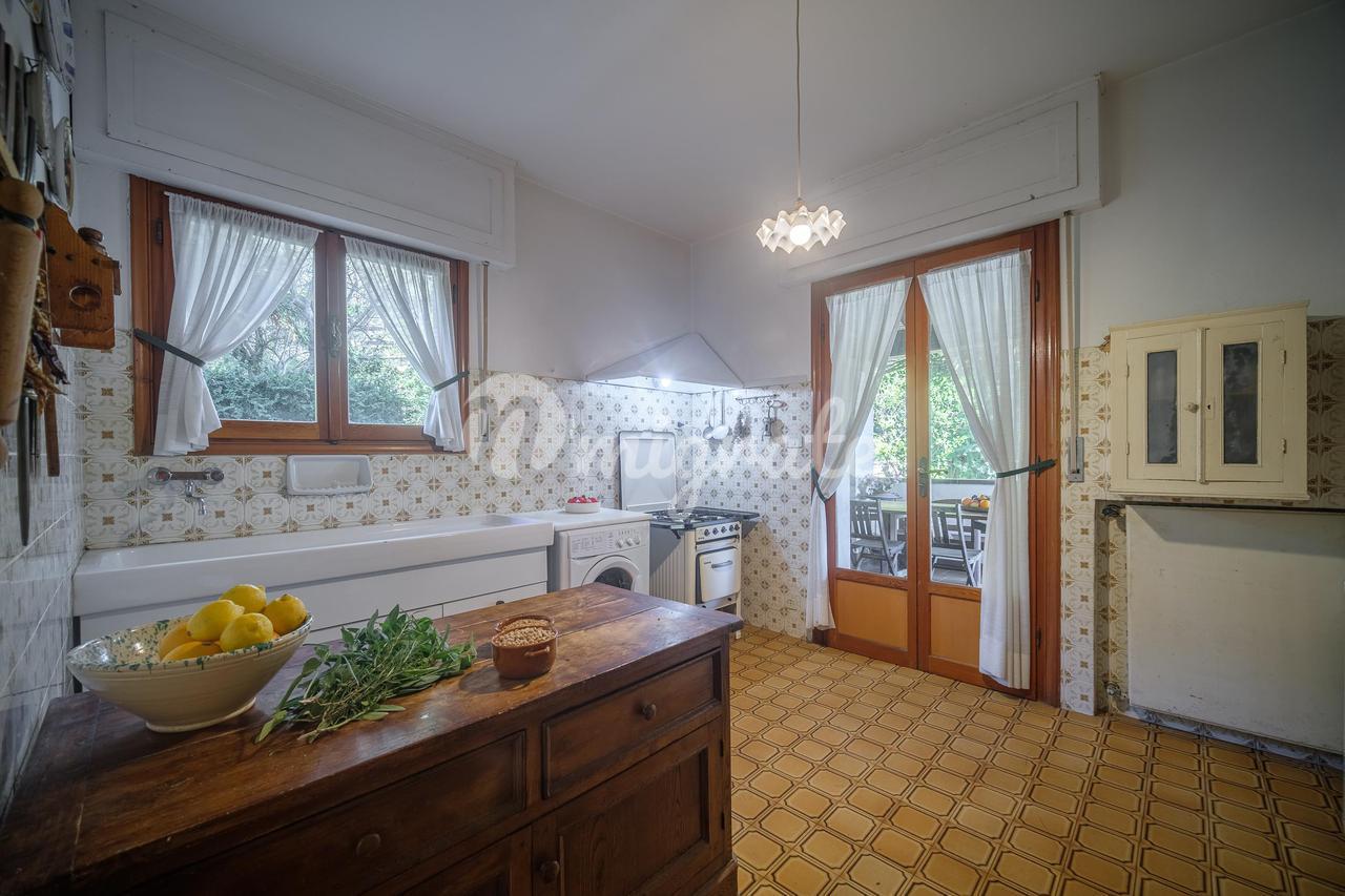 Квартира на первом этаже была недавно отремонтирована и расположена на одном этаже, с крытой террасой, гостиной, кухней и спальной зоной, состоящей из трех спален, ванной комнаты и кладовой. Большие подвалы завершают этаж. Вторая квартира - с отдельным входом - расположена на двух этажах, плюс дополнительный мансардный этаж с ванной комнатой. Винтовая лестница ведет на верхний этаж, где расположены три спальни, терраса и ванная комната.