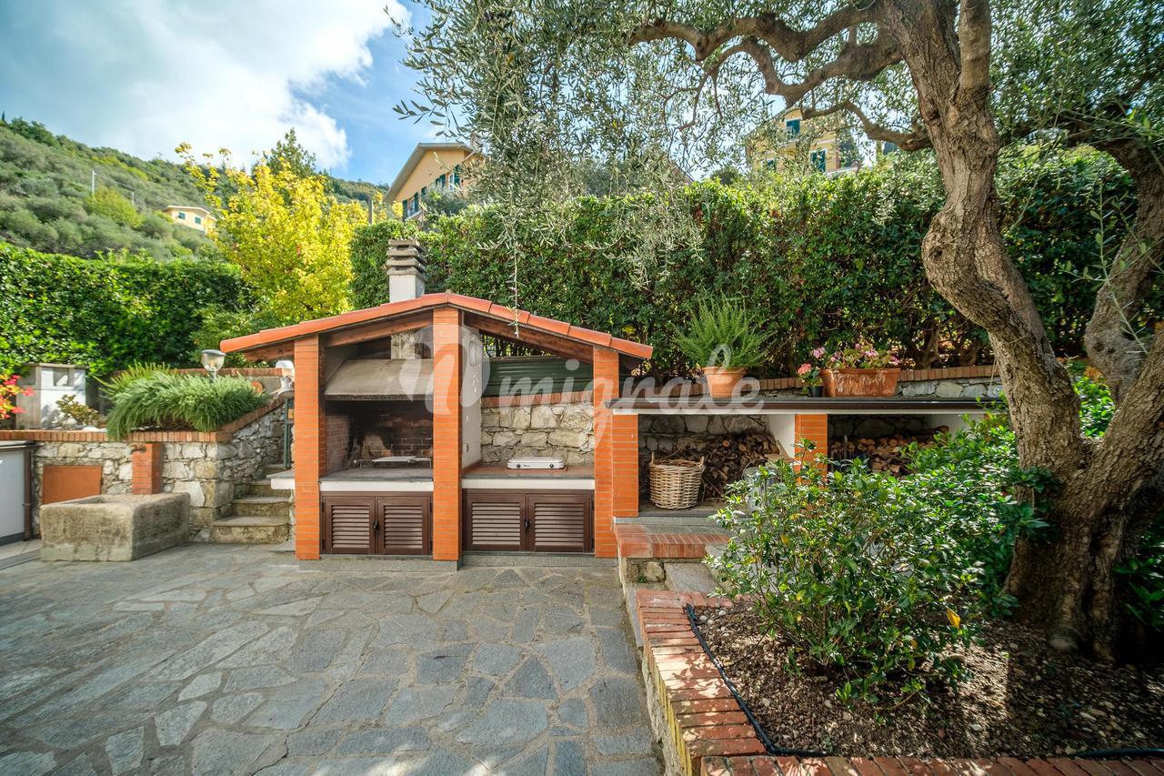 Вторая квартира, куда можно подняться по короткой лестнице, занимает два этажа и располагает прекрасным открытым пространством: террасами на каждом этаже и большим патио с видом на море. Сад оборудован летней кухней с барбекю, мебелью и красивыми участками земли, засаженными оливковыми рощами и фруктовыми деревьями.