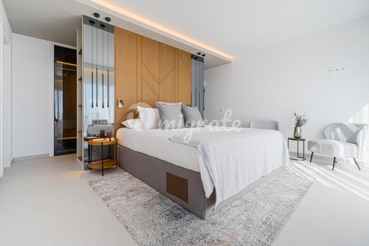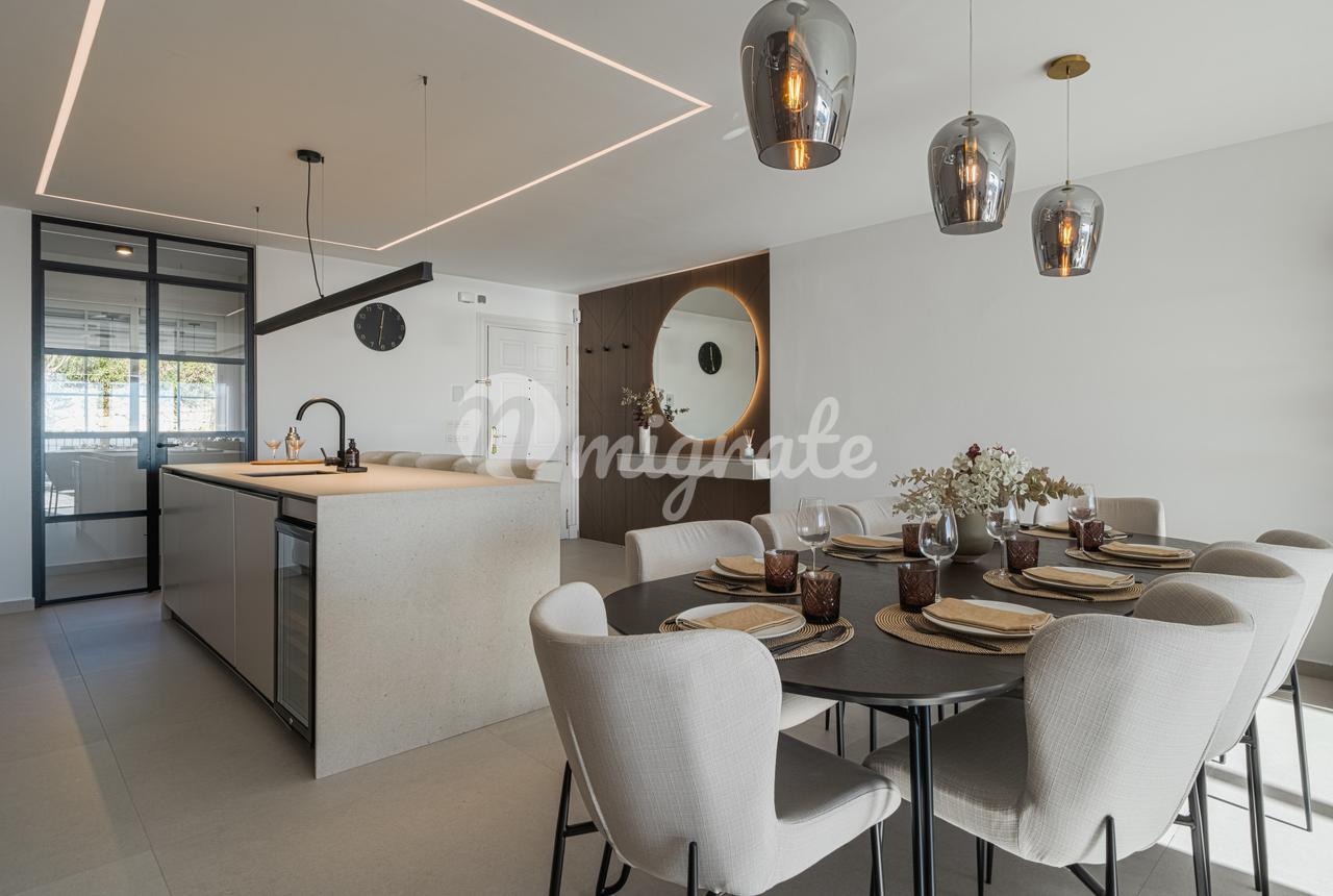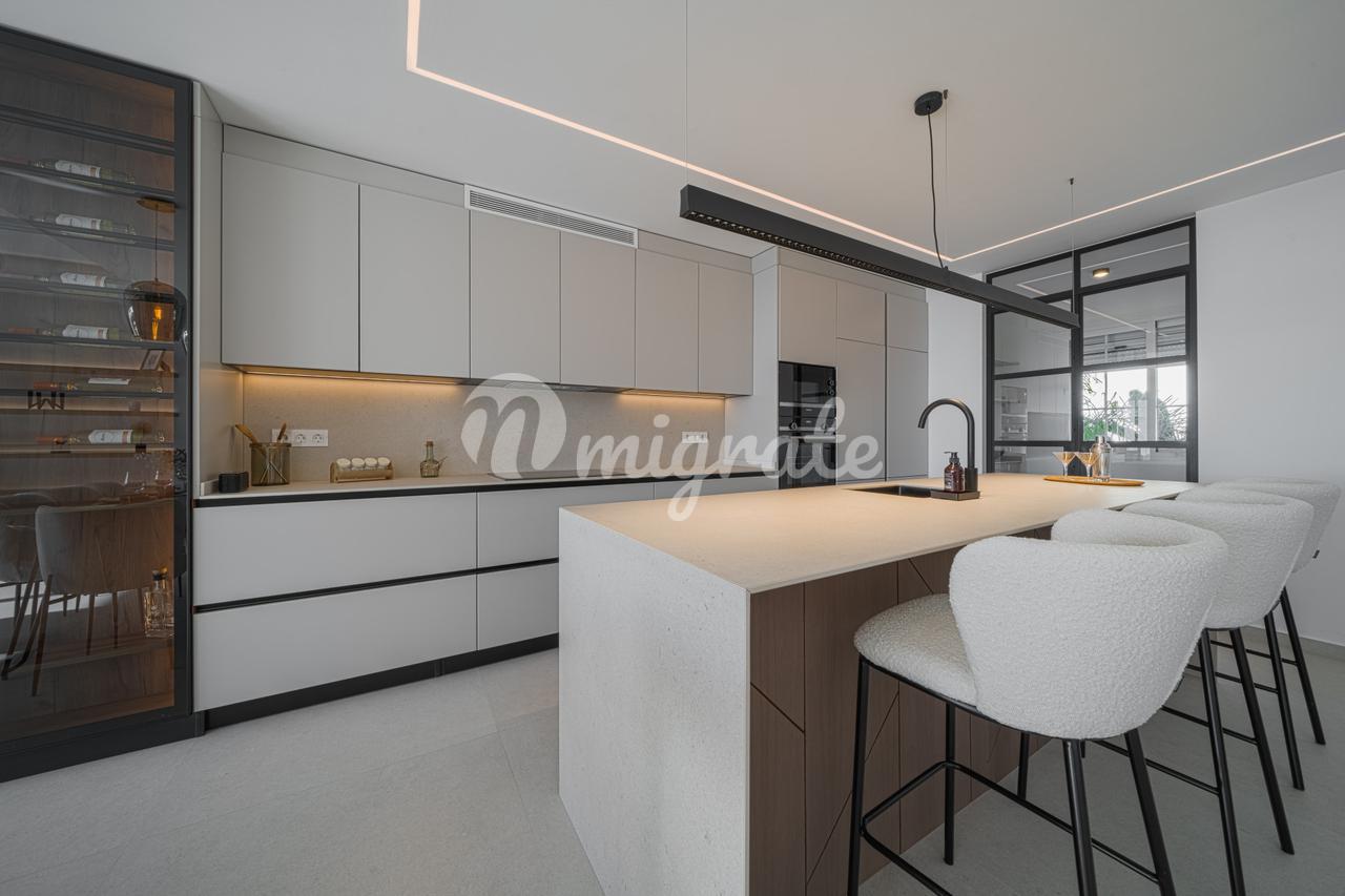 На первом этаже мы находим гостиную с кухней открытой планировки и столовой, все с выходом на террасу с прекрасным видом на море, две спальни и две ванные комнаты завершают распределение этажа.