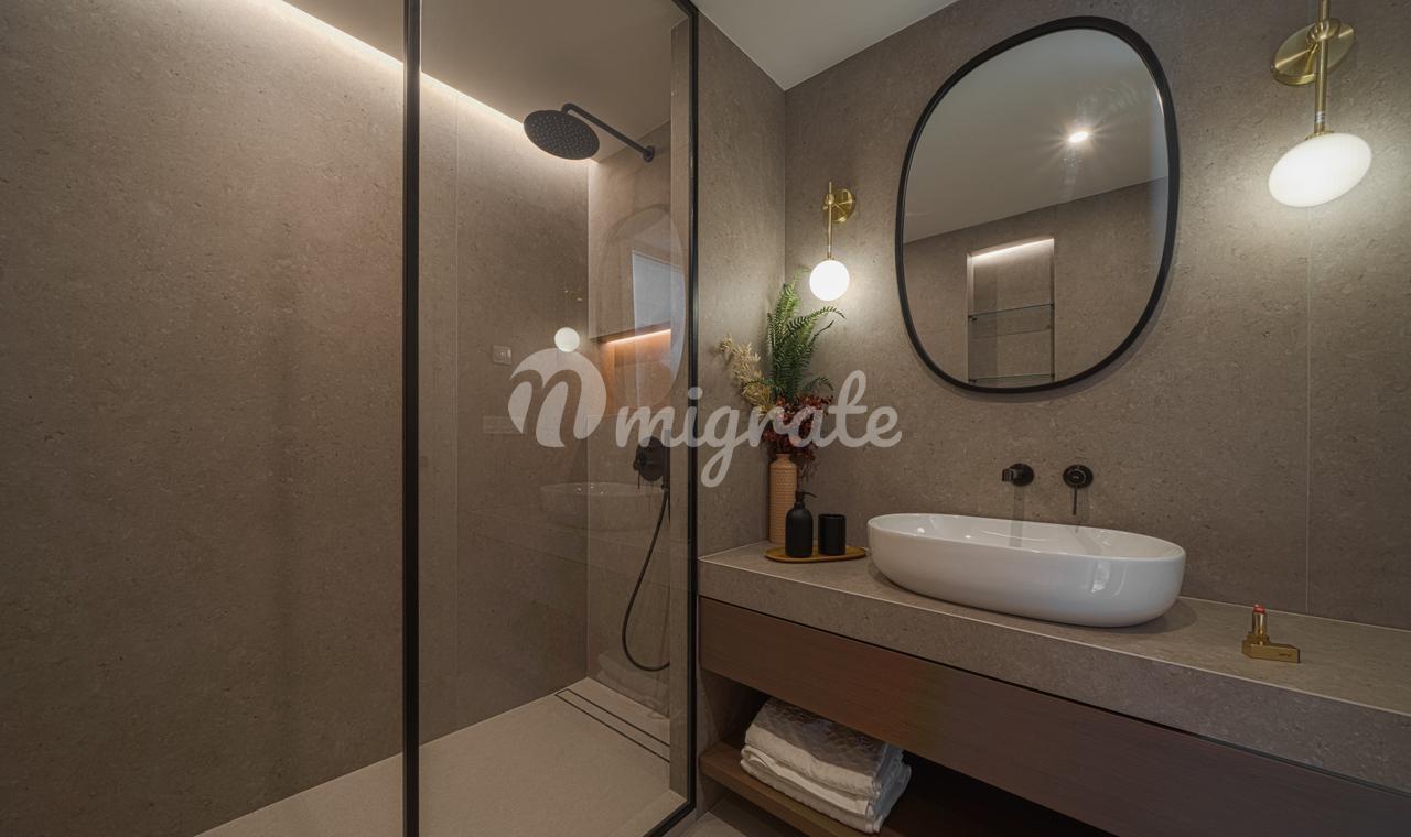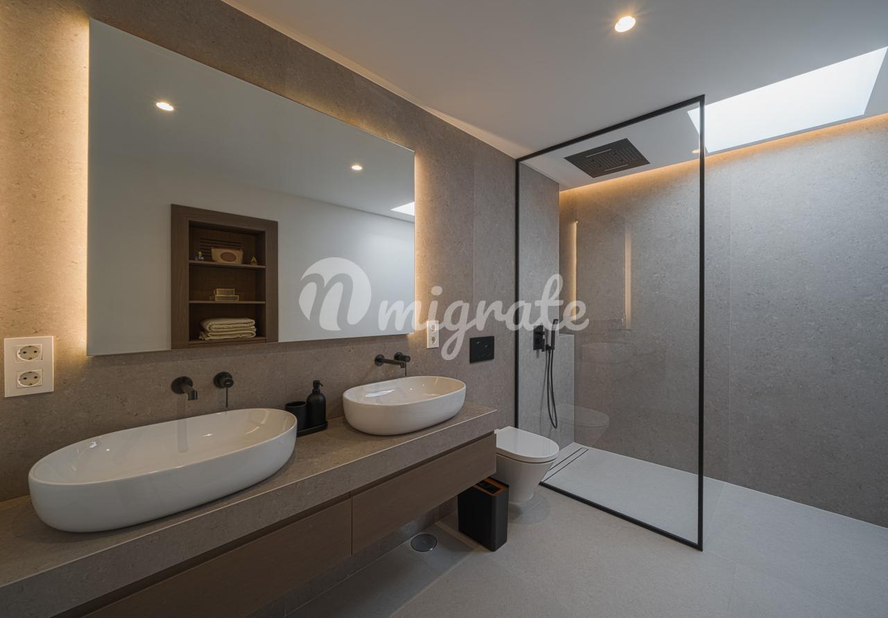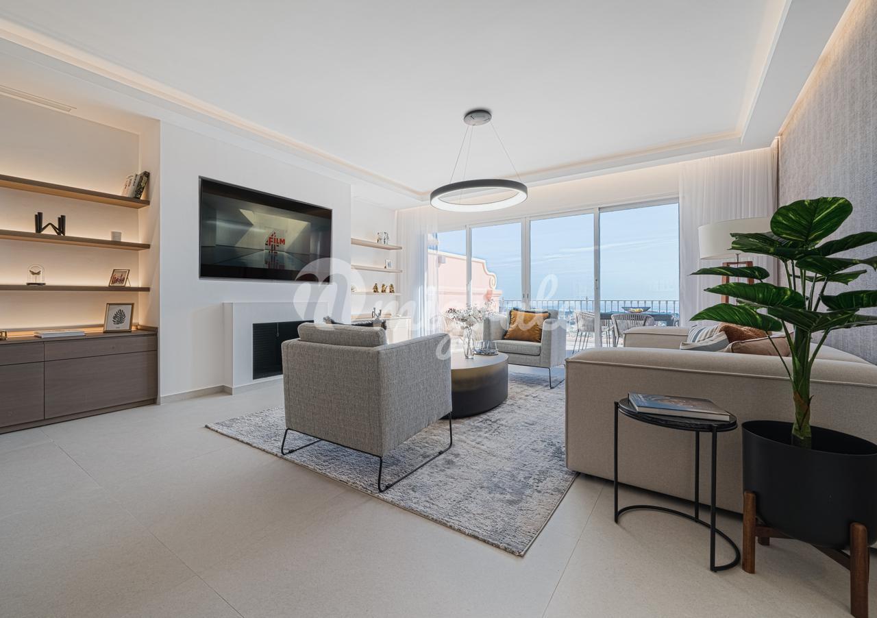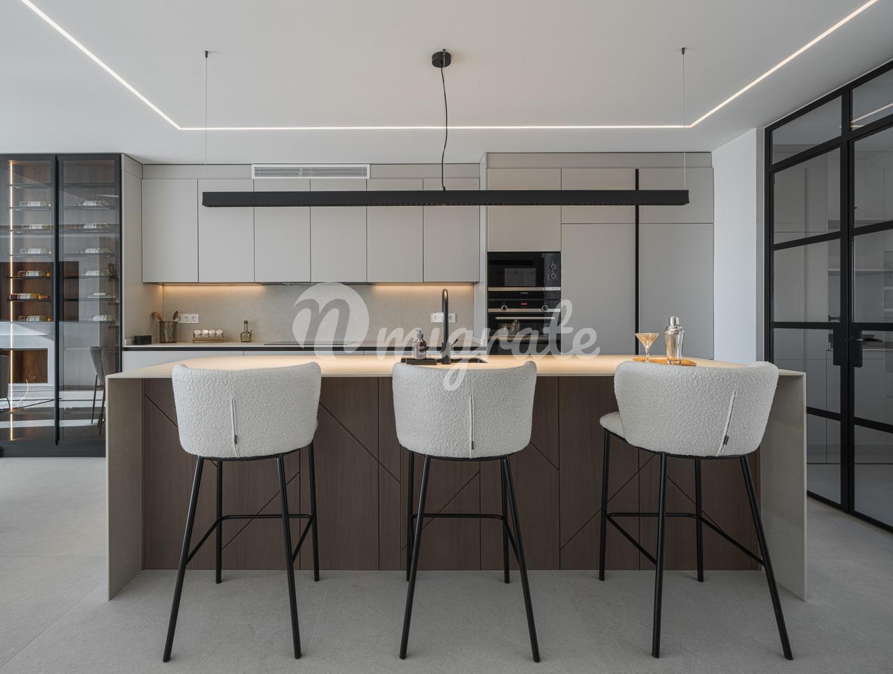На первом этаже мы находим гостиную с кухней открытой планировки и столовой, все с выходом на террасу с прекрасным видом на море, две спальни и две ванные комнаты завершают распределение этажа.