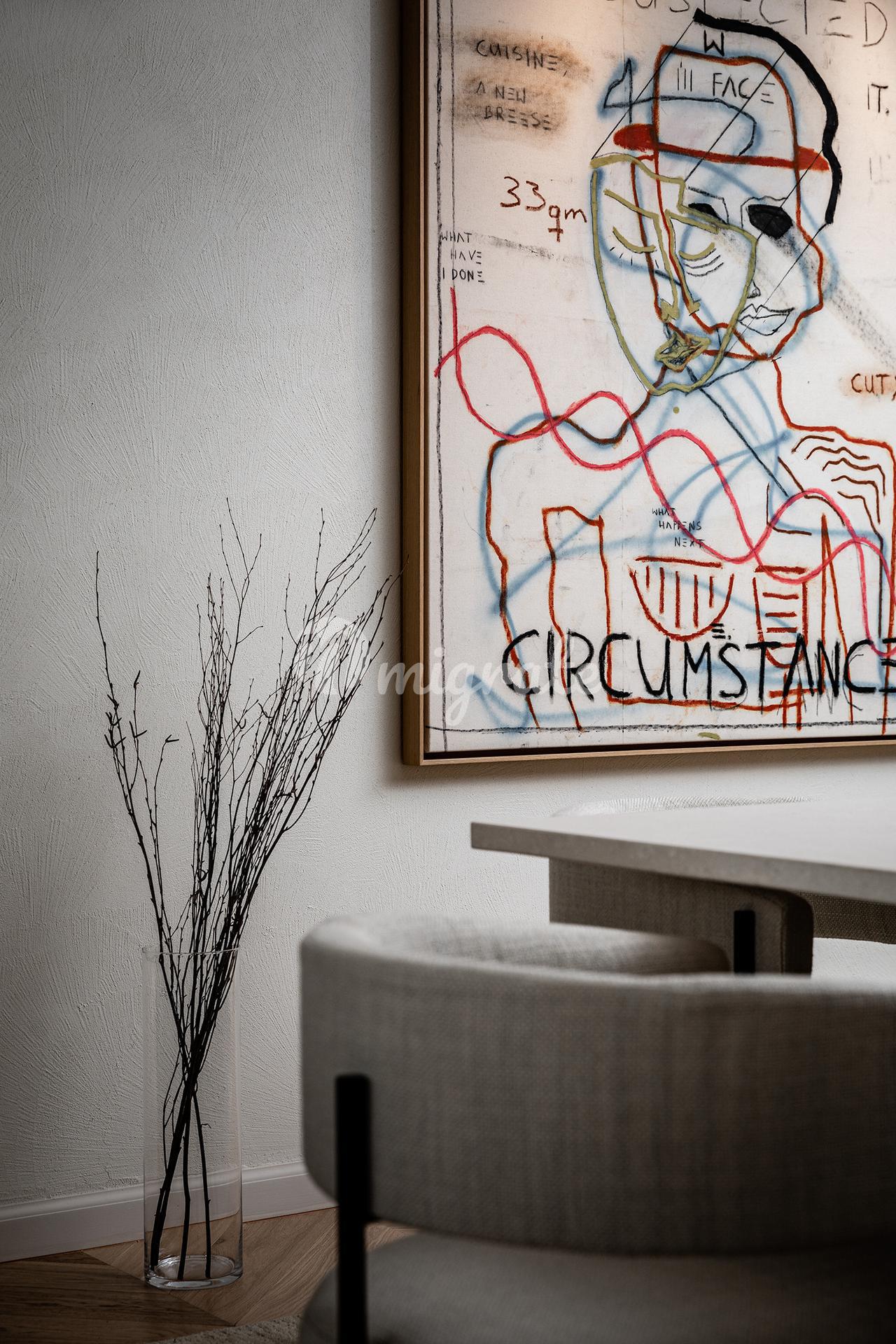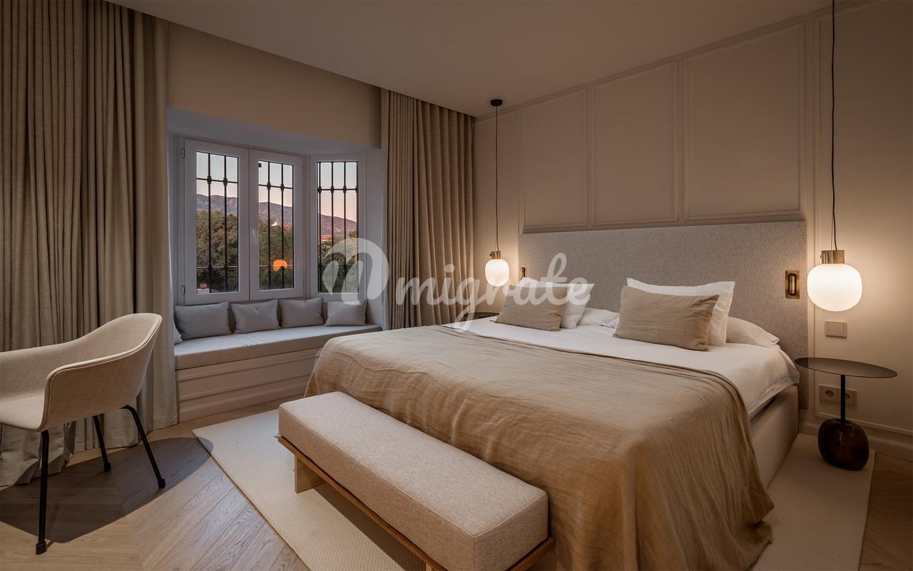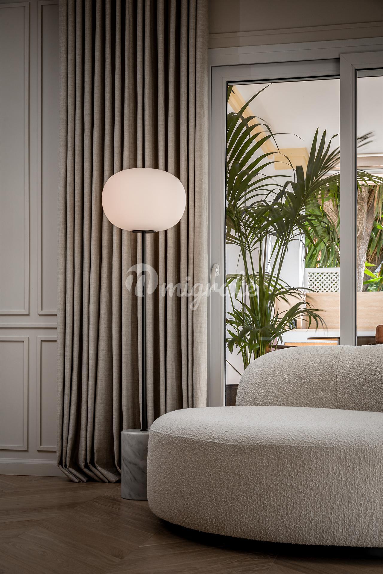 В нем есть четыре просторные спальни с ванными комнатами, отдельная прачечная и кабинет. Гостиная, объединенная со столовой и кухней, имеет площадь около 120 м2, а ее деревянные детали и теплые материалы создают ощущение дома, что делает эту квартиру идеальной для круглогодичного проживания. При ремонте были использованы высококачественные технические характеристики, такие как бытовая техника Miele, полы с подогревом, дубовые полы, система домашней автоматизации, встроенная звуковая система и т.д.