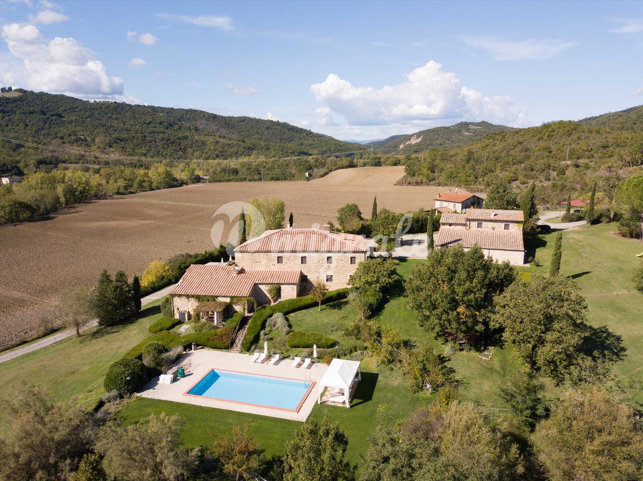 Разрешение на планировку было предоставлено в форме PAPMAA для разделения поместья площадью 1100 га на 6 участков разного размера. Видение состоит в том, чтобы создать шесть новых, красиво обустроенных домов с собственными бассейнами и очень большим участком окружающей земли, что позволит каждому участку спокойствия и полной конфиденциальности погрузиться в сельскую местность Тосканы. Два из этих новых участков будут созданы из уже существующих зданий агротуризма; на каждом участке есть большой недавно отремонтированный фермерский дом с бассейном и собственный участок земли площадью 56 га или 100 га каждый. Остальные четыре новых участка в рамках разрешения на строительство имеют прекрасную возможность построить совершенно новый фермерский дом на каждом участке, площадью примерно от 500 до 1300 кв. В настоящее время поместье включает в себя большую семейную виллу с бассейном и очень большую пристройку, образующую великолепный внутренний двор в форме буквы L, который идеально расположен на окраине деревни Монтегиди. Одна сторона виллы имеет необычный и интимный выход на старинную деревенскую улицу Монтегиди. Один из них ведет на другую, очень уединенную сторону виллы, по крутой дороге, окруженной красивыми и ухоженными зрелыми садами, в самое сердце семейного поместья. Эта сторона собственности из дома и сада имеет великолепный вид на бескрайние просторы тосканских холмов внизу и за его пределами.