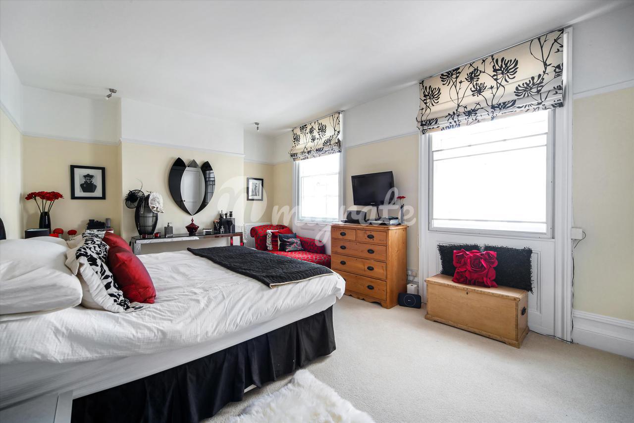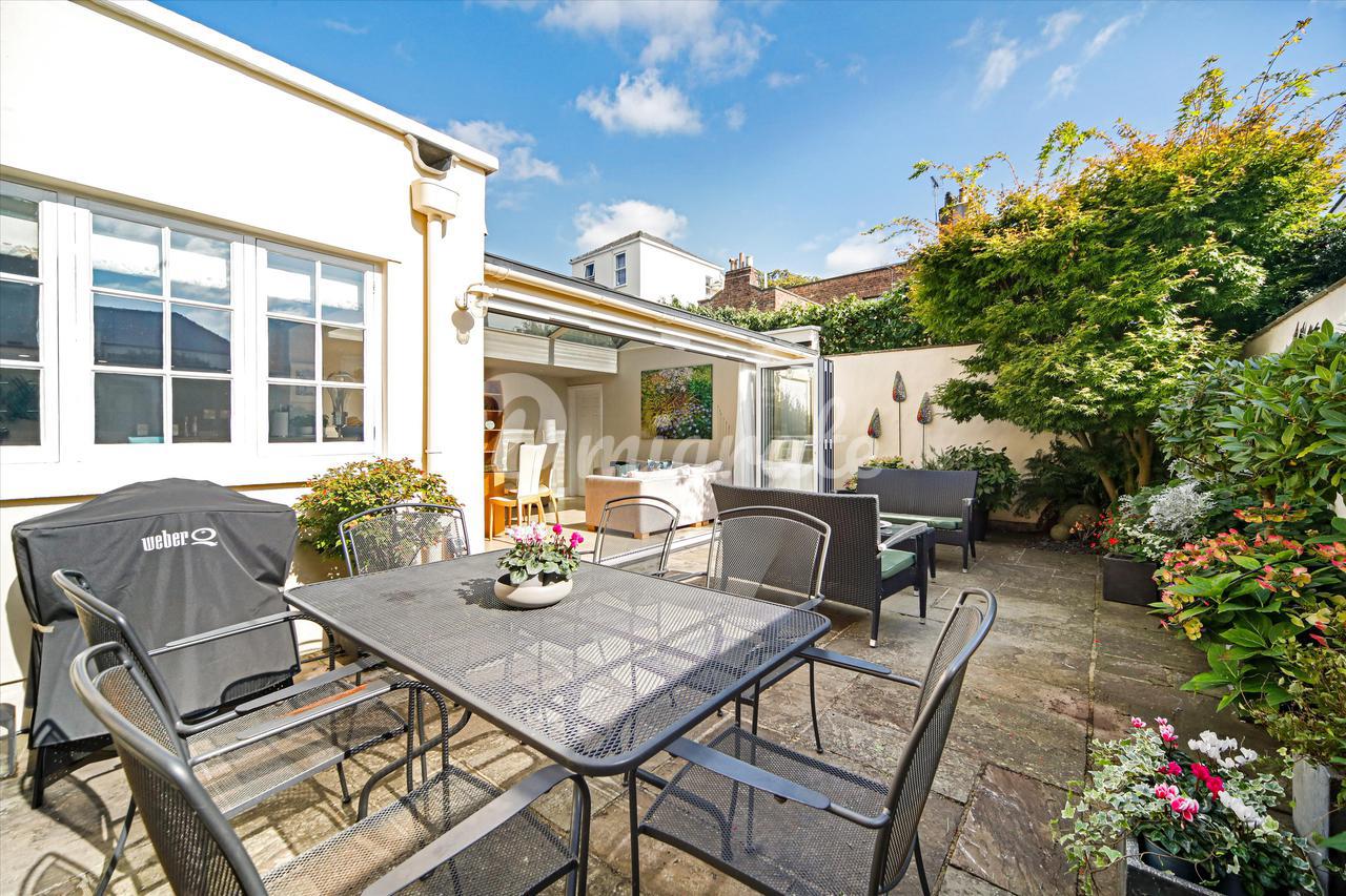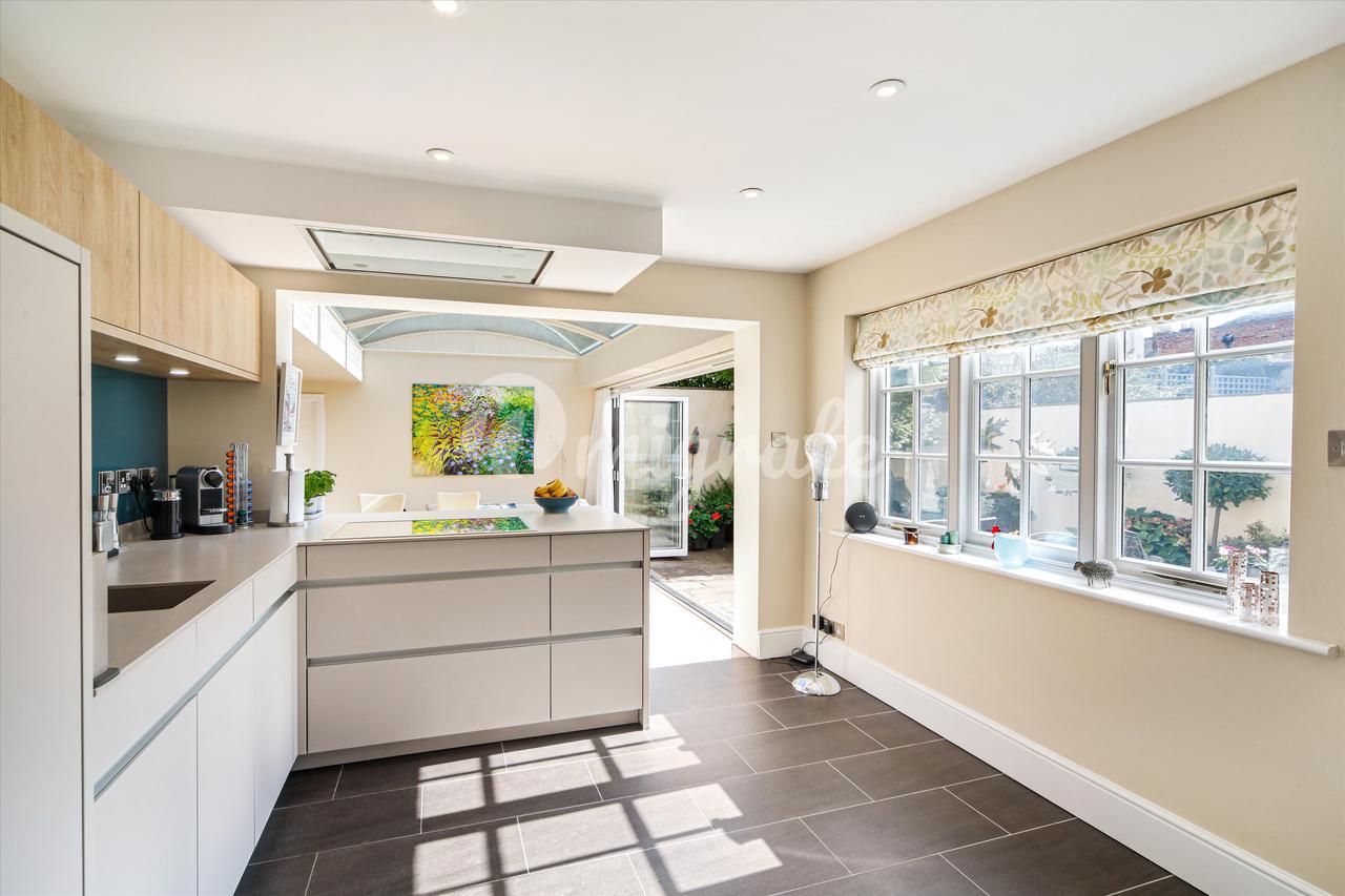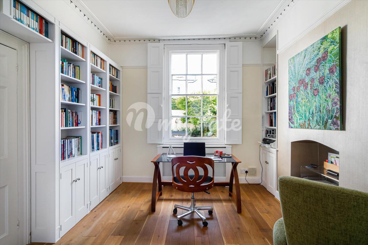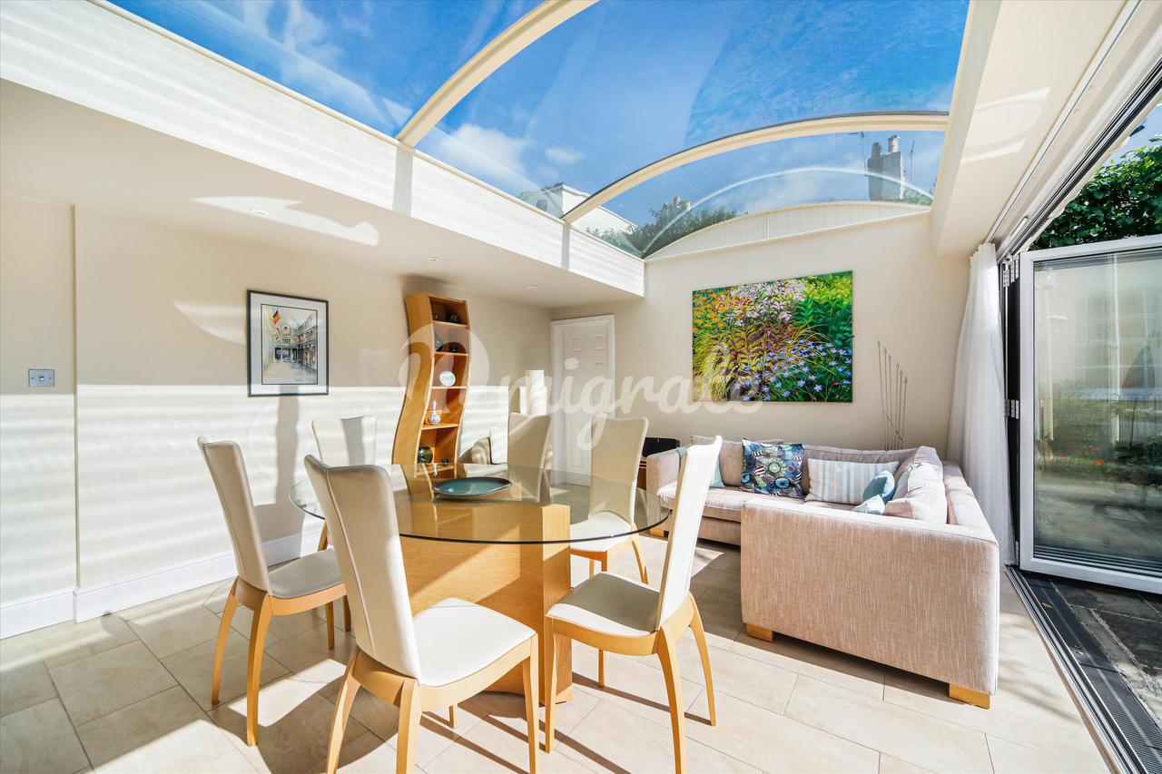 На первом этаже находится двойная гостиная со старинными каминами в передней части дома, а в центре дома находится кухня с современными шкафами без ручек, встроенной бытовой техникой Gaggenau и столешницами из материала Silstone. Кухня выходит прямо в впечатляющую столовую с полностью застекленной арочной крышей и двустворчатыми дверями, выходящими в сад. На цокольном этаже находится еще одна приемная, спальня с двуспальной кроватью, душевая и кухня-столовая. В дополнение к внутренней лестнице есть независимый доступ с передней части дома, что позволяет при необходимости использовать нижний этаж. На первом этаже есть три спальни, все со встроенными шкафами, одна с душевой комнатой и еще одна семейная ванная комната с ванной и отдельным душем.