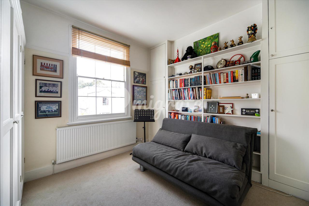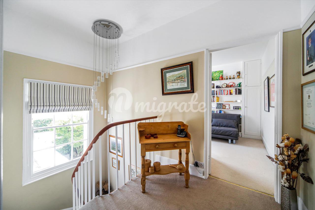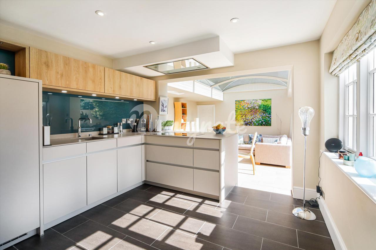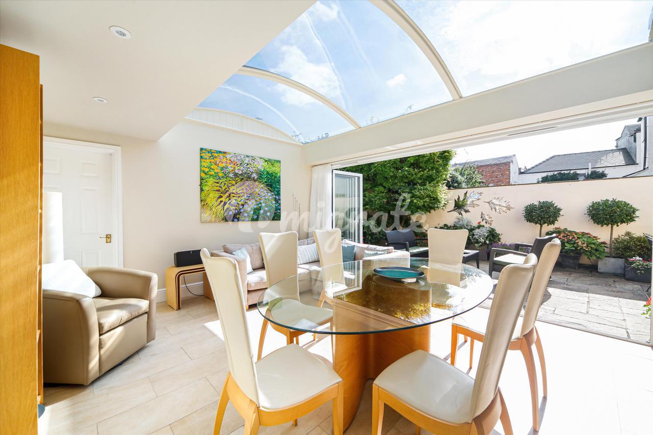 На первом этаже находится двойная гостиная со старинными каминами в передней части дома, а в центре дома находится кухня с современными шкафами без ручек, встроенной бытовой техникой Gaggenau и столешницами из материала Silstone. Кухня выходит прямо в впечатляющую столовую с полностью застекленной арочной крышей и двустворчатыми дверями, выходящими в сад. На цокольном этаже находится еще одна приемная, спальня с двуспальной кроватью, душевая и кухня-столовая. В дополнение к внутренней лестнице есть независимый доступ с передней части дома, что позволяет при необходимости использовать нижний этаж. На первом этаже есть три спальни, все со встроенными шкафами, одна с душевой комнатой и еще одна семейная ванная комната с ванной и отдельным душем.