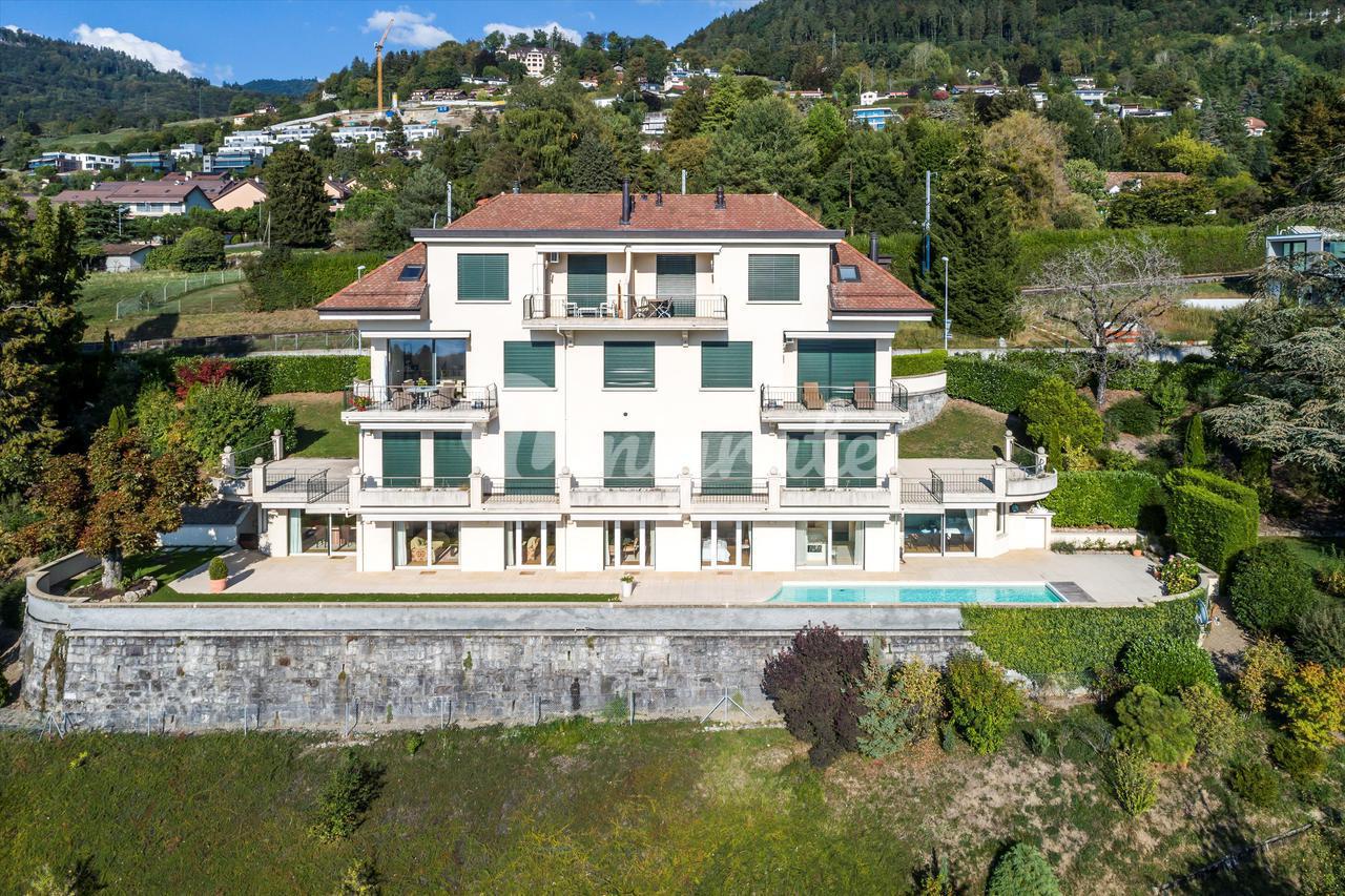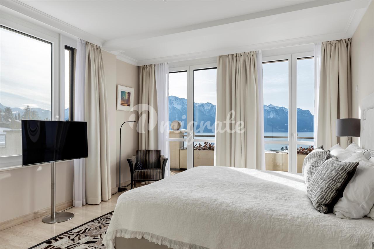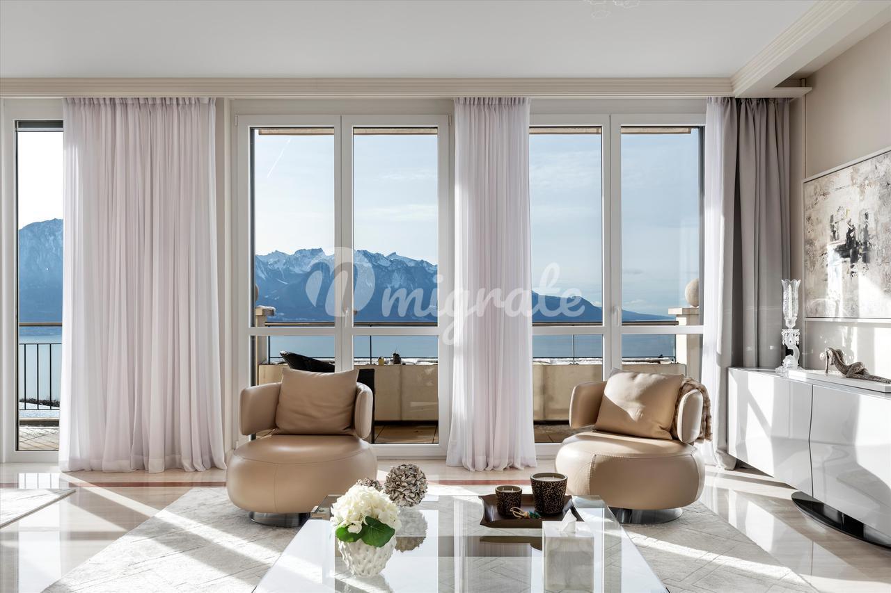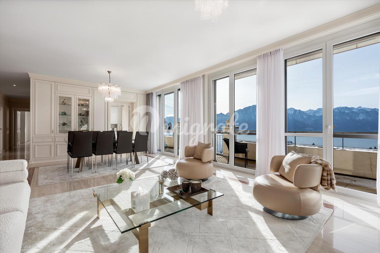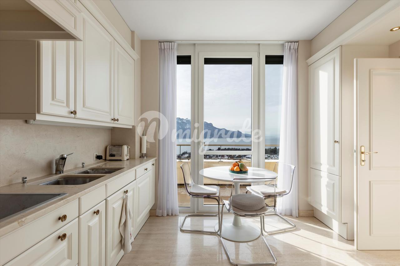 Эта превосходная квартира площадью 200 кв.м расположена на высотах Монтре с захватывающим видом на озеро и горы за его пределами.