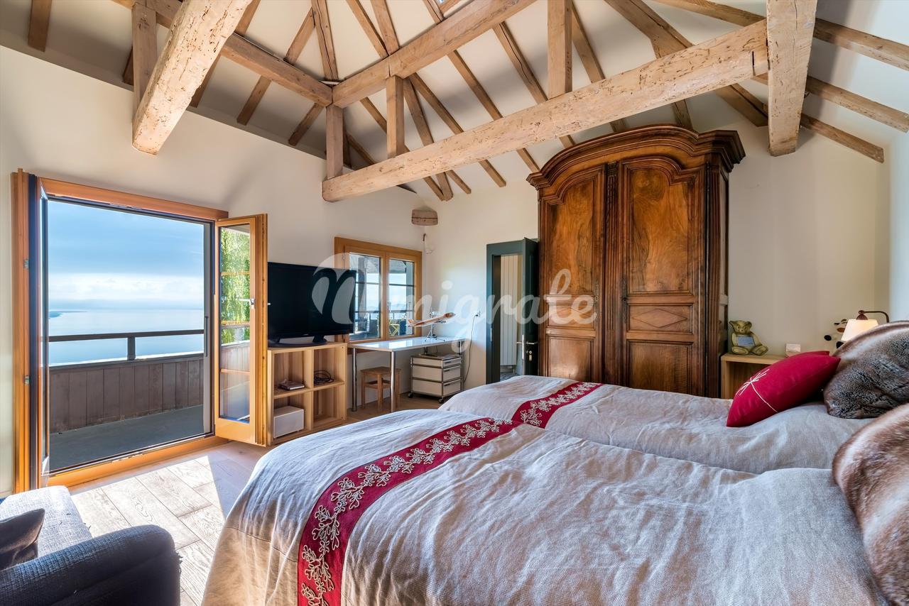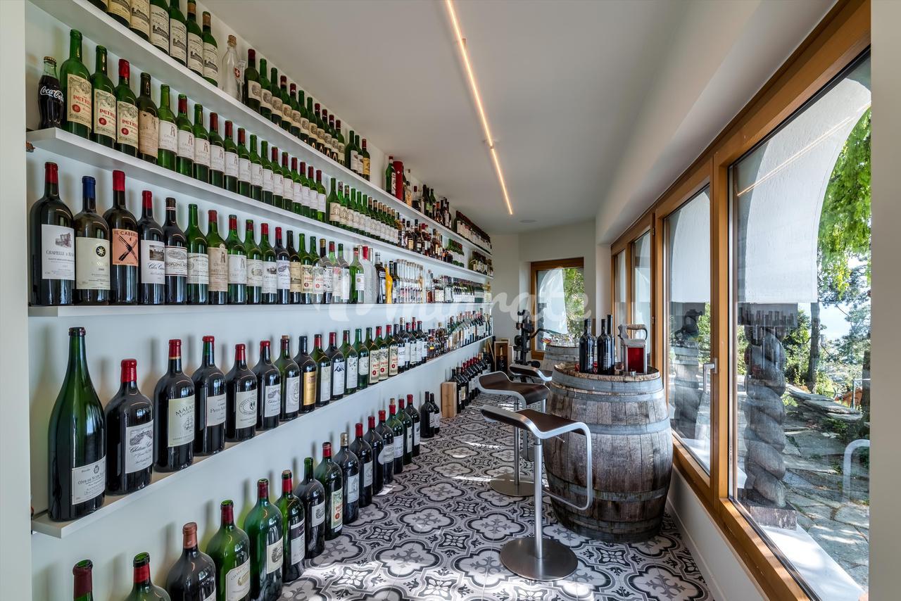 Собственность построена на трех уровнях плюс два уровня сада и имеет частный и уединенный доступ. Он имеет великолепную шиферную крышу и открывает невероятный вид на озеро и горы за его пределами. Дом предлагает просторные светлые жилые помещения с 5-10 спальнями, 7 ванными комнатами и 3 гостиными с круглым балконом и террасой. Также есть сад, погреб и навес на 4-5 автомобилей.