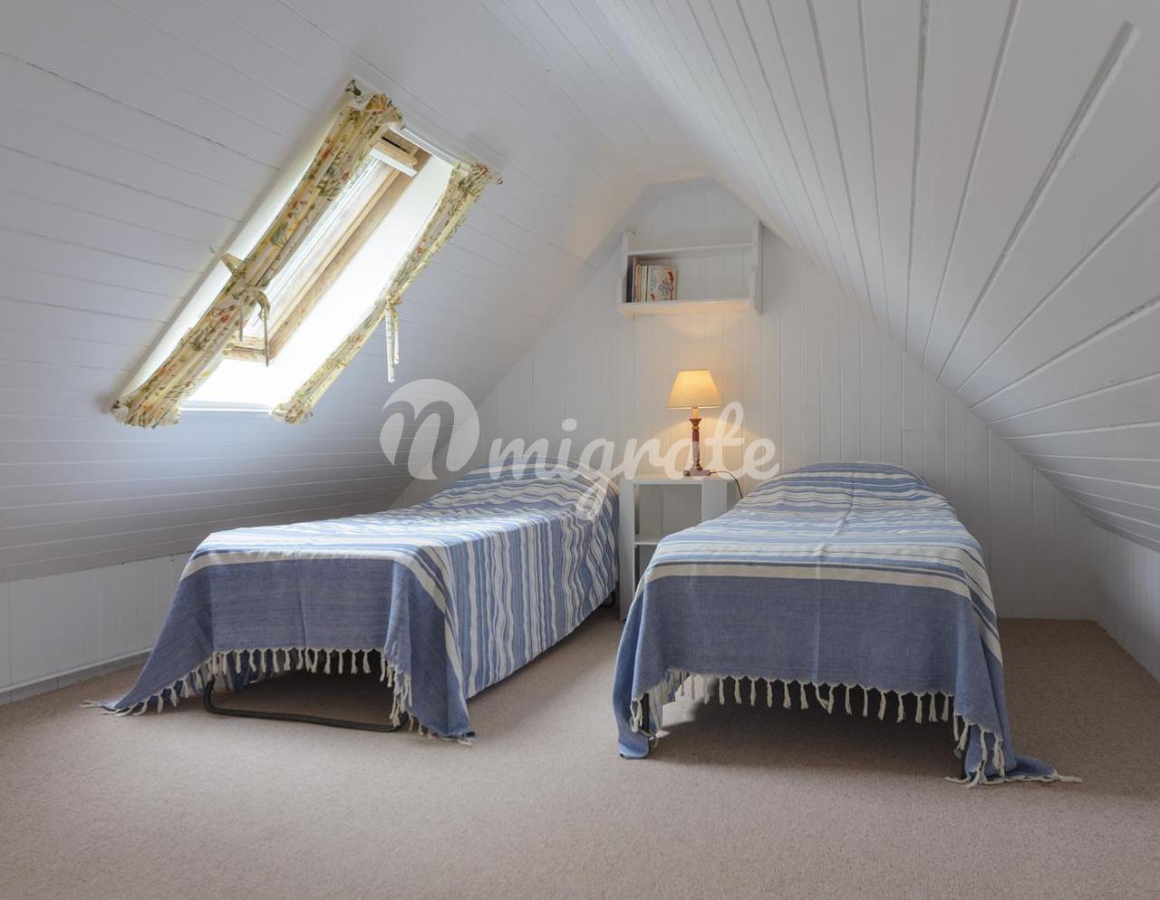 Первый этаж: две спальни с двуспальными кроватями в мансарде.