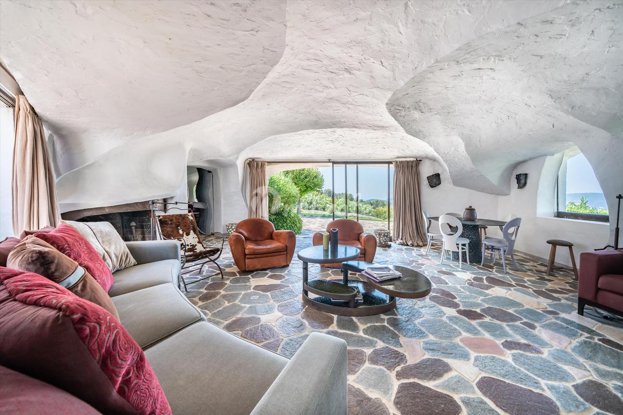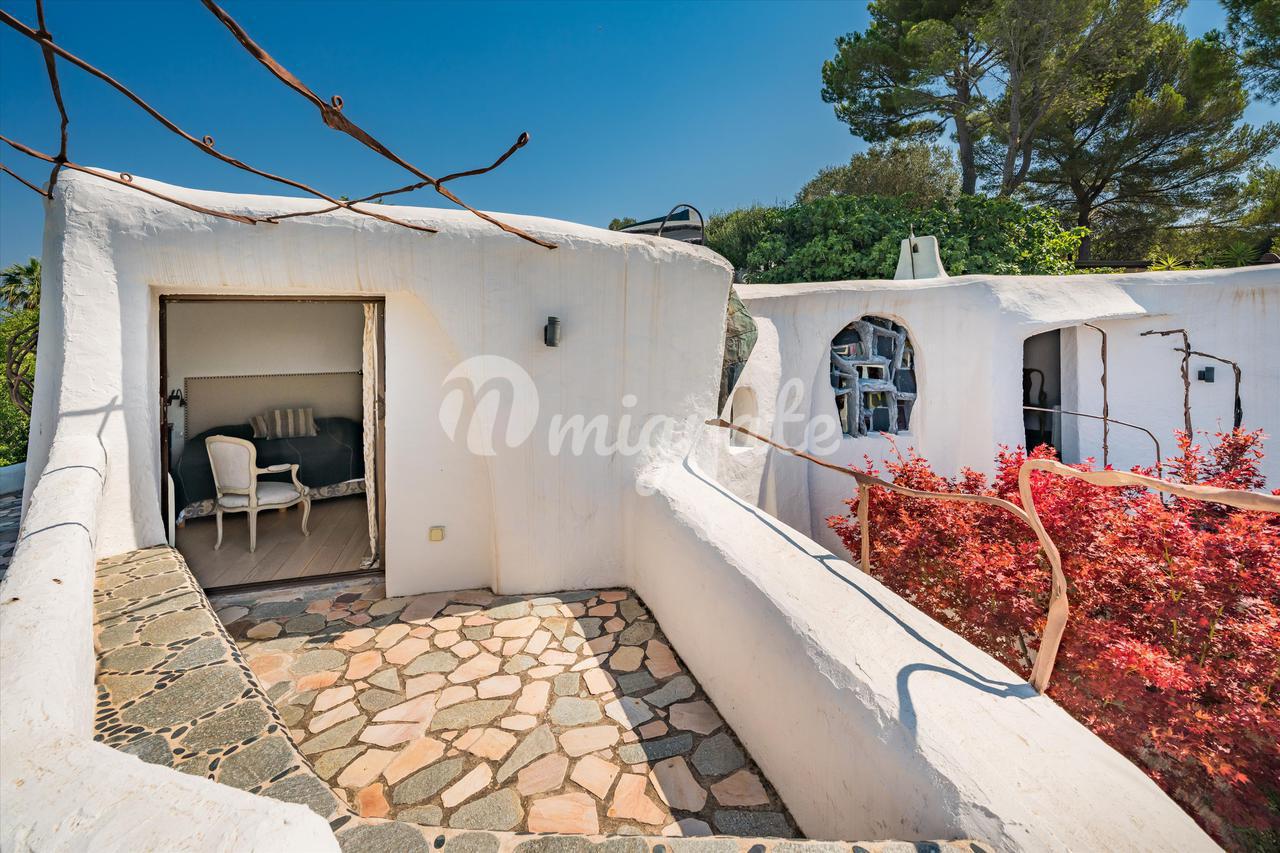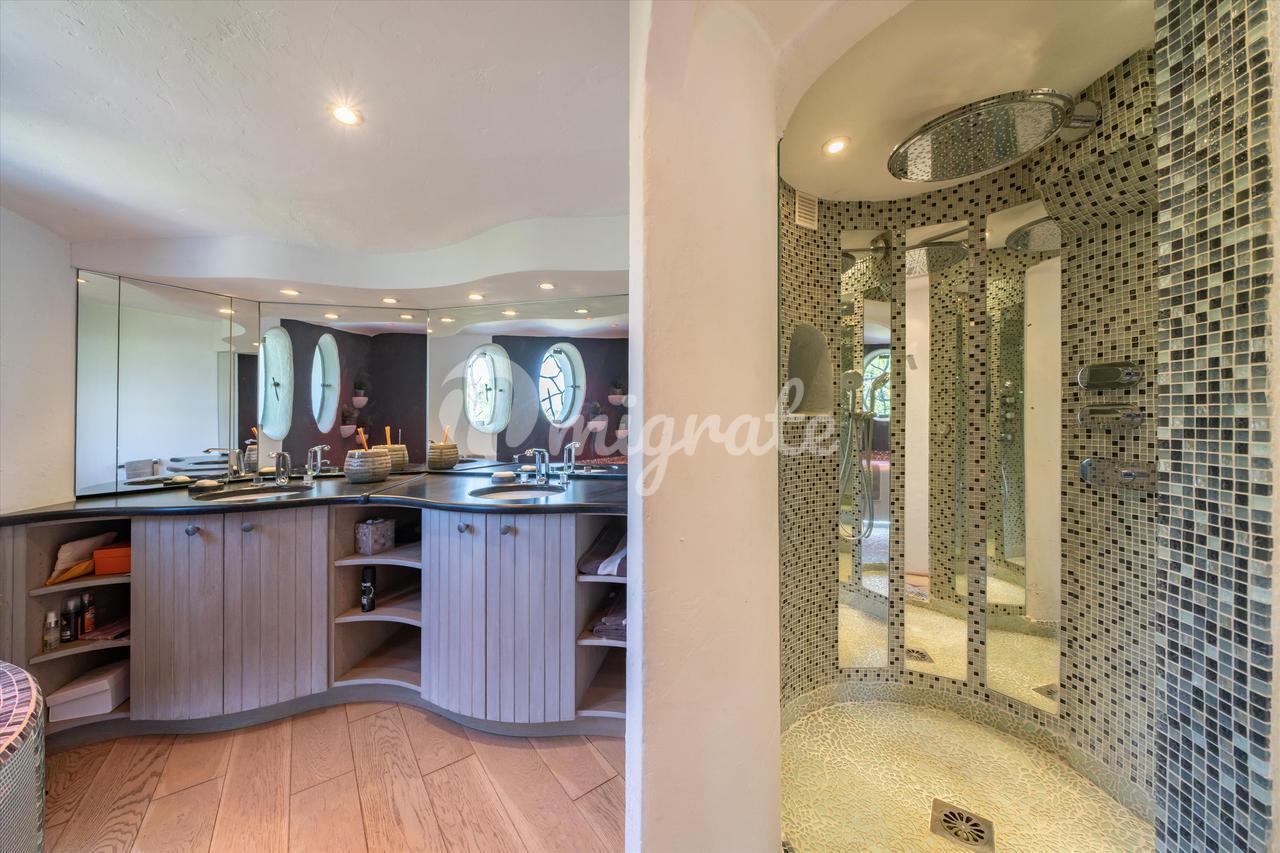 Предлагая жилую площадь около 269 кв.м на ландшафтном участке площадью около 0,5 га, это великолепное сочетание изогнутых линий, необработанного камня, мрамора и натуральных материалов, кованого железа и витражных окон, залитых естественным светом, предлагает на первом этаже светлую гостиную, кухню, читальный зал или телевизор. комната. В доме есть три спальни с собственными ванными комнатами и подсобное помещение. На втором этаже находятся 2 спальни, каждая со своей ванной комнатой, и выход на террасу на крыше с захватывающим видом. Открытые пространства включают многочисленные террасы и жилые помещения различной формы с видом на бассейн и большой парк на востоке, откуда открывается панорамный вид на море.