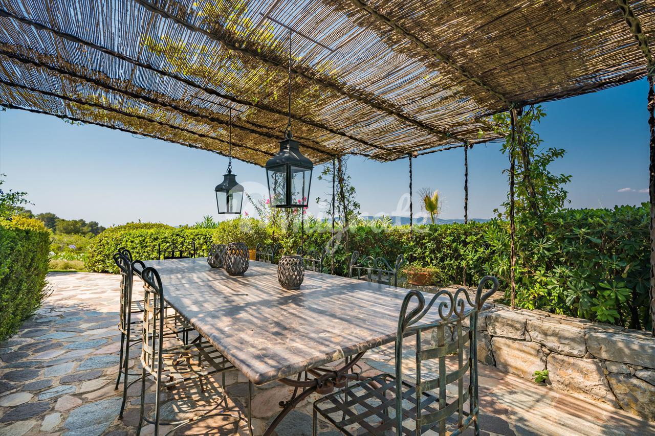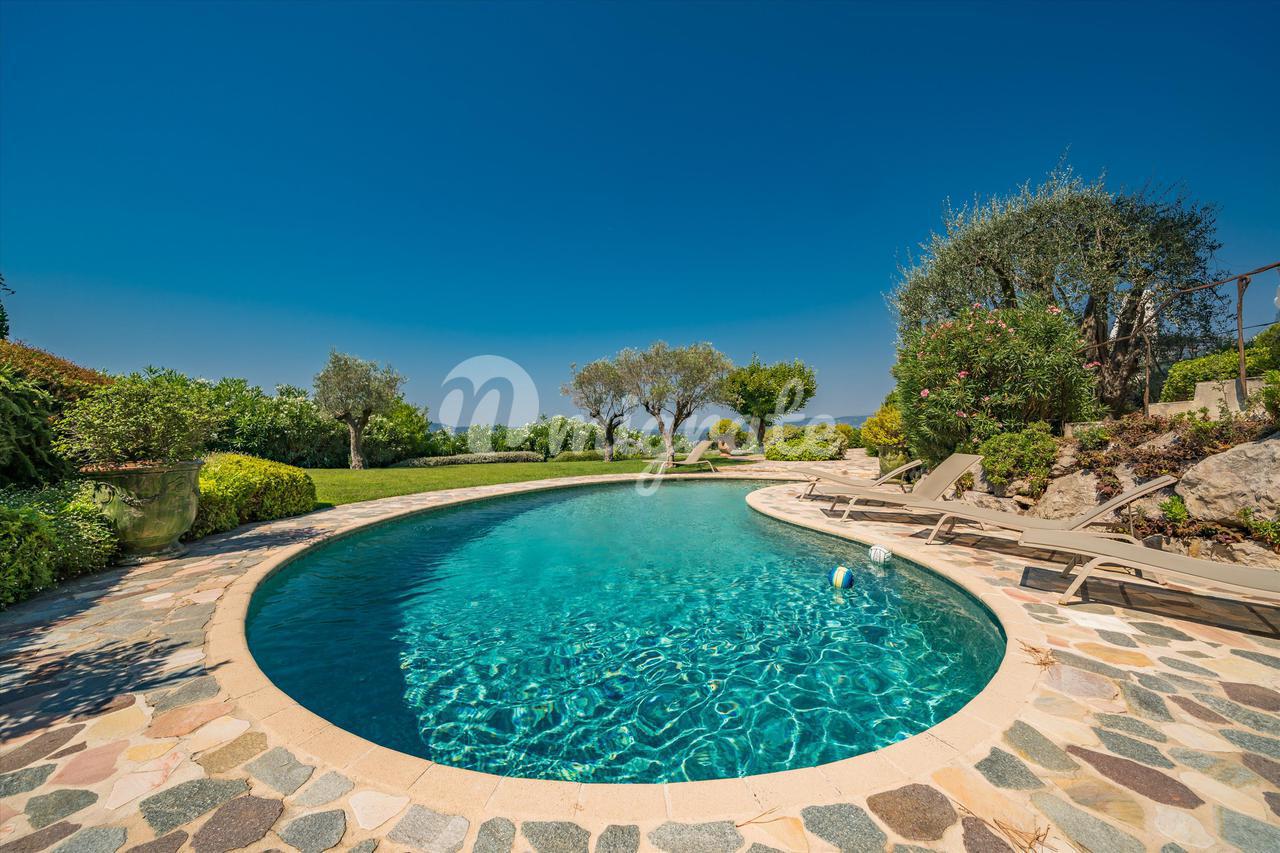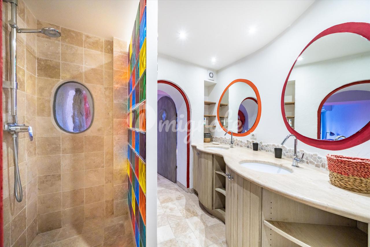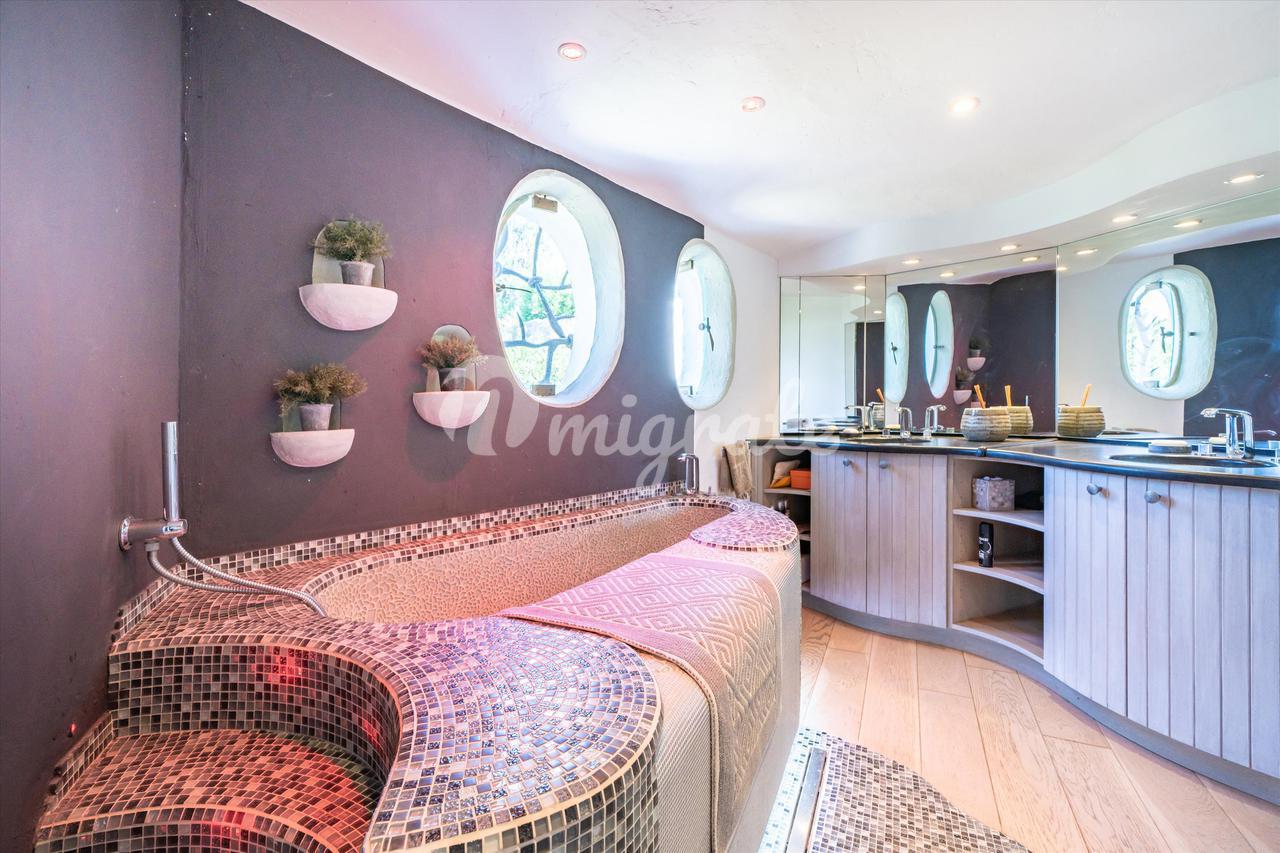 Предлагая жилую площадь около 269 кв.м на ландшафтном участке площадью около 0,5 га, это великолепное сочетание изогнутых линий, необработанного камня, мрамора и натуральных материалов, кованого железа и витражных окон, залитых естественным светом, предлагает на первом этаже светлую гостиную, кухню, читальный зал или телевизор. комната. В доме есть три спальни с собственными ванными комнатами и подсобное помещение. На втором этаже находятся 2 спальни, каждая со своей ванной комнатой, и выход на террасу на крыше с захватывающим видом. Открытые пространства включают многочисленные террасы и жилые помещения различной формы с видом на бассейн и большой парк на востоке, откуда открывается панорамный вид на море.