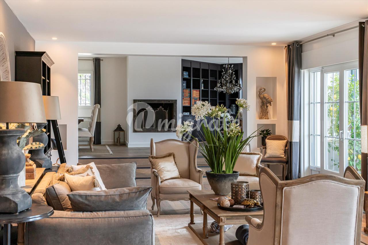 Жилые помещения этой виллы включают прихожую, просторную гостиную, библиотеку с камином и обеденной зоной, полностью оборудованную современную кухню, игровую комнату, винный погреб, семь спален и четыре ванные комнаты. Большой тренажерный зал, кладовые и отдельная квартира с одной спальней, кухней и гостиной с камином.