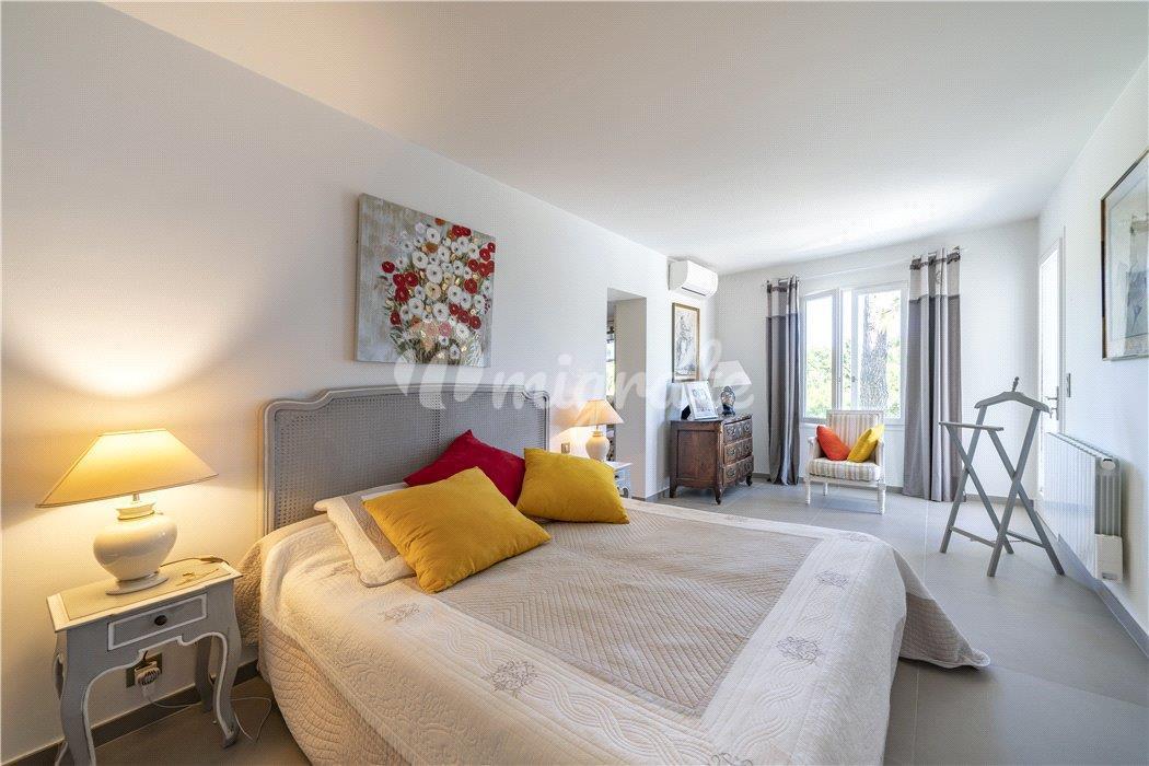 Эта светлая полностью отремонтированная вилла идеально расположена в тихом жилом районе, откуда открывается прекрасный открытый вид на старую деревню Мужен. Вилла расположена в ландшафтном саду с бассейном, множеством фруктовых деревьев и средиземноморских растений. Жилые помещения этой виллы включают просторную гостиную, столовую, полностью оборудованную кухню открытой планировки, главную спальню, еще 3 спальни, 2 душевые комнаты и кабинет. Открытая парковка и гараж. EPC: ожидается