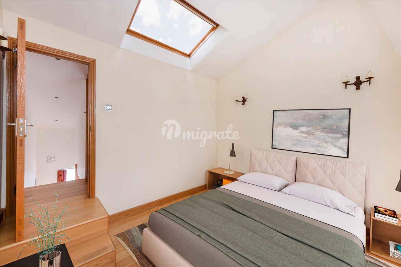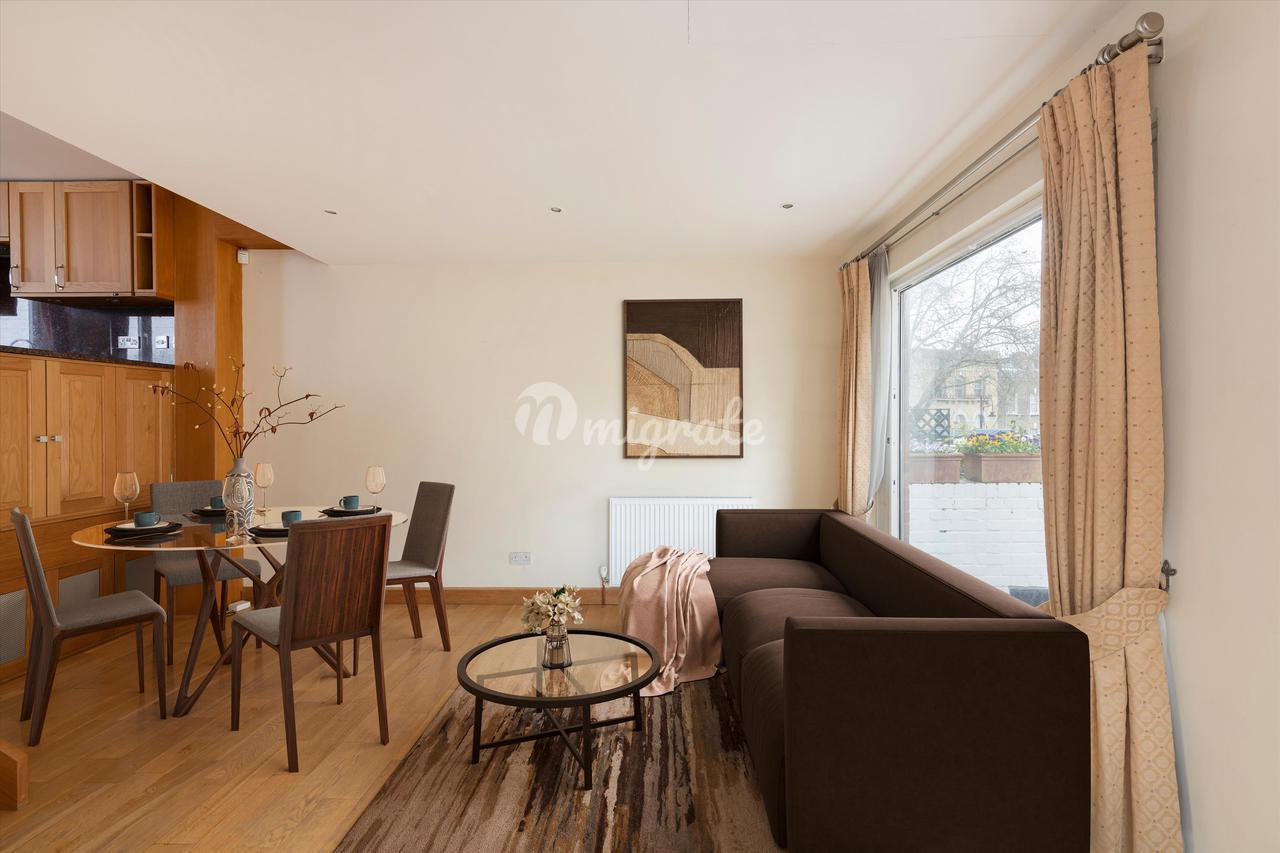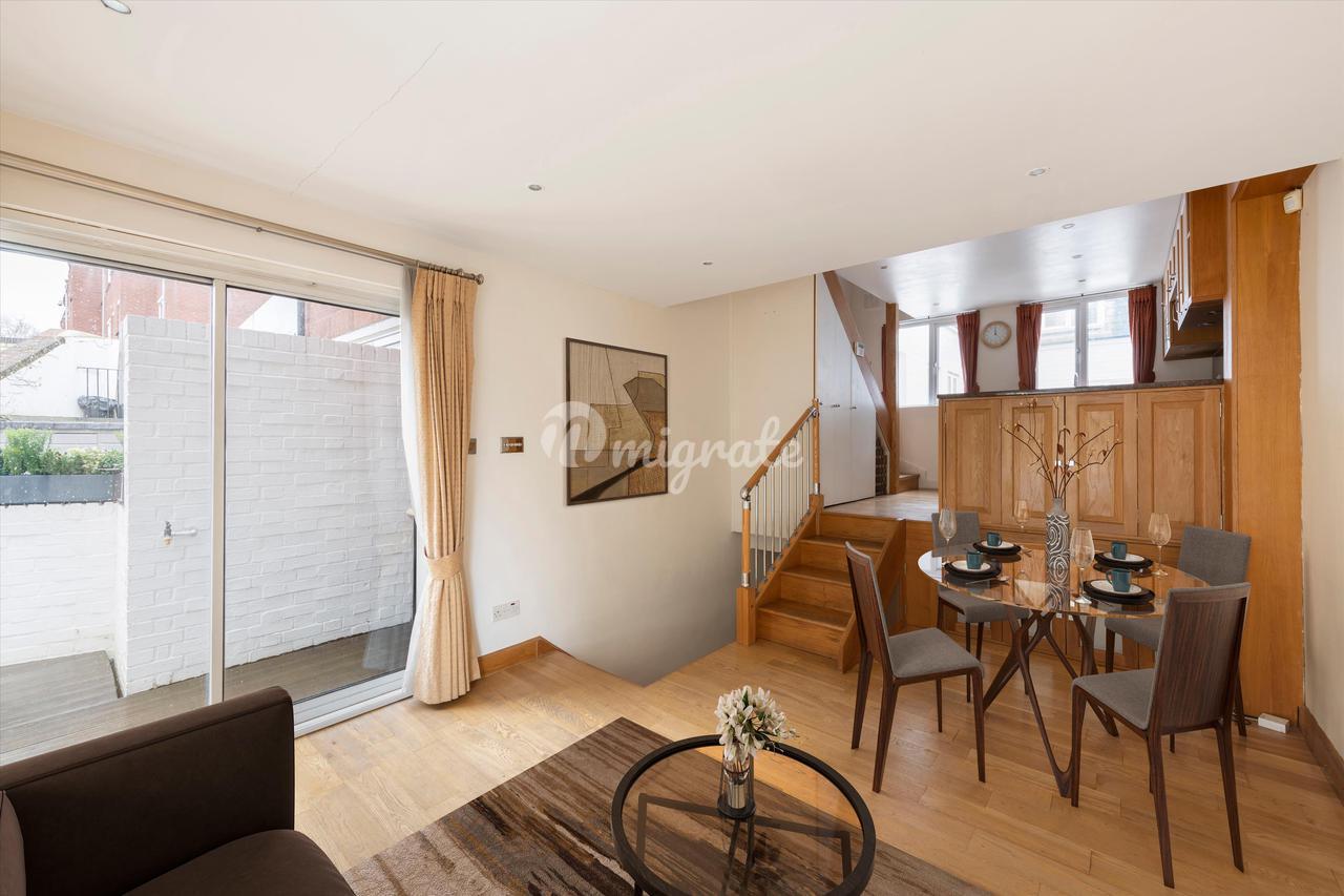 В доме, занимающем три этажа, есть спальня с двуспальной кроватью, ванная комната, хорошо оборудованная кухня с видом на светлую двухуровневую приемную, терраса с настилом на южной стороне и просторный гараж. Гараж, который соединяется внутри с остальной частью дома, обеспечивает безопасную и гарантированную парковку, что делает его идеальным для любителей классических автомобилей или тех, кто ищет уединенное место недалеко от станций метро Hampstead и надземных станций. Гараж, достаточно большой, чтобы вместить два автомобиля поменьше или один автомобиль побольше с запасом места, также можно использовать для хранения горных велосипедов для прогулок по близлежащей Хэмпстед-Хит или для создания домашней мастерской или тренажерного зала.