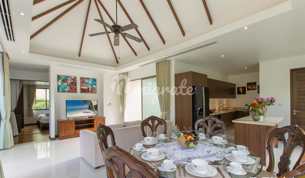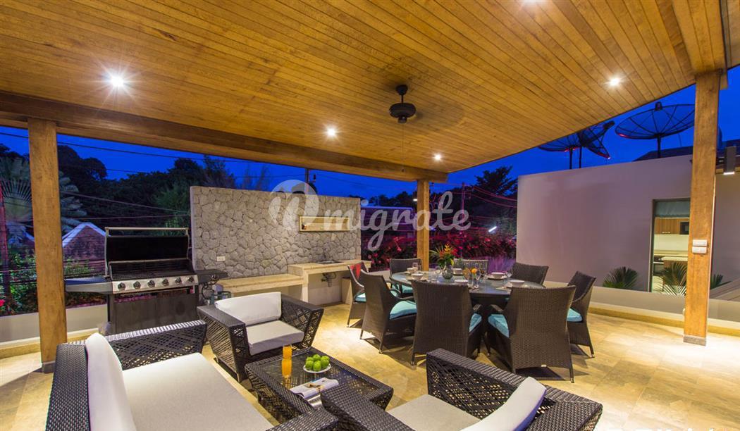 Три элегантные виллы с 3 спальнями и общей зоной построены вокруг бассейна 6х14 метров со встроенным джакузи. Обеденная зона на открытом воздухе под Салой с газовым барбекю идеально подходит для трапезы на свежем воздухе. Роскошные виллы со вкусом обставлены высококачественной деревянной мебелью. Полностью оборудованная европейская кухня, гостиная с обеденной зоной, две спальни с кроватью размера "king-size" и спальня с двумя односпальными кроватями с ванными комнатами.