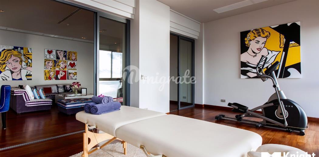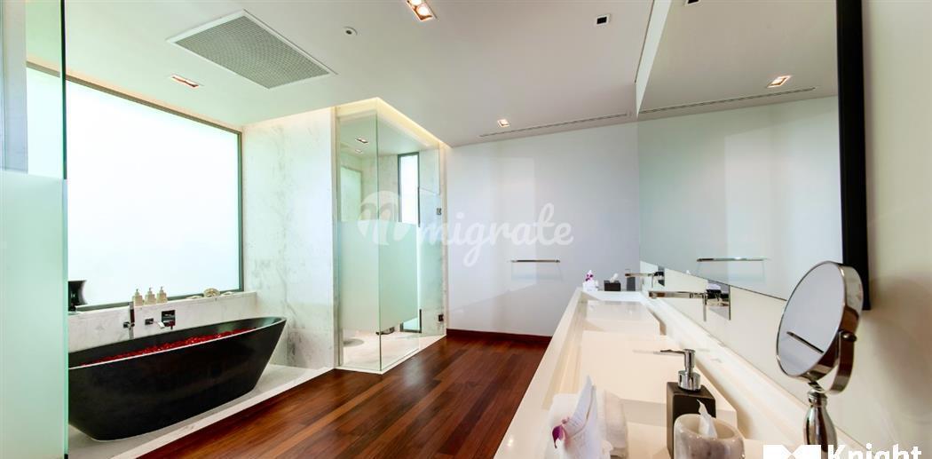 - Общая площадь земельного участка: 1 465 кв.м. - Общая площадь виллы: 1225 кв.м. - Крытая площадь: 730 кв.м. - Открытая площадь: 495 кв.м. - Всего 5 спален с ванными комнатами - 1 роскошная главная спальня (двуспальная кровать) - 4 роскошные гостевые спальни (2 большие двуспальные кровати + 2 двуспальные кровати) - Пейзажный бассейн (длина 17 м, ширина 4 м, глубина 1,5 м) - Медиа/игровая комната со столом для маджонга и др. - Фитнес и спа-зал - Просторная гостиная - Полностью оборудованная американская кухня - Гараж на две машины - Закрытый поселок с круглосуточной охраной