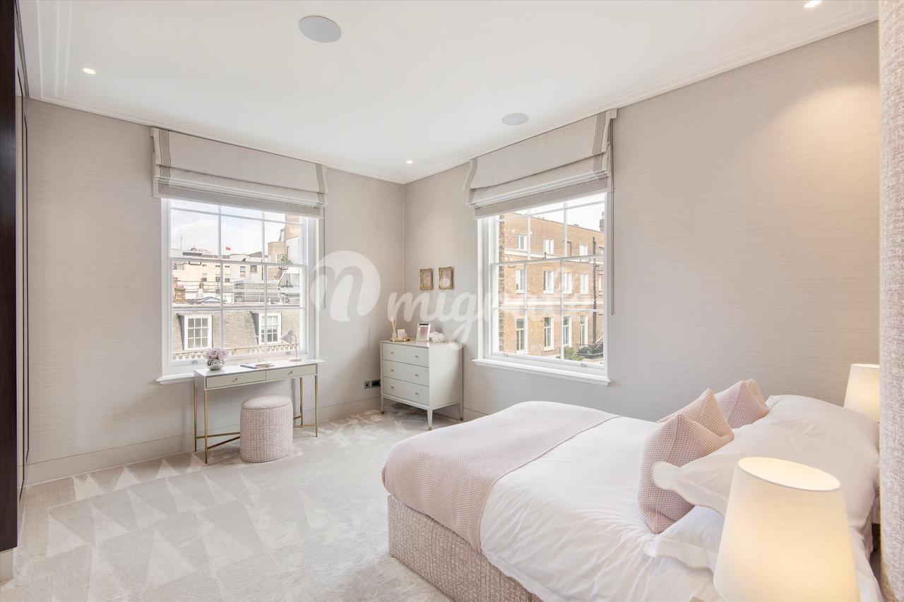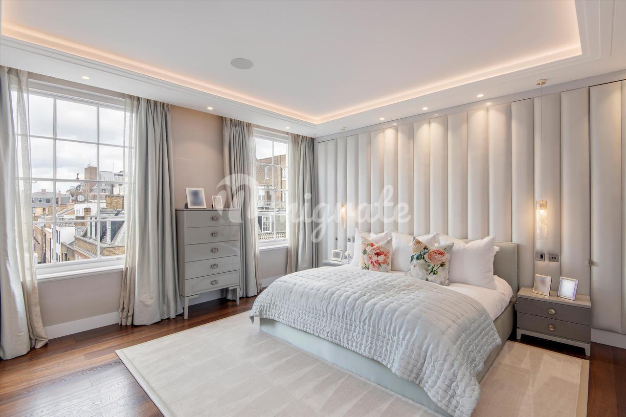Это уникальная возможность приобрести недавно отремонтированную трехкомнатную квартиру, предлагающую просторную жилую площадь по всему второму этажу впечатляющего здания Роберта Адама, внесенного в список II класса, на углу Мэнсфилд-стрит, одной из самых престижных улиц Мэрилебона. Этот великолепный дом расположен на втором этаже и предлагает отличную планировку и обилие жилых и развлекательных помещений площадью более 2700 кв. футов. Он был отделан по самым высоким стандартам, включая столярные изделия из шпона дерева, изготовленные на заказ лучшими краснодеревщиками, кондиционер, полы с подогревом, освещение Lutron и аудиовизуальную систему по всей квартире. Он демонстрирует просторную приемную и современную кухню на заказ с деревянными полами, мраморной столешницей ручной работы и бытовой техникой Miele с обеденной зоной. В роскошной главной спальне есть гардеробная, собственная ванная комната с душем, отдельно стоящей ванной и раковиной для него и для нее. Есть еще три спальни, две со смежными ванными комнатами, дополнительная душевая комната и гостевой туалет. На нижнем цокольном этаже есть дополнительная кладовая.