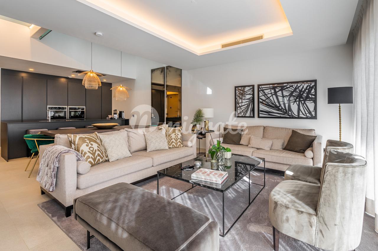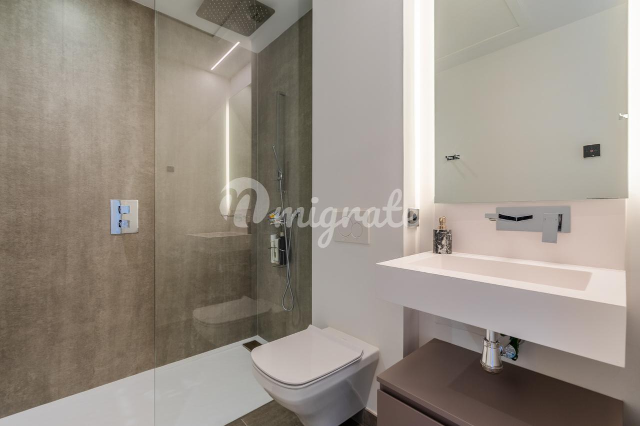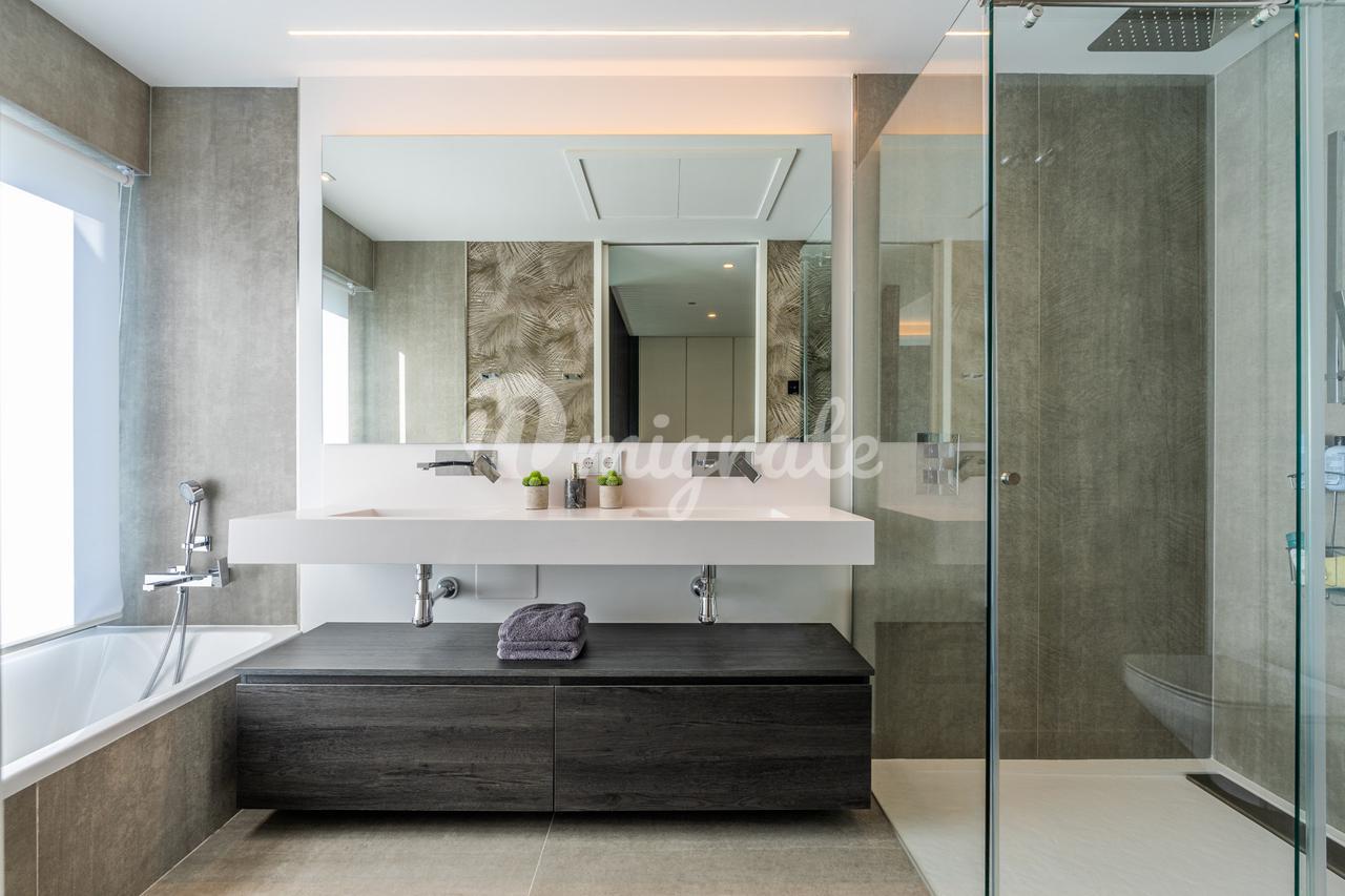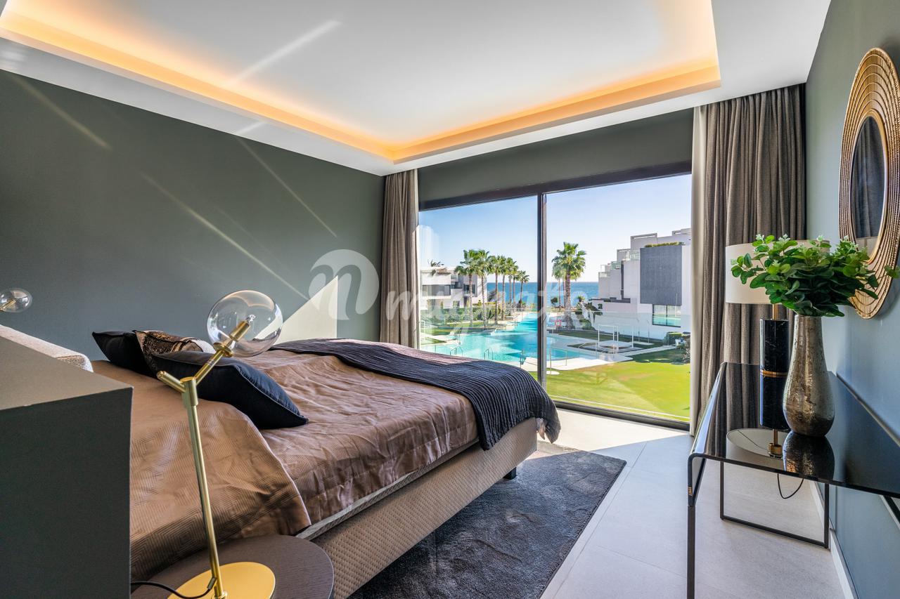 Он был спроектирован таким образом, чтобы максимально использовать естественное освещение, и имеет высокие потолки. Первый этаж включает в себя большое пространство, которое сочетает в себе гостиную, столовую и кухню с изысканным дизайном, большим центральным островом и первоклассной бытовой техникой, практичную спальню и полностью оборудованную ванную комнату. Гостиная выходит на прекрасную частично крытую веранду и частный сад с прекрасным видом на общественные сады, бассейн и море на заднем плане. Второй этаж состоит из двух спален с общей ванной комнатой и главной спальни с собственной ванной комнатой и прекрасной террасой с панорамным видом на Средиземное море и зоны общего пользования.