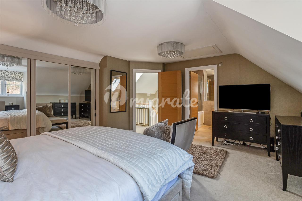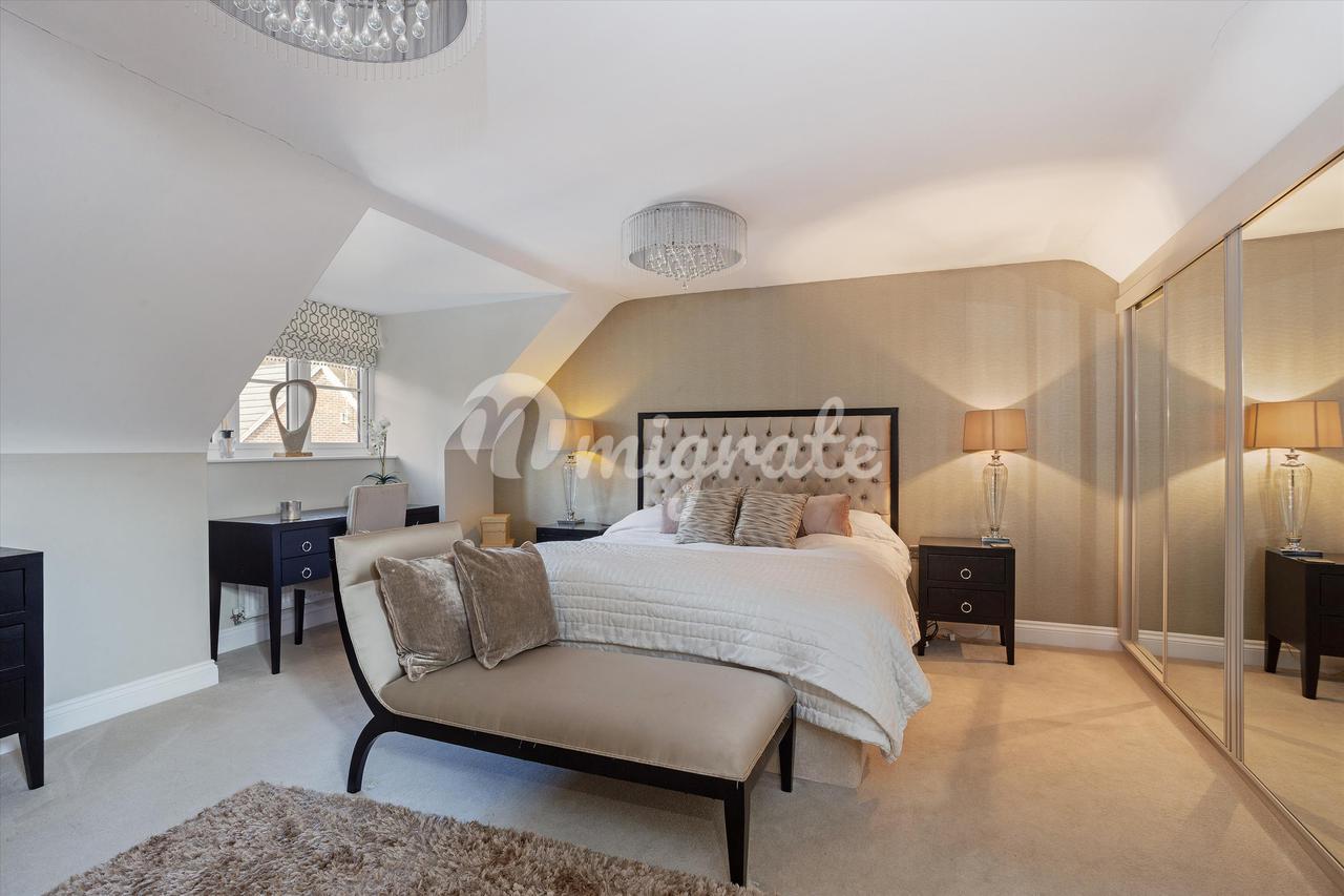 На втором этаже дома расположены три спальни с двуспальными кроватями, одна с собственной душевой комнатой и семейная ванная комната. Все спальни красиво оформлены и оснащены встроенными шкафами. Главная спальня занимает весь второй этаж, со стильной ванной комнатой и множеством встроенных шкафов. Из спальни также открывается вид на лес позади. Имеется люк на чердак с лестницей на чердак, ведущей к дополнительному хранилищу.