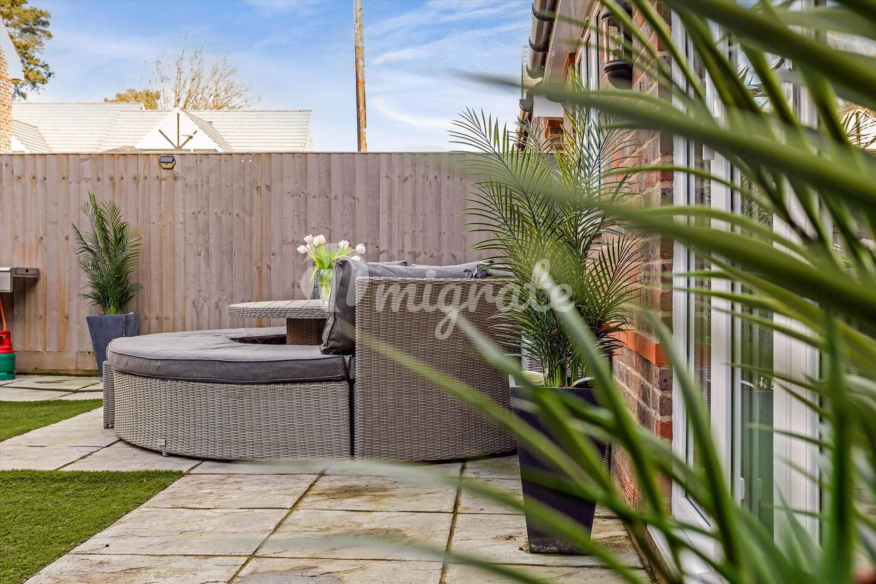 Сад предлагает фантастическое развлекательное пространство с большим патио для обедов и гидромассажной ванной, которая останется в собственности. Функциональный ровный сад, который идеально подходит для маленьких детей и прост в уходе благодаря удобному для домашних животных газону с астро-дерном, полностью защищенному ограждением. Есть также четыре внешние розетки питания. Доступ возможен с обеих сторон собственности, при этом один доступ имеет два навеса для дополнительного хранения.