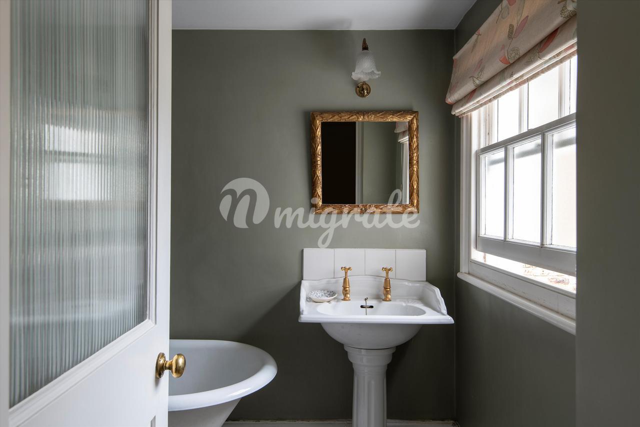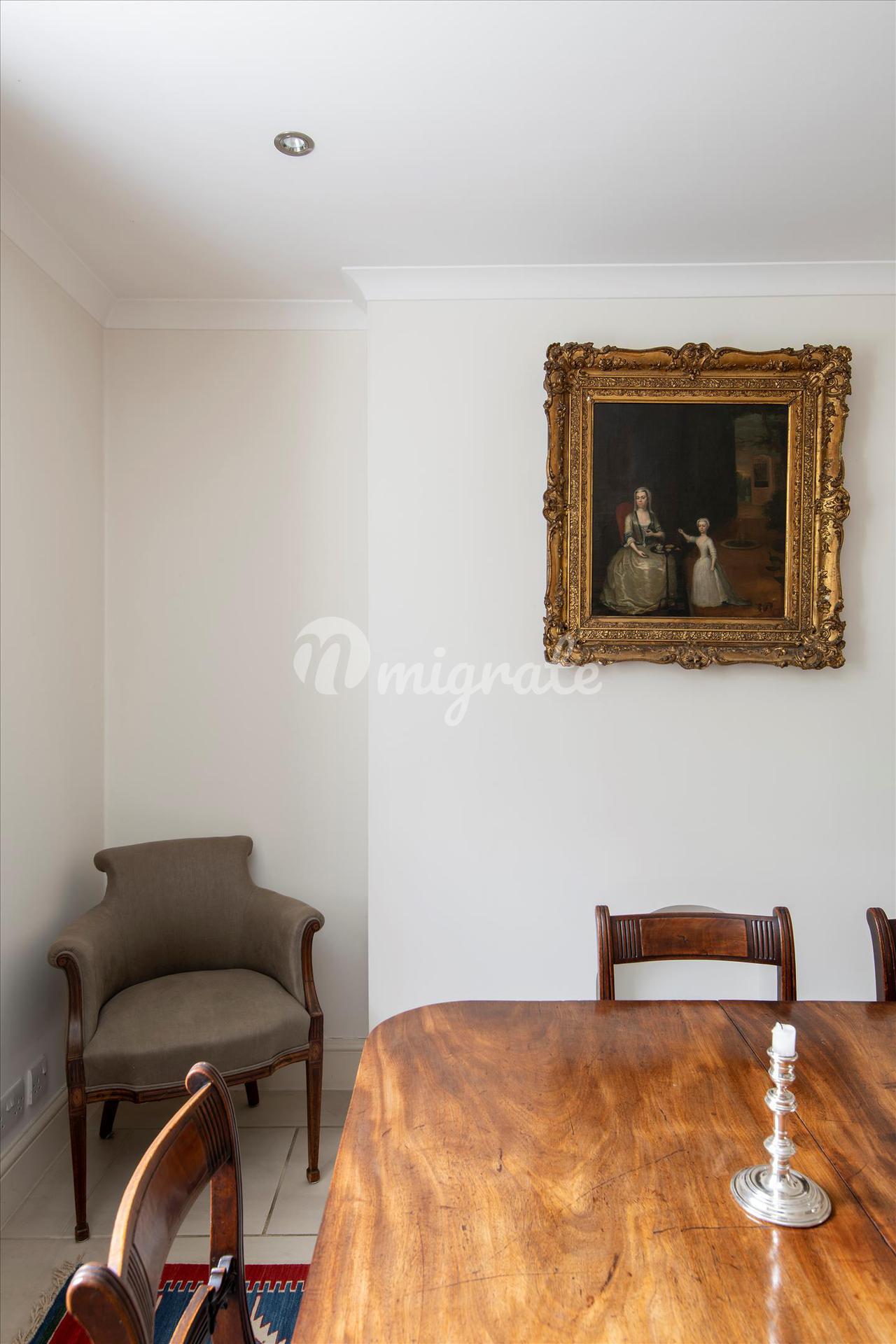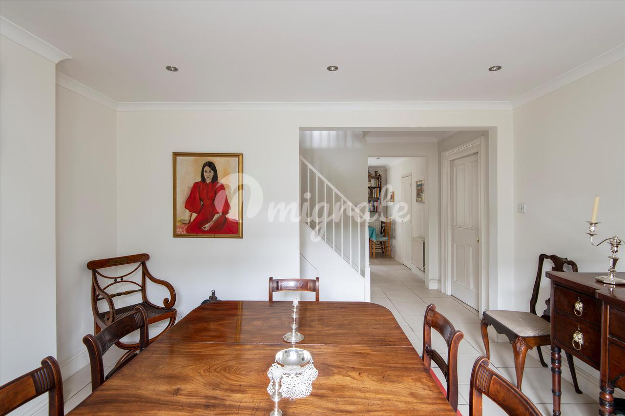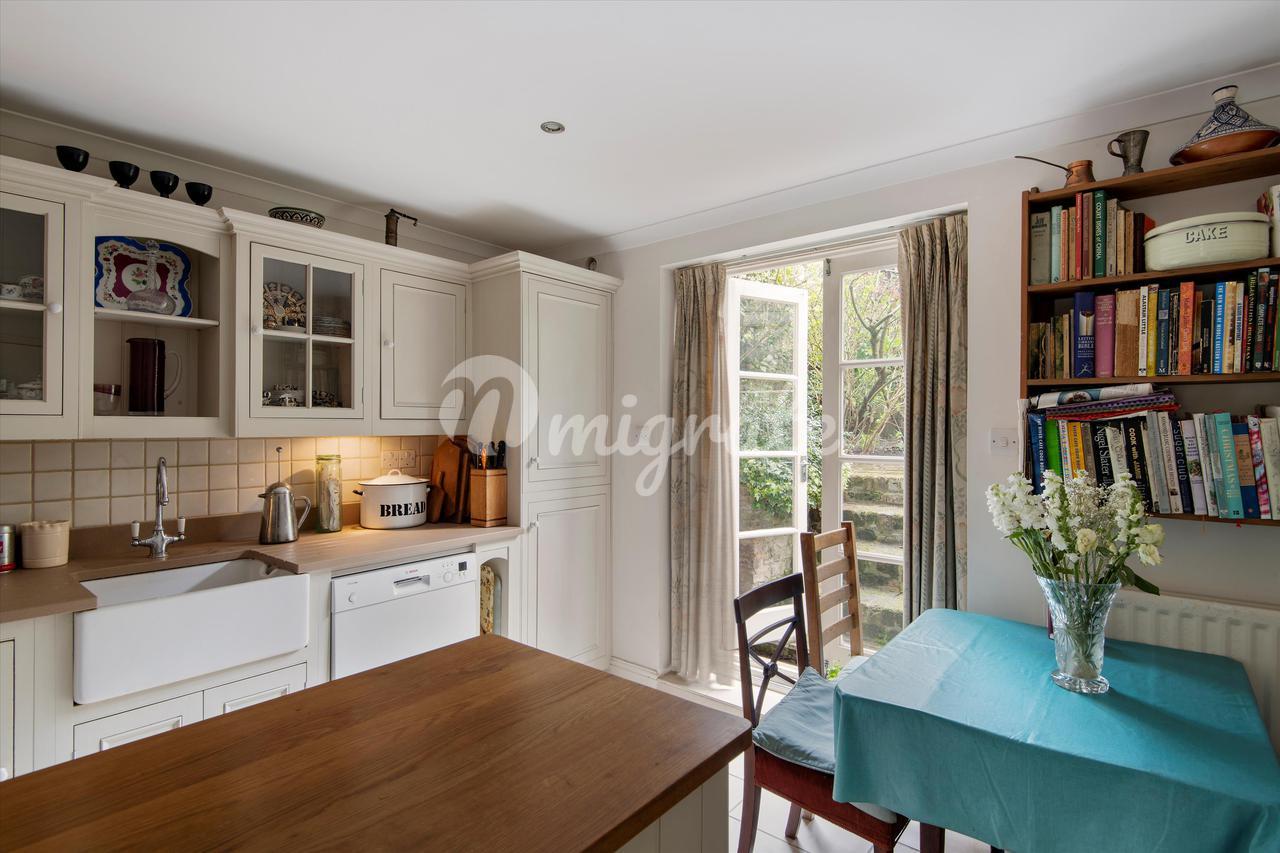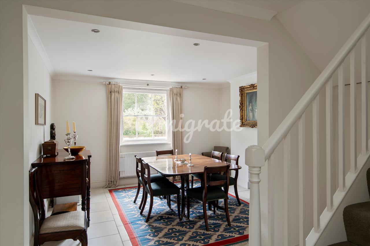 На цокольном этаже есть просторная столовая и очаровательная кухня с двойными дверями, выходящими в чудесный задний частный сад.