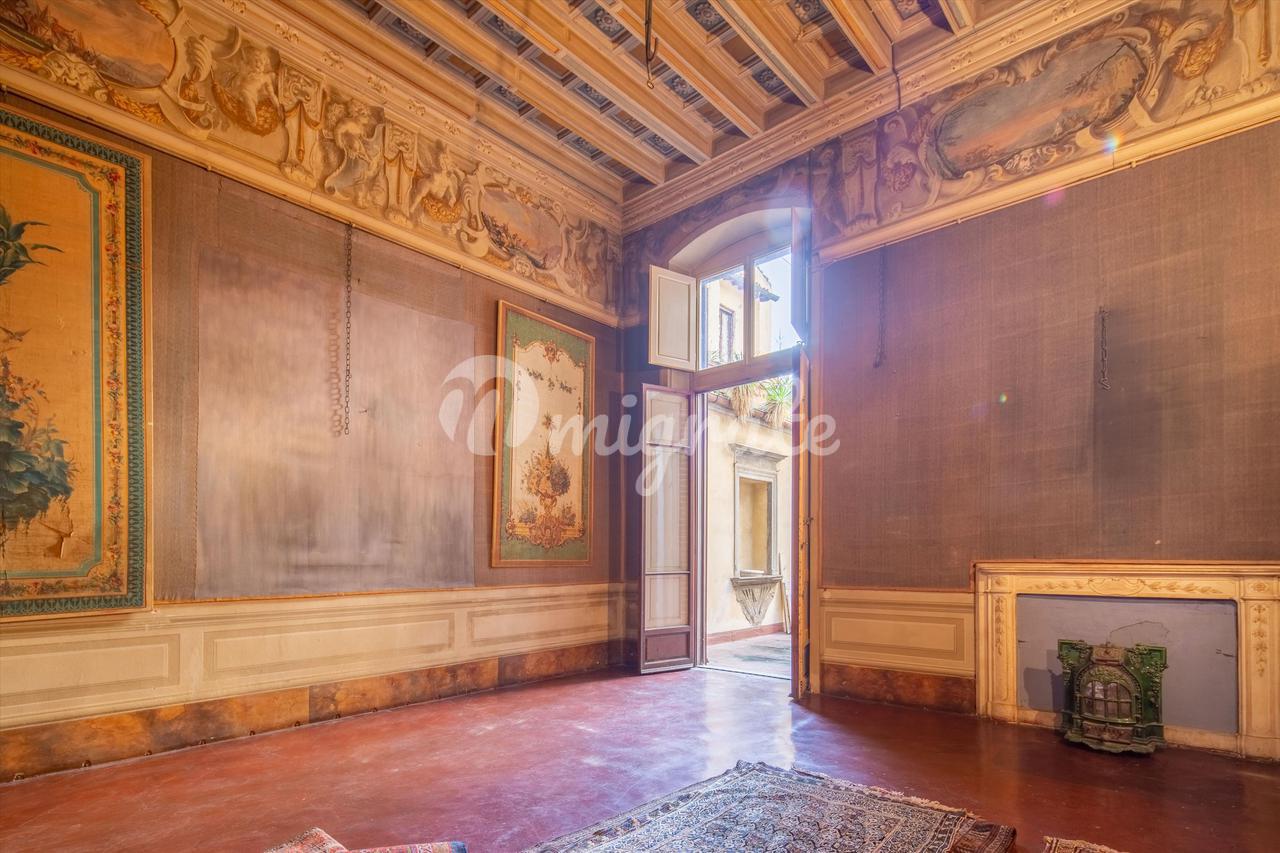 На пианино-нобиле элегантного палаццо, одного из самых широких во Флоренции, стоит эта квартира с уникальными фресками. В стоимость входит гараж на 4 машины. ок. 640 кв.м собственности, требующей ремонта, в квартире может быть от 2 до 3 спален с четырьмя впечатляющими гостиными с видом на Виа Маджио. Первоначально называлась «Главная улица» и была названа так, когда семья Медичи жила в Палаццо Питти в 16 веке, а важные флорентийские семьи построили свои Палацци вдоль самой широкой улицы города. Палаццо принадлежал семье Д'Эльчи, чей фамильный герб изображен на фасаде, и Перуцци Медичи. В квартиру ведет элегантная лестница. Передние гостиные украшены впечатляющими фресками и украшениями 18 века, есть несколько каминов и небольшая часовня, задние служебные помещения и потенциальные спальни, а также внутренняя закрытая терраса. На первом этаже находится большой гараж со сводчатым потолком, в который можно попасть как с улицы Виа Маджо, так и с площади Санто-Спирито.