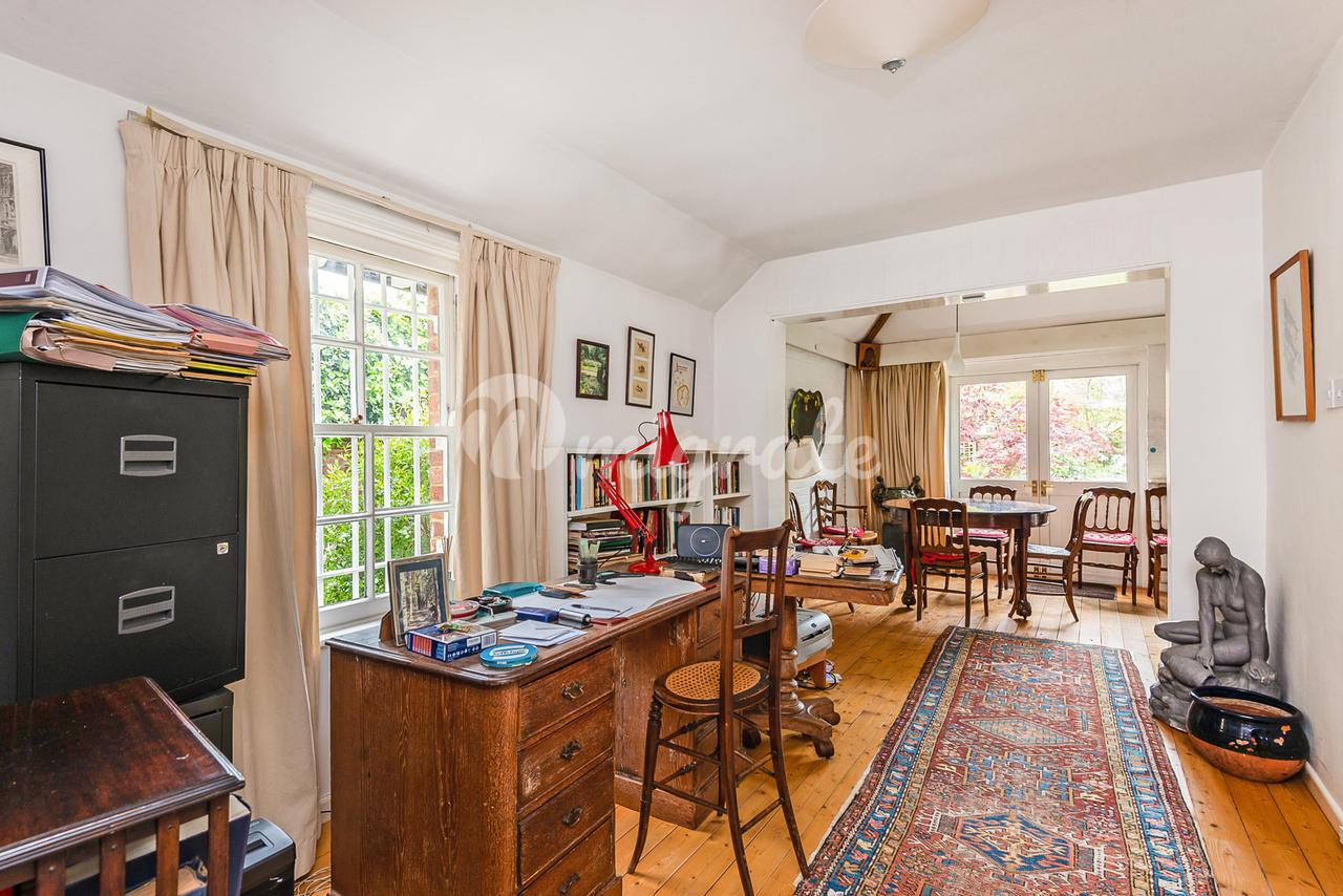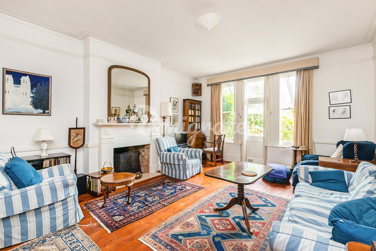 Входная дверь открывается в большой холл с двумя спальнями впереди, обе из которых имеют высокие потолки и отличное естественное освещение. В вестибюле есть встроенные шкафы и потайная дверь в большой подвал, обеспечивающий полезное хранение. Наиболее привлекательна гостиная с открытым камином, деревянными полами и французской дверью на восхитительную веранду, выходящую в сад. Кухня / комната для завтрака занимает середину квартиры со встроенными единицами и кремовым электрическим Aga с подсобным помещением с одной стороны. Столовая и общая комната находятся в задней части первого этажа и имеют французские двери в сад. Есть душевая и отдельный санузел. Есть возможность, возможно, перестроить заднюю часть квартиры, чтобы переместить кухню в заднюю часть и, возможно, выйти за пределы гостиной, в зависимости от планирования. Восхитительный сад, выходящий на запад, был тщательно спланирован предыдущими владельцами. С одной стороны есть вымощенная кирпичом терраса с привлекательной обеденной зоной и декоративный пруд. Газон окружен очень богатыми цветочными и кустарниковыми бордюрами с серебристыми березами и гингко. К одной стене примыкают фруктовые деревья и плетистые розы, а к заднему фасаду - глицинии. С одной стороны есть теплица, а спереди — мощеная площадка для хранения велосипедов и мусорного ведра с надежной дверью. Перед входом есть парковка на одну машину.