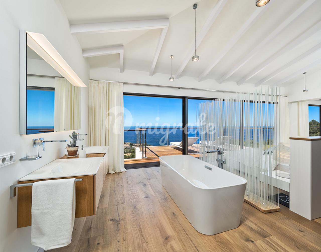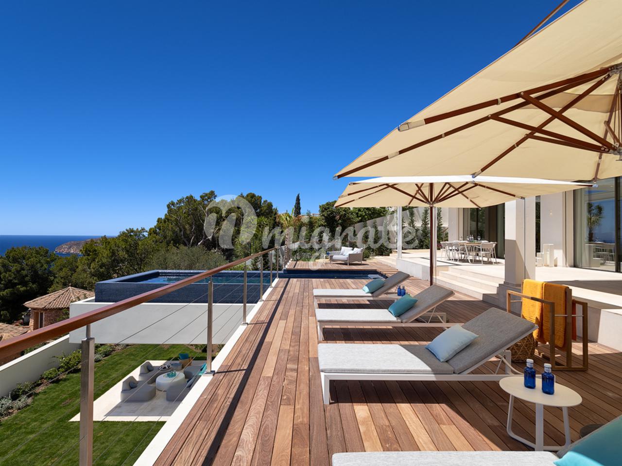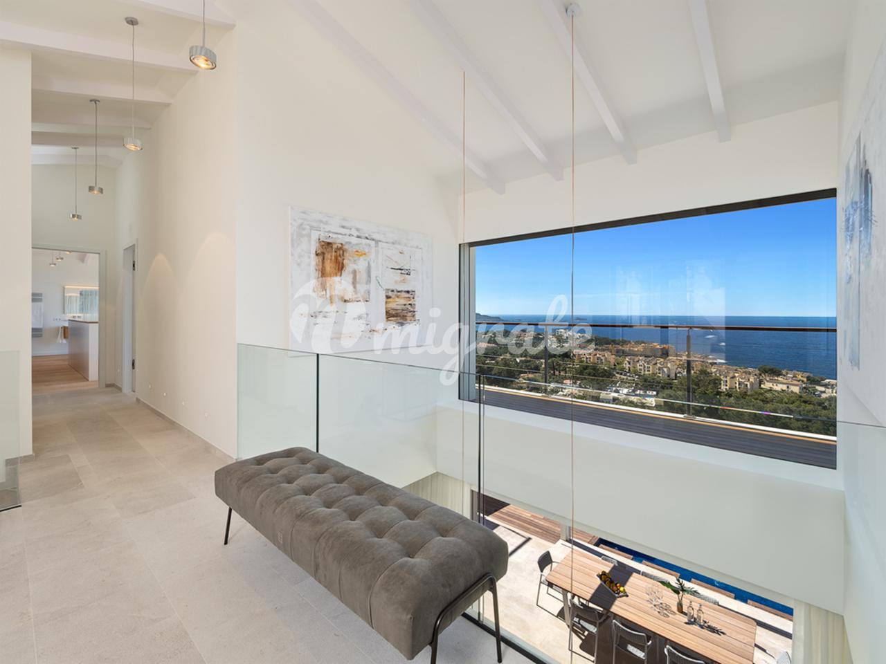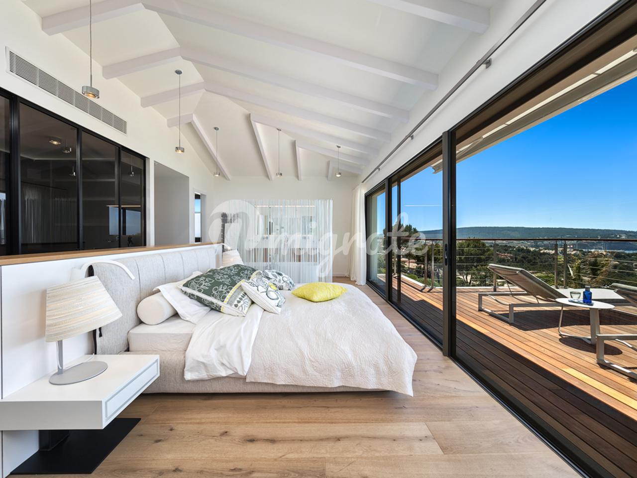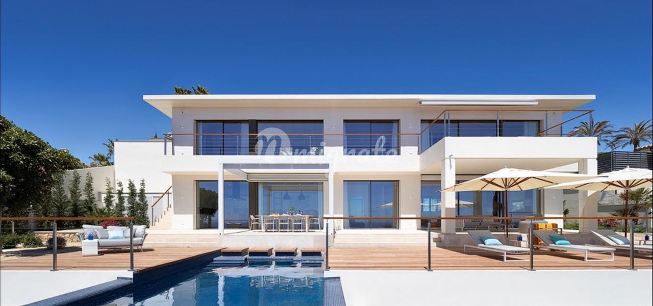 Новая современная вилла с захватывающими видами на море расположена на популярном курорте Санта-Понса на юго-западном побережье Майорки, в 6 км от Магалуфа.