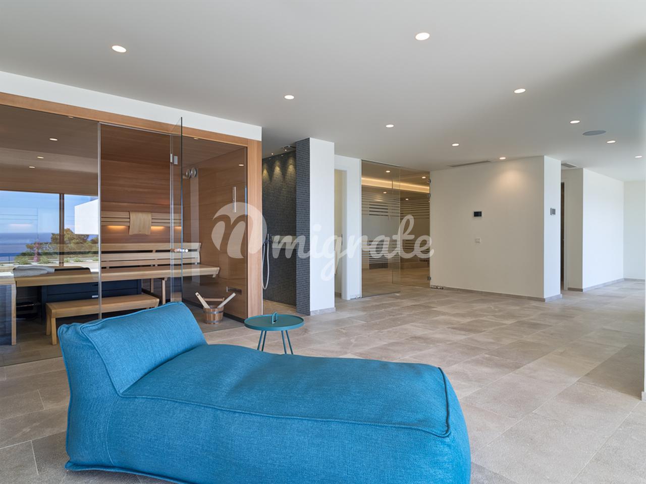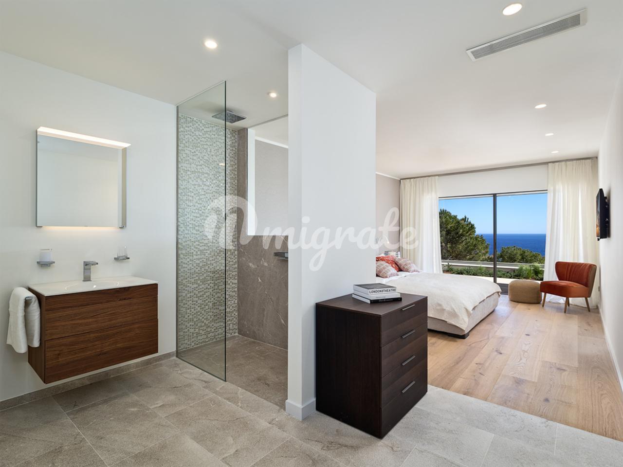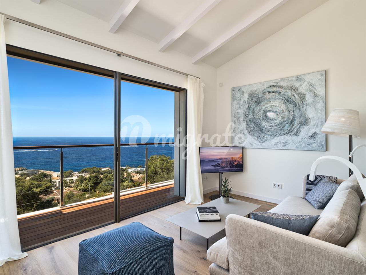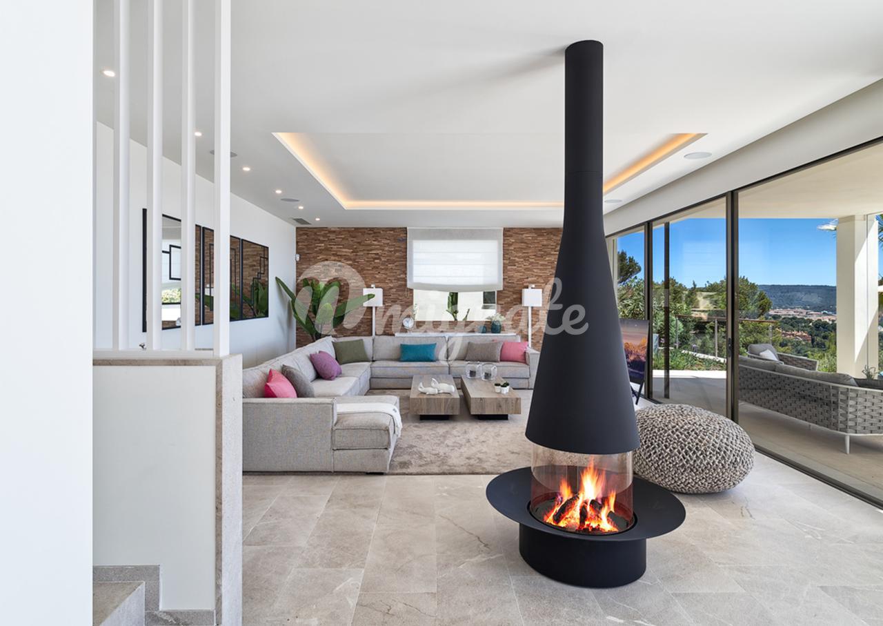 Новая современная вилла с захватывающими видами на море расположена на популярном курорте Санта-Понса на юго-западном побережье Майорки, в 6 км от Магалуфа.