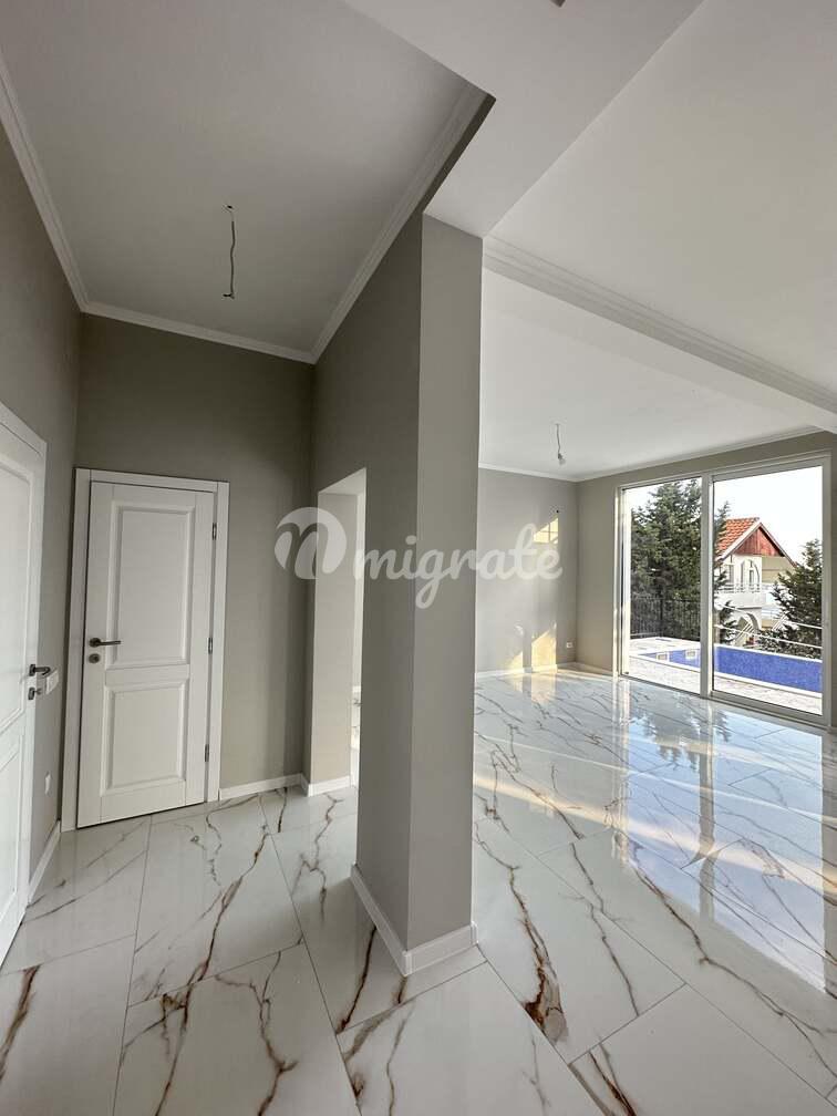 На продажу предлагается абсолютнго новый дом в Зелёном Поясе города Шушань с разрешением на строительство и бассейном. Дом расположен в окружении леса, чистота воздуха и приватность обеспечена. Площадь дома составляет 190 м2, а сам дом имеет следующую планировку: На первом этаже располагается прихожая, просторная гостиная с кухней, ванная комната, гардеробная, выход на террасу ведущую к бассейну и лестница ведущая на второй этаж. На втором этаже располагаются три спальные комнаты с террасами, ванная комната и кладовка. На территории дома имеется парковка на два или три автомобиля, бассейн и свободная зона, которую можно присбособить под BBQ зону, летнюю кухню или все что захочется будущим владельцам. В доме установлены панорамные, раздвижные окна. На полах с подогревом будет керамогранит высочайшего качества, а также будет установлена качественная сан.техника фирмы BOSCH по окончанию работ, которое планируются на Апрель 2023.