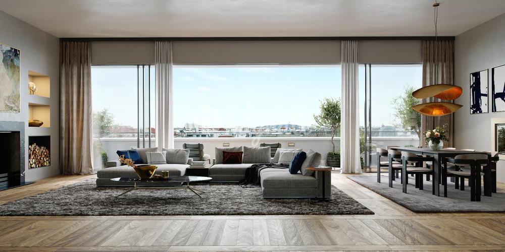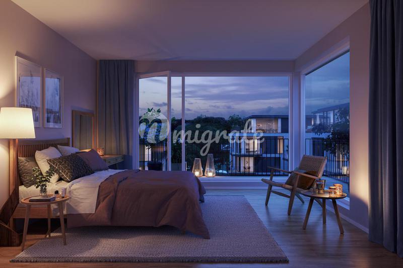 На продажу выставлены 184 квартиры с 1-3 спальнями площадью 60-136 кв.м, расположенные в южной 22-этажной башне. Все квартиры будут иметь лоджии и панорамные окна, а пентхаус – большую террасу с собственным бассейном.
