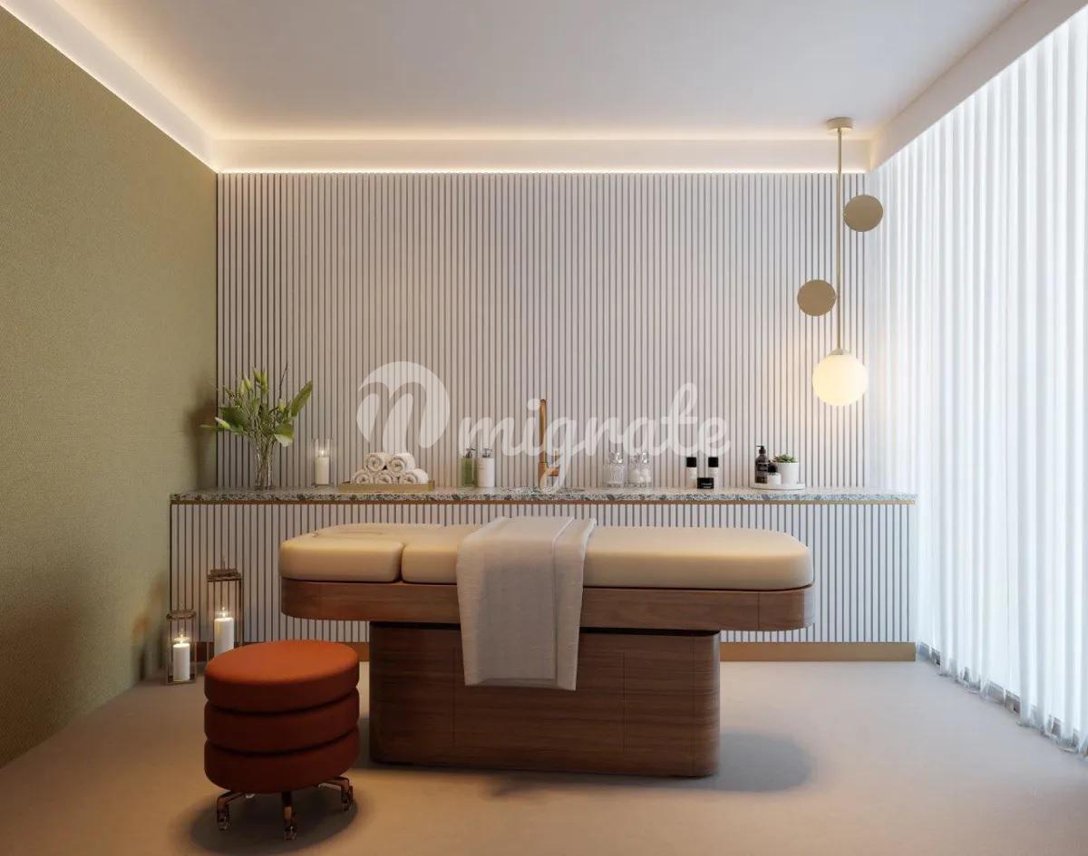 Жителям комплекса предоставляется доступ ко множеству удобств на его территории: ландшафтная терраса с панорамными видами на 7-м этаже, студия йоги, кинозал, симулятор гольфа, лаундж для резидентов и фитнес-зал. Рядом расположен ресторан с изысканной кухней, а на первом этаже комплекса представлены магазины выдающихся брендов. Здание выполнено в соответствии с высочайшими стандартами качества и работает исключительно на электричестве, что снижает его выбросы углерода на 30% по сравнению со зданиями, работающими на топливе.