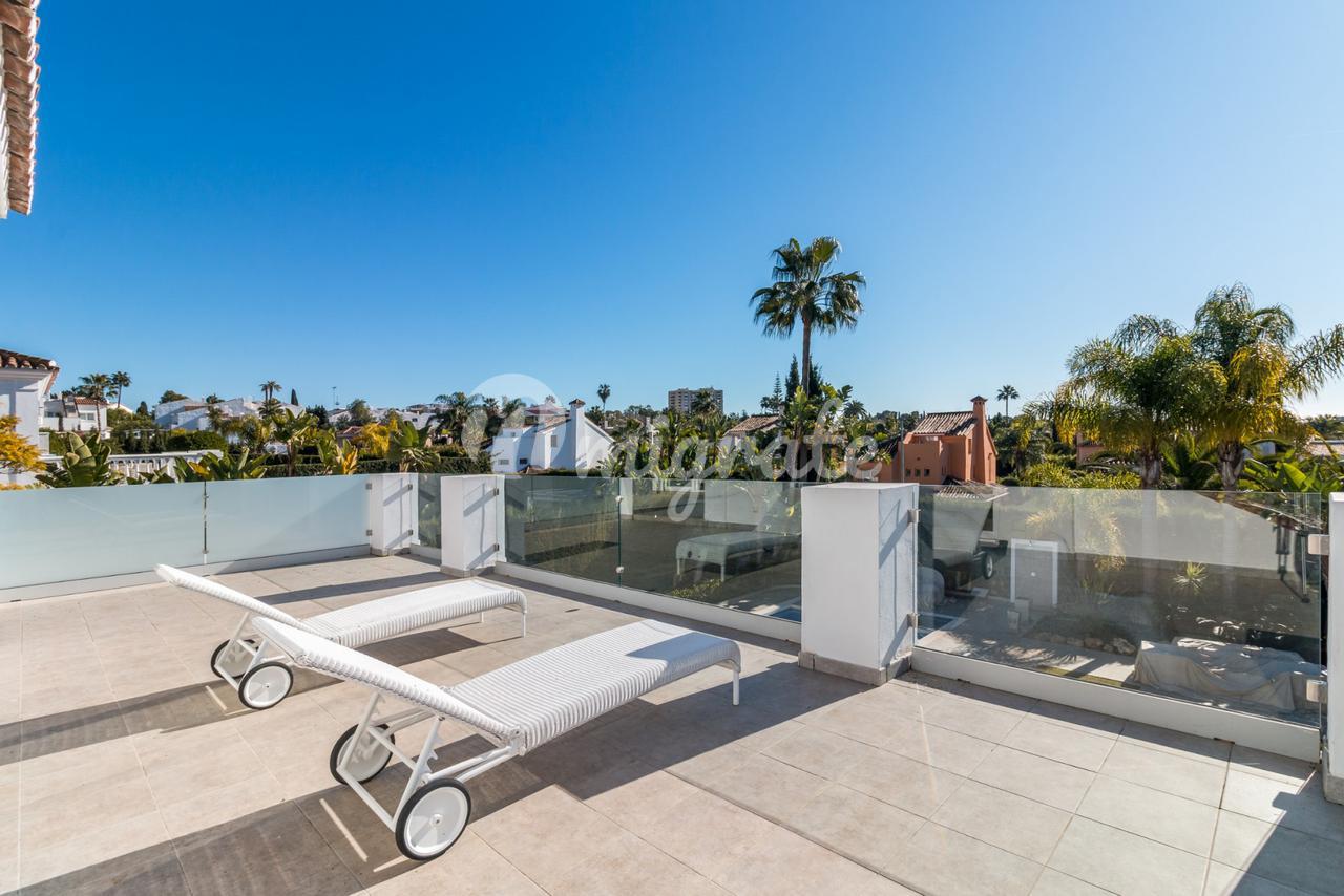 Эта отремонтированная вилла с юго-восточной ориентацией, состоящая из двух этажей и цокольного этажа, расположена в одном из хорошо зарекомендовавших себя жилых районов Алохи, примерно в 500 м от ближайшего коммерческого района с его банком, магазинами, ресторанами и барами и примерно в 3 км от пляжа.