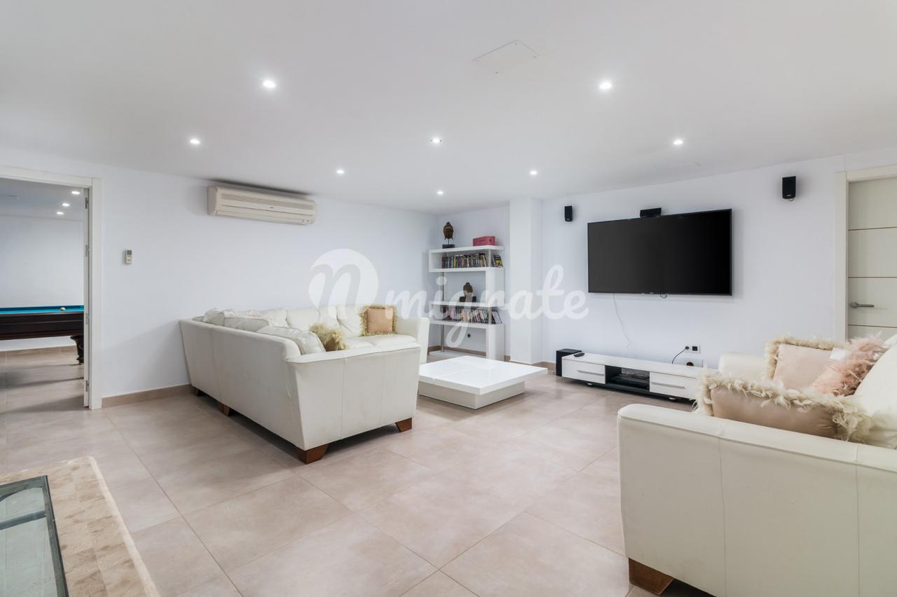 На цокольном этаже просторная развлекательная зона с бильярдным столом и ТВ-залом, тренажерный зал. Здесь также прачечная и гараж.